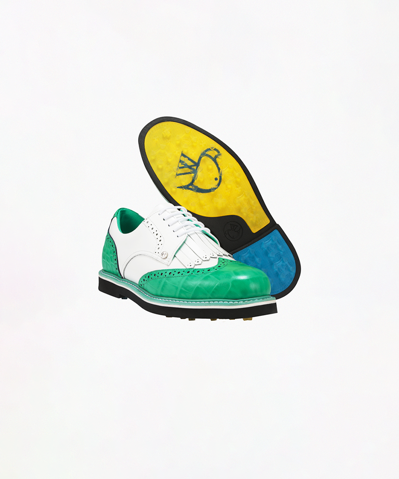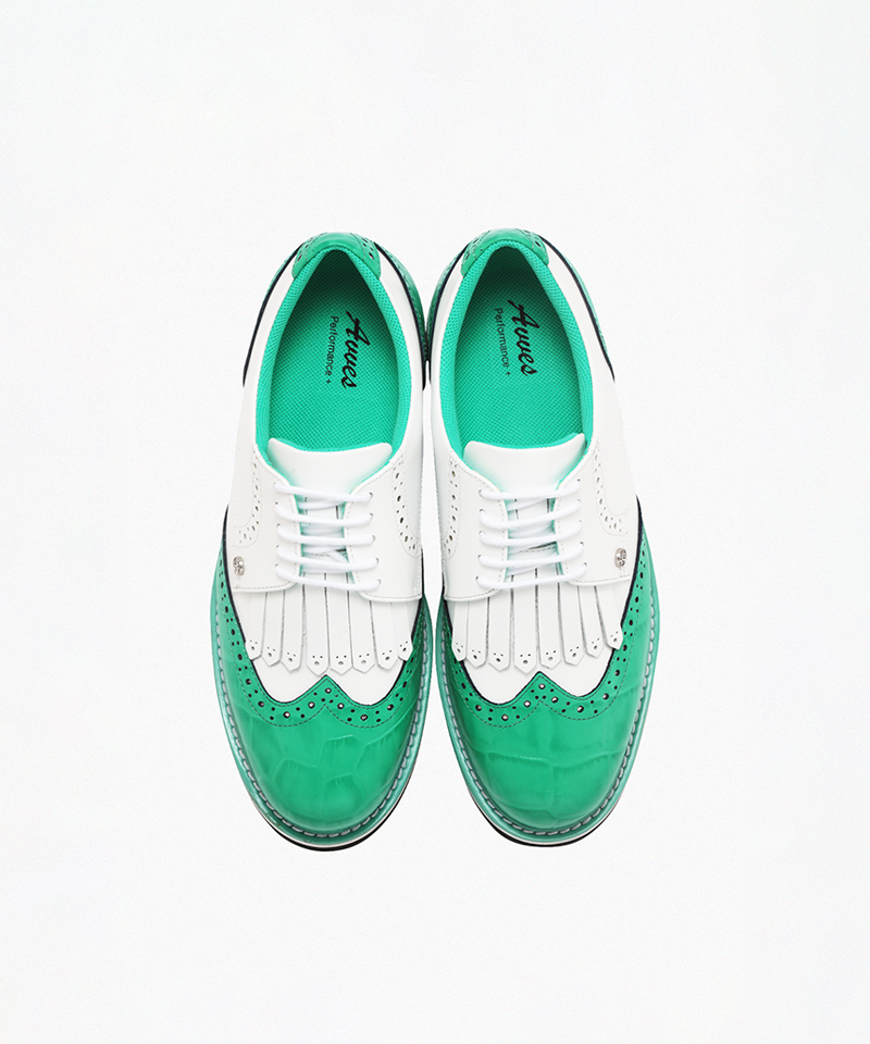 The Paradise Series by AVVES is a premium golf shoe line produced in small quantities, utilizing limited materials and additional craftsmanship to enhance quality. Designed ergonomically in collaboration with a traditional British shoemaker, these classic golf shoes are exquisitely crafted from natural calfskin leather, offering water resistance and a sophisticated finish. The croc-pattern detail, inspired by the vibrant colors of tropical birds, adds a luxurious touch to the design. The uniquely developed outsole ensures excellent grip and swing stability, while the layered insole system delivers long-lasting comfort and support. Experience the perfect harmony of style, function, and craftsmanship with AVVES.