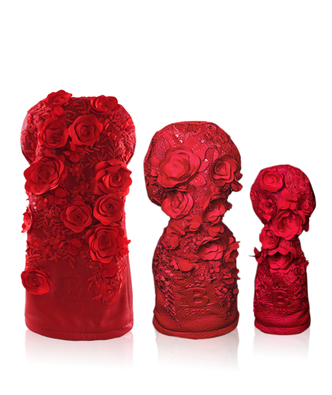 [Limited Edition] Baron Golf Flower Driver, Wood, Utility Cover made by Finest Calf Leather [Hand-made] - Red