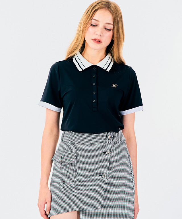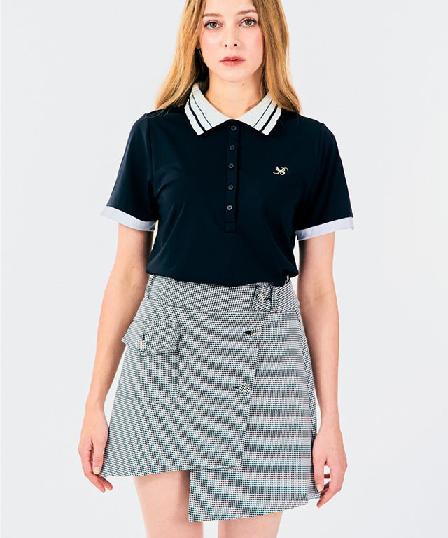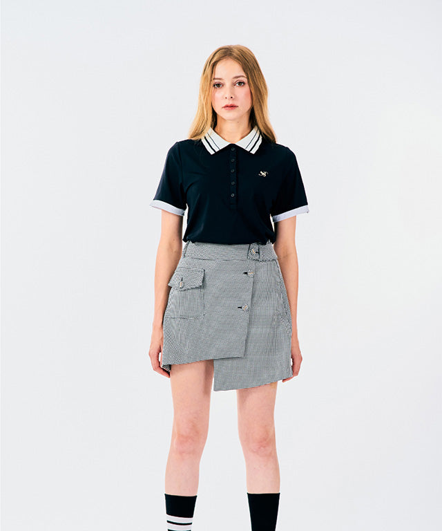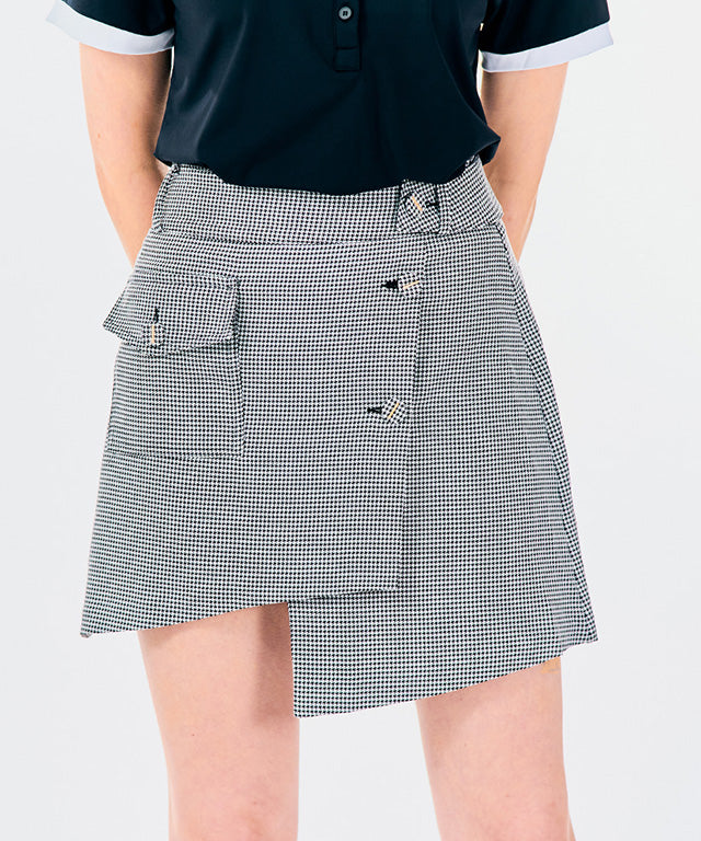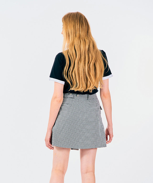 BENECIA 12 Button Unbalance Check Skirt - Black