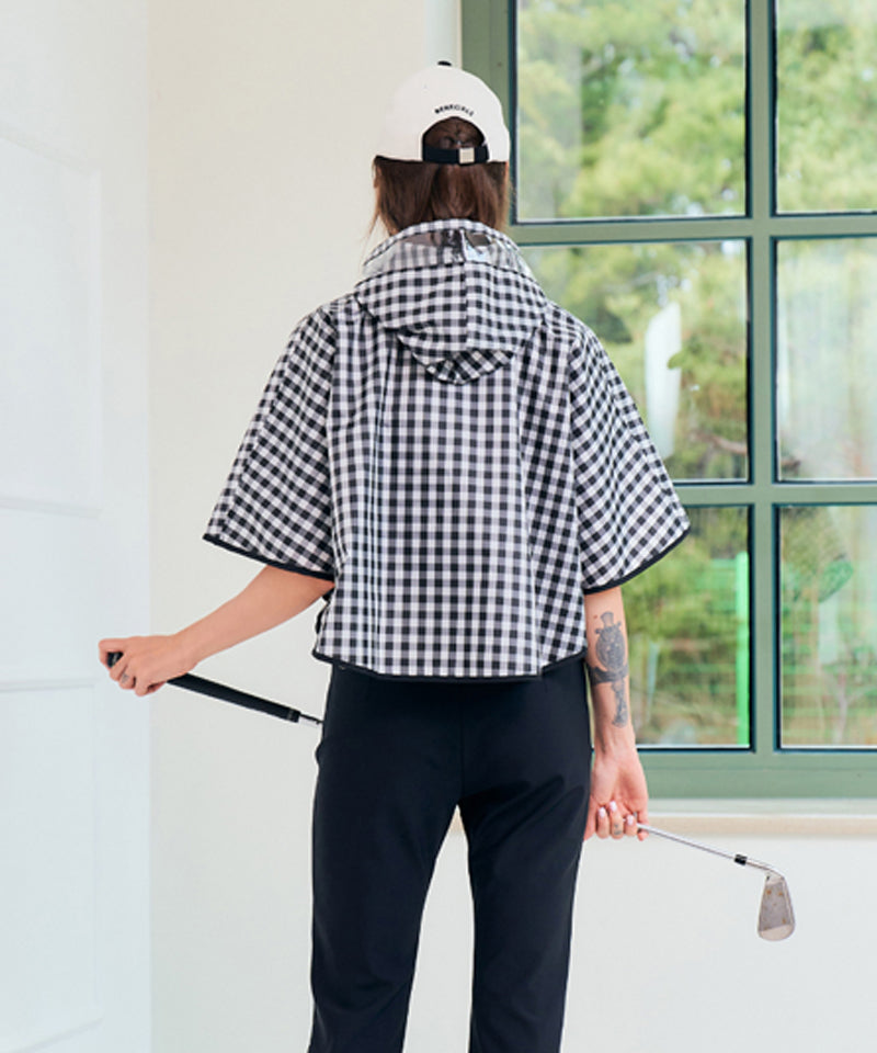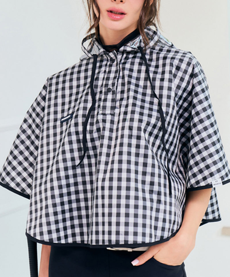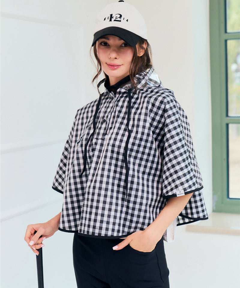 Stay dry in style with the BENECIA 12 Check Raincoat Cloak in Black. This stylish cloak will keep you protected from the rain while adding a touch of elegance to your outfit. Don't let the weather dampen your style - stay chic and dry with BENECIA.