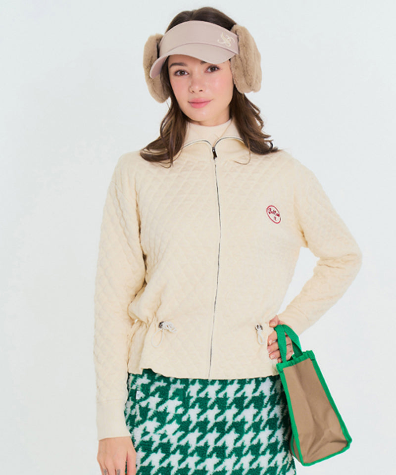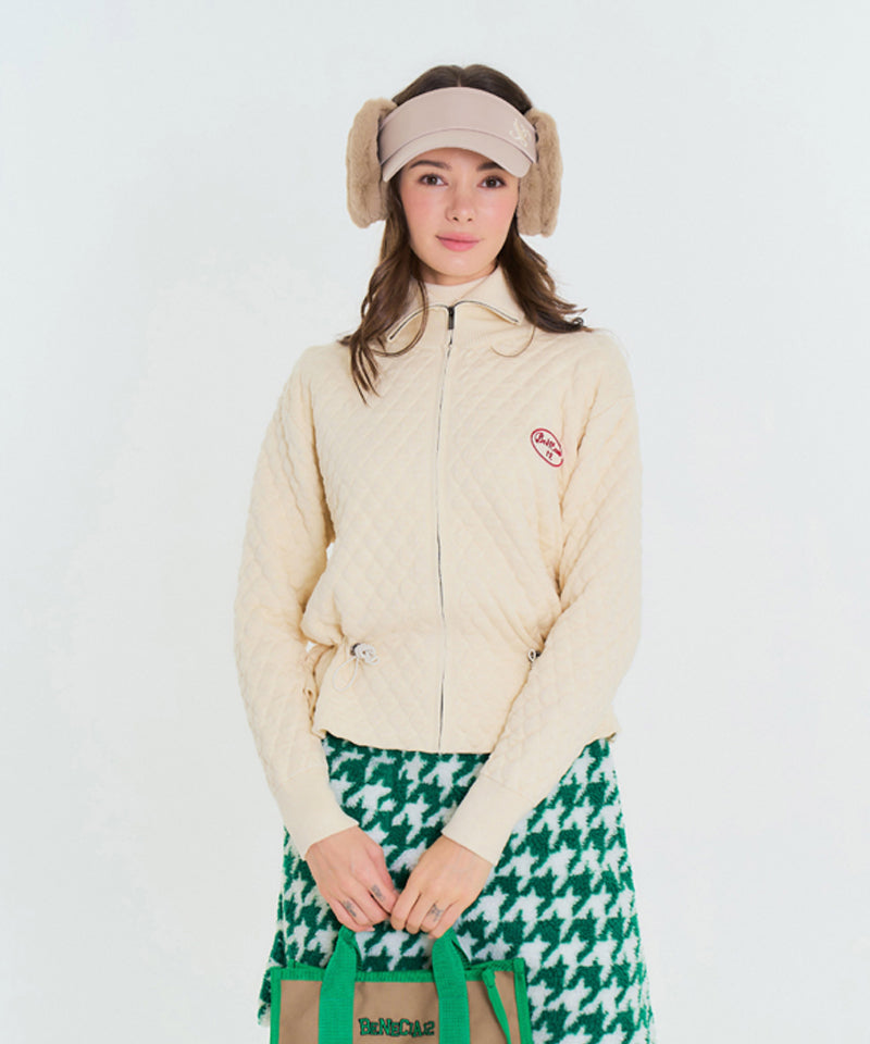 BENECIA 12 Diamond Embossed Knit Zip-Up - Ivory
