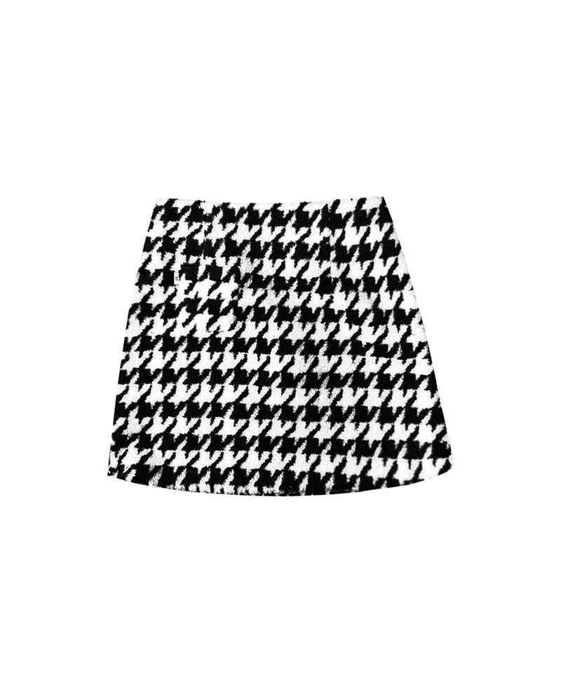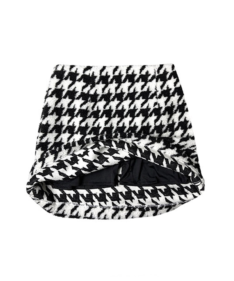 BENECIA 12 Fleece Houndstooth Skirt - Black
