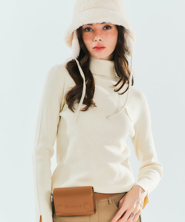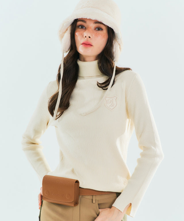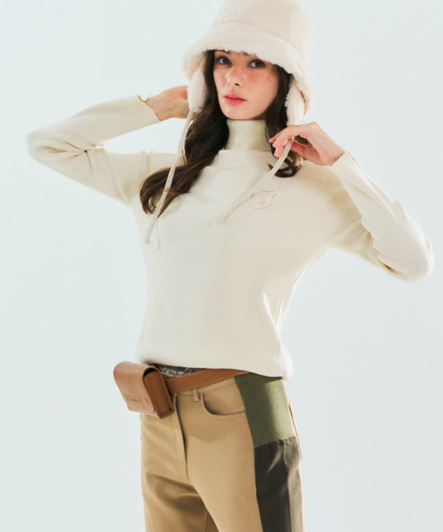 BENECIA 12 Ribbed turtleneck Top- Ivory