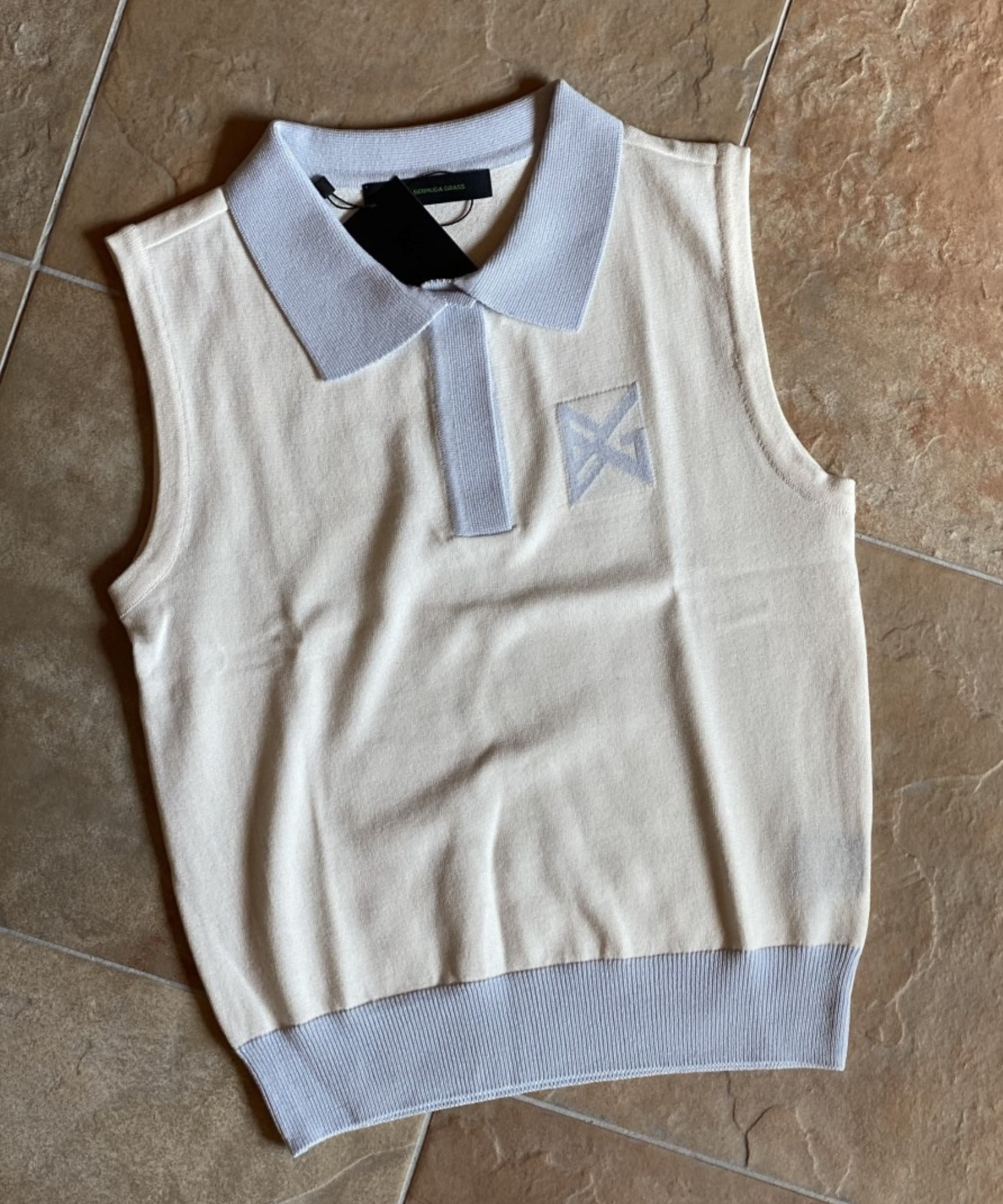 BERMUDA GRASS Color Block Knit Vest White