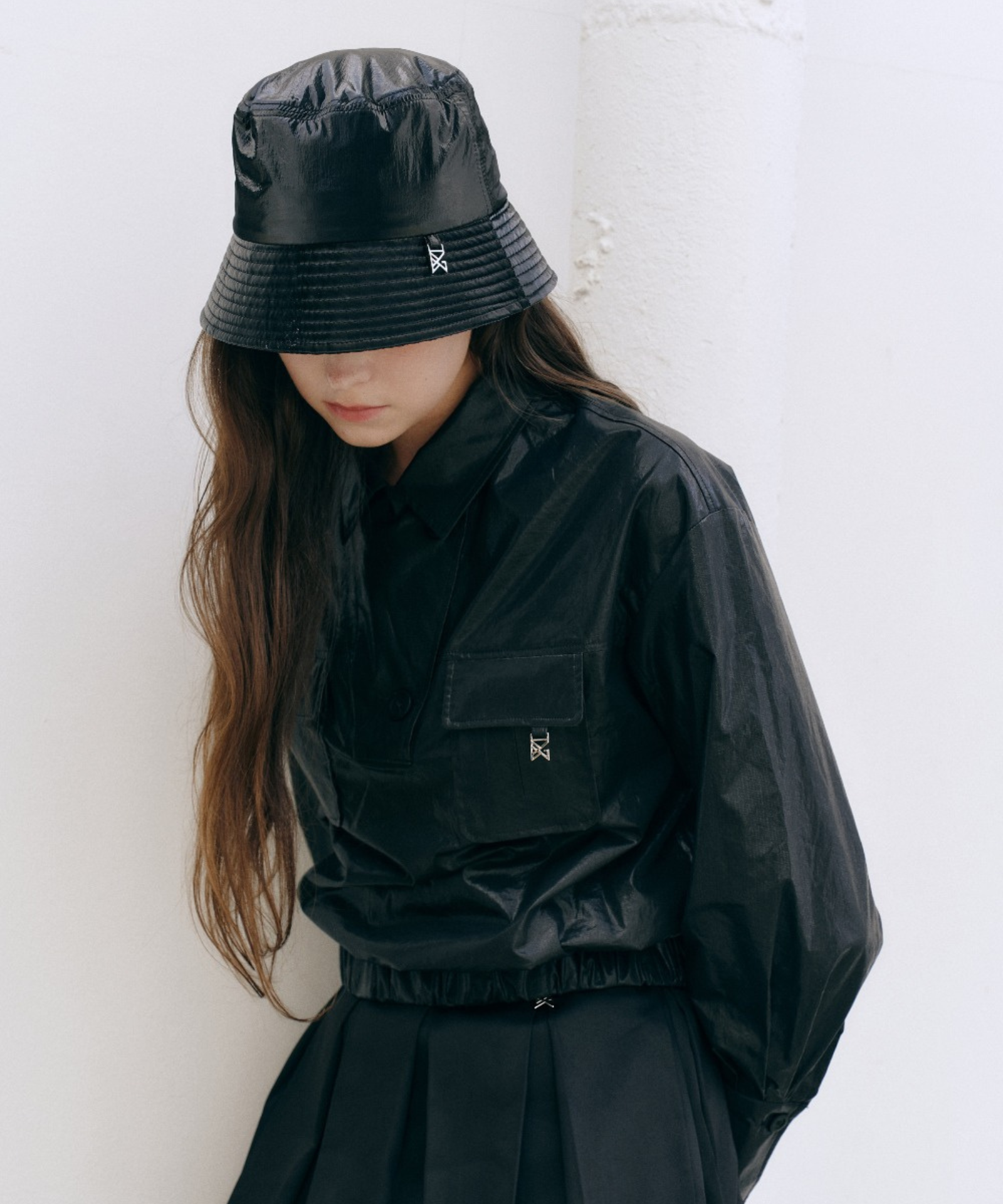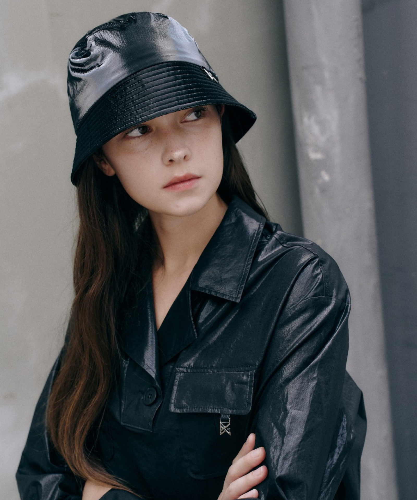 Crafted with a lustrous finish and refined metal branding, this bucket hat seamlessly merges style with practicality. Its thoughtfully angled brim provides superior sun protection while flattering facial contours. The glossy exterior repels water, wind, and environmental debris with ease, while an airy mesh interior maintains comfort throughout wear. An understated yet distinctive accessory for the discerning individual.