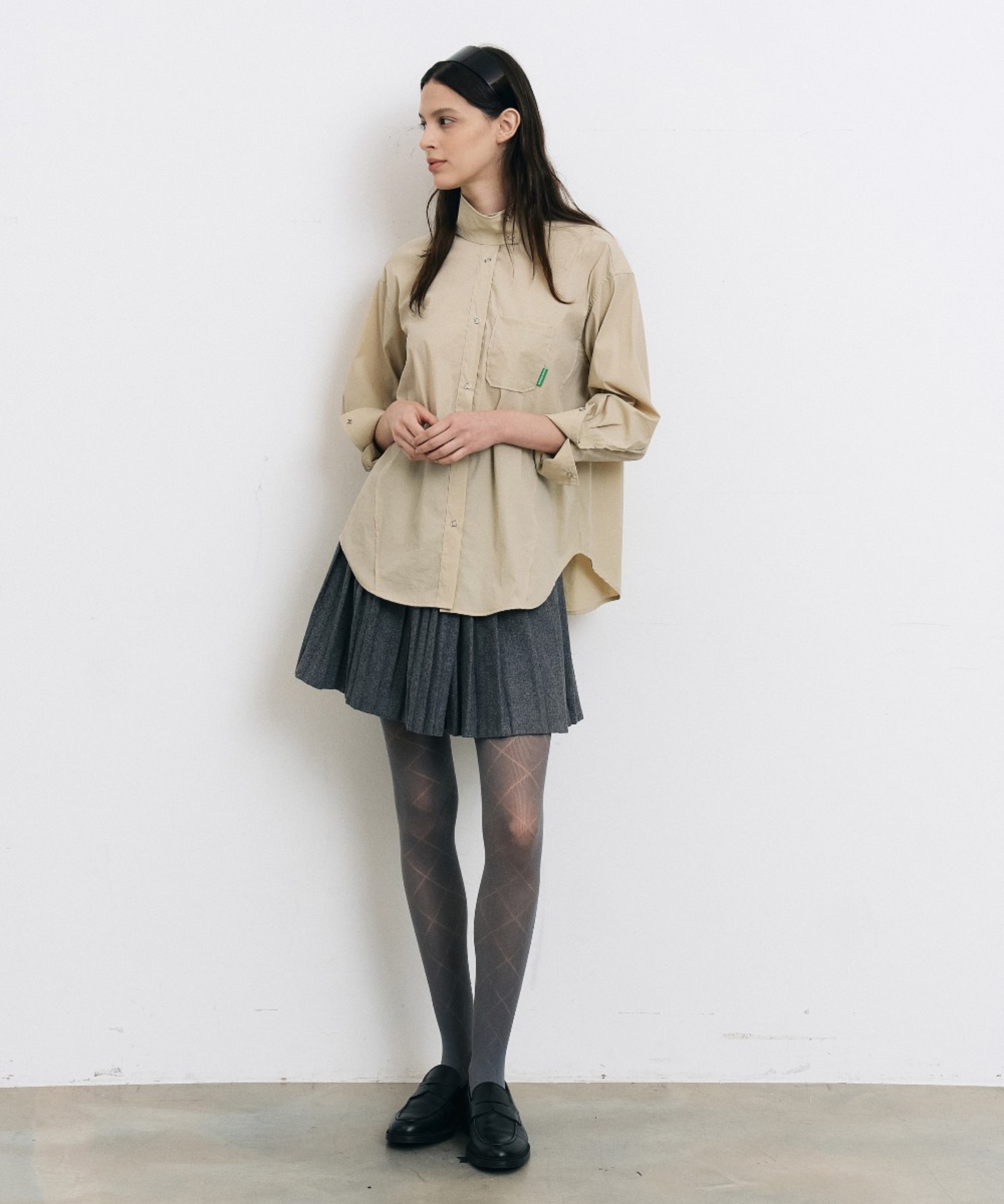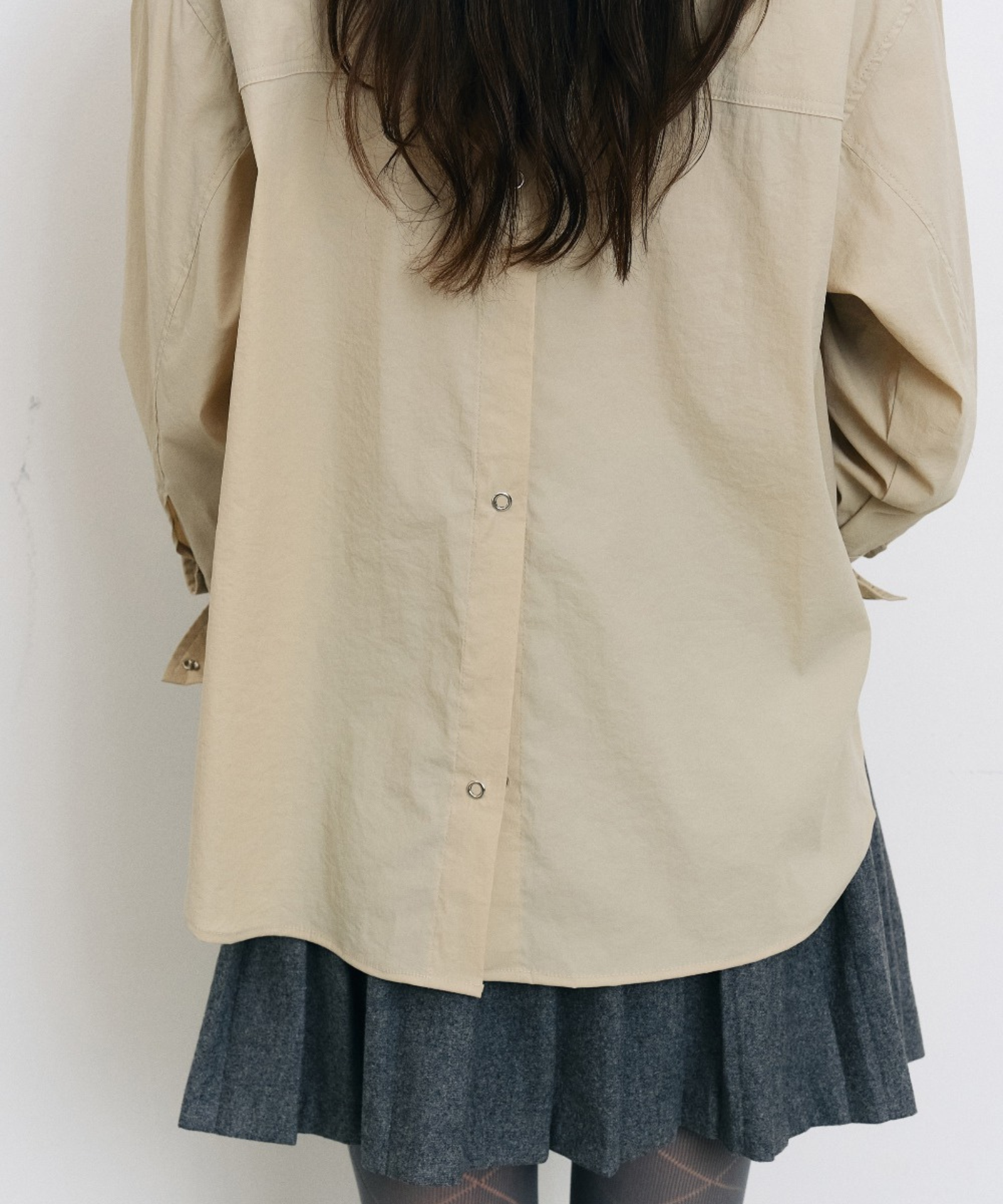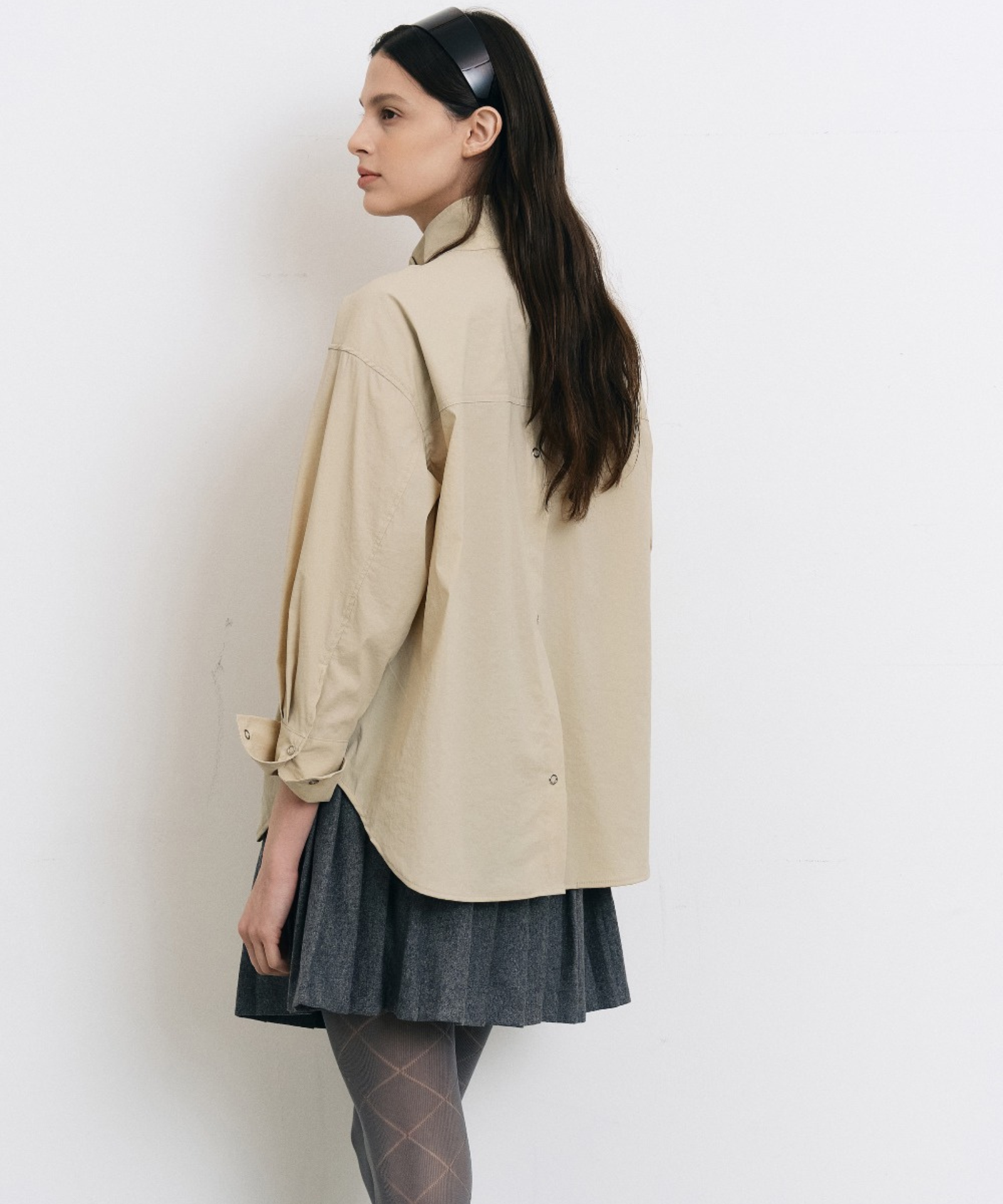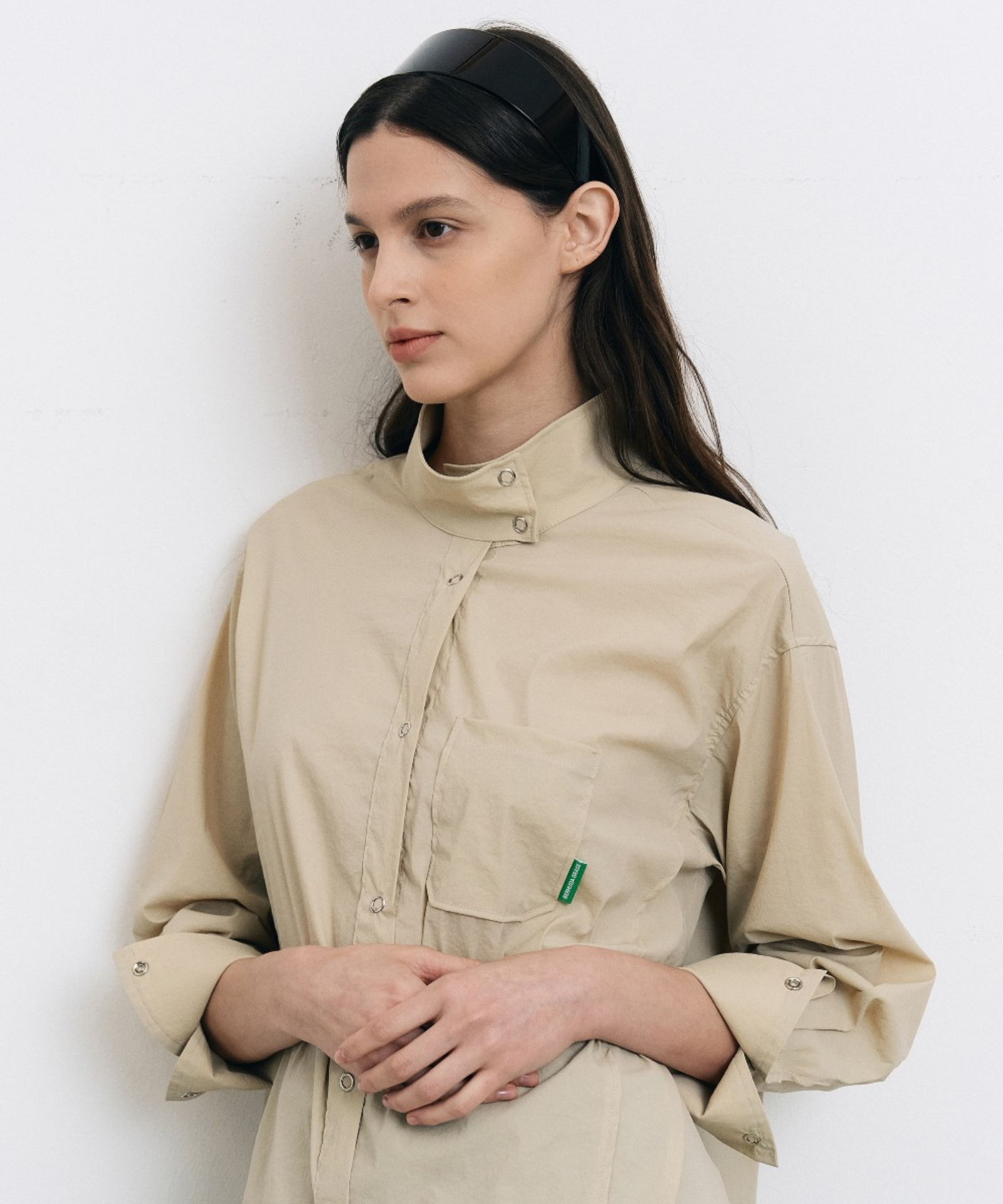 BERMUDA GRASS High-Neck Back-Slit Windbreaker Shirt Beige