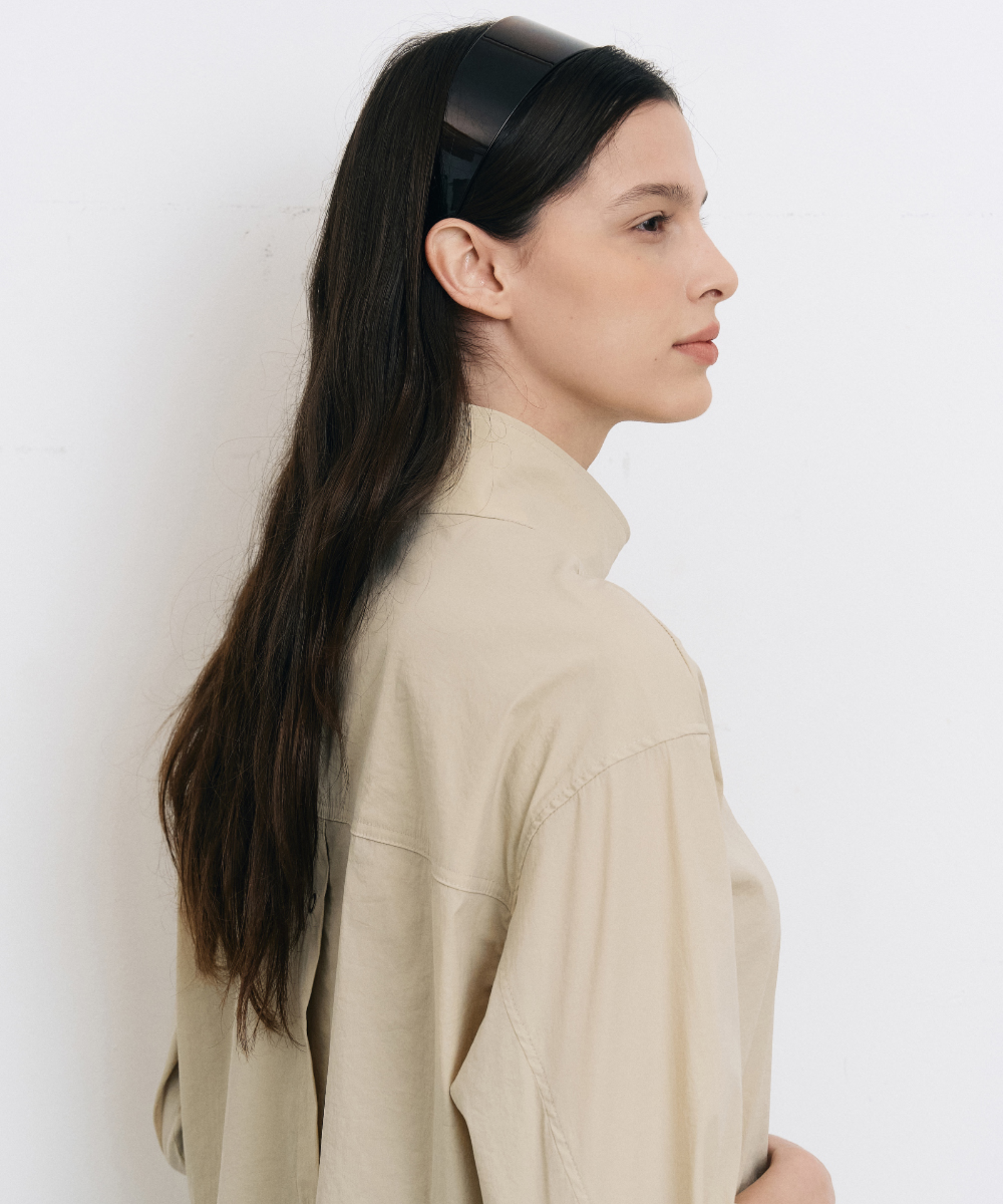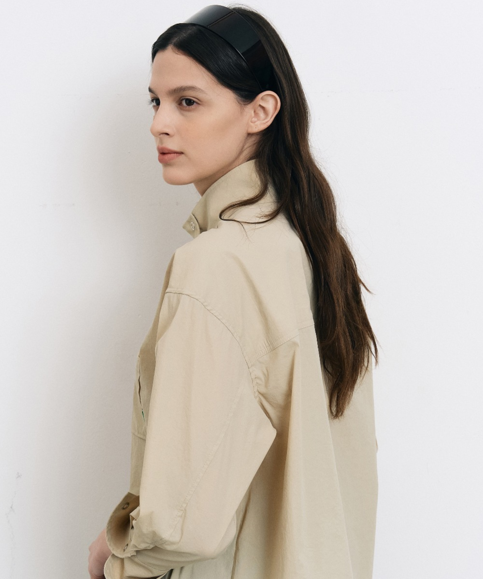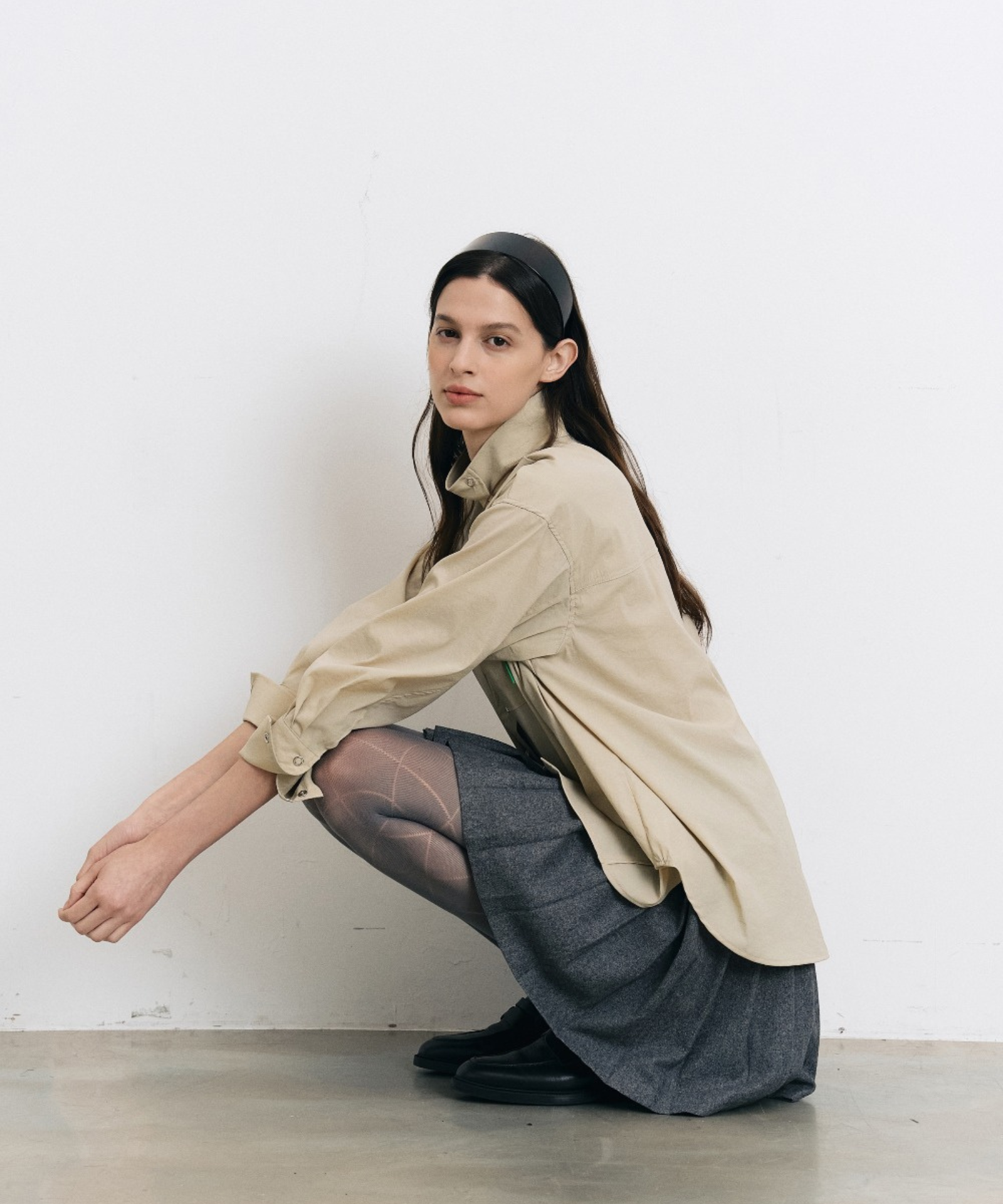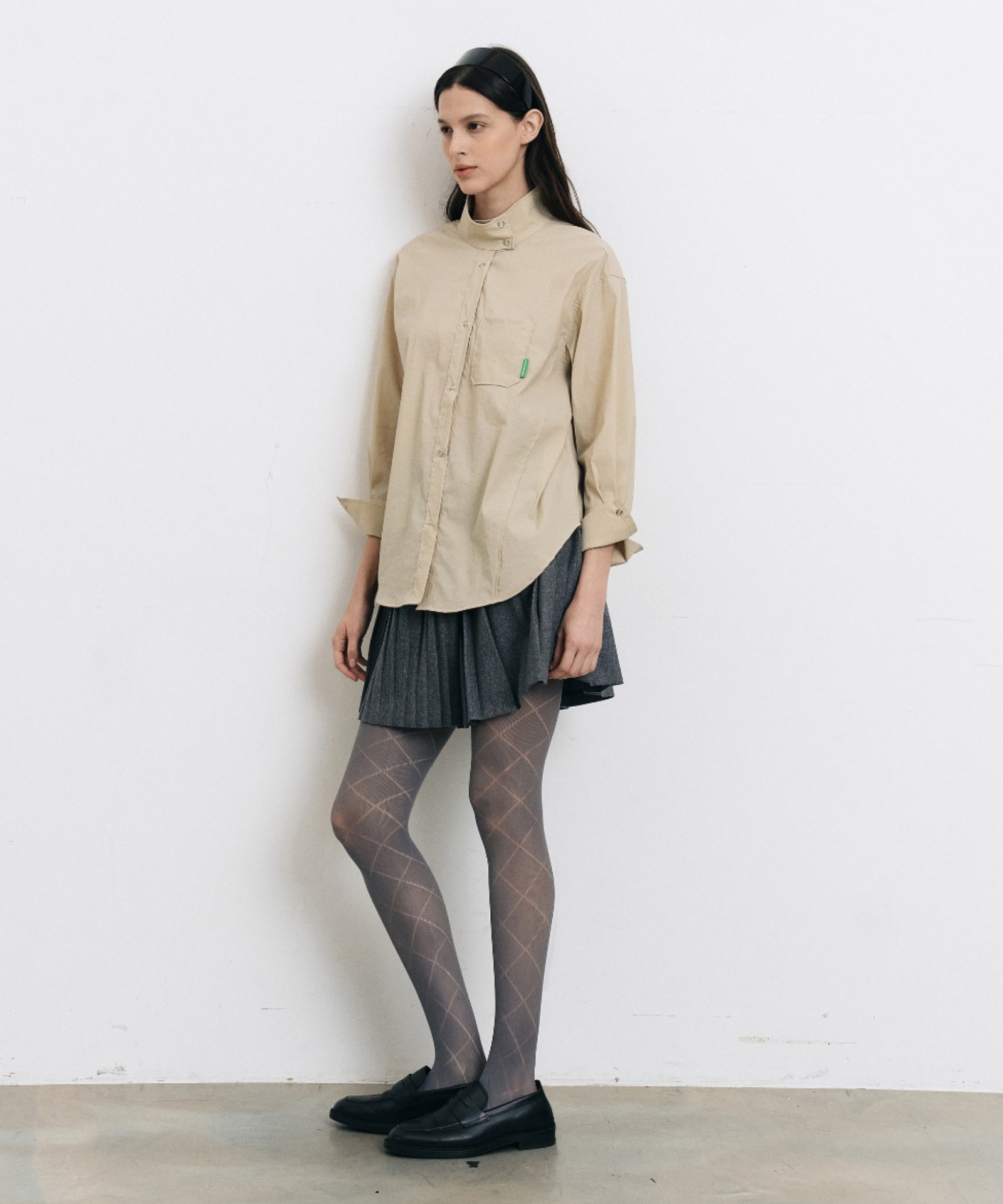 BERMUDA GRASS High-Neck Back-Slit Windbreaker Shirt Beige