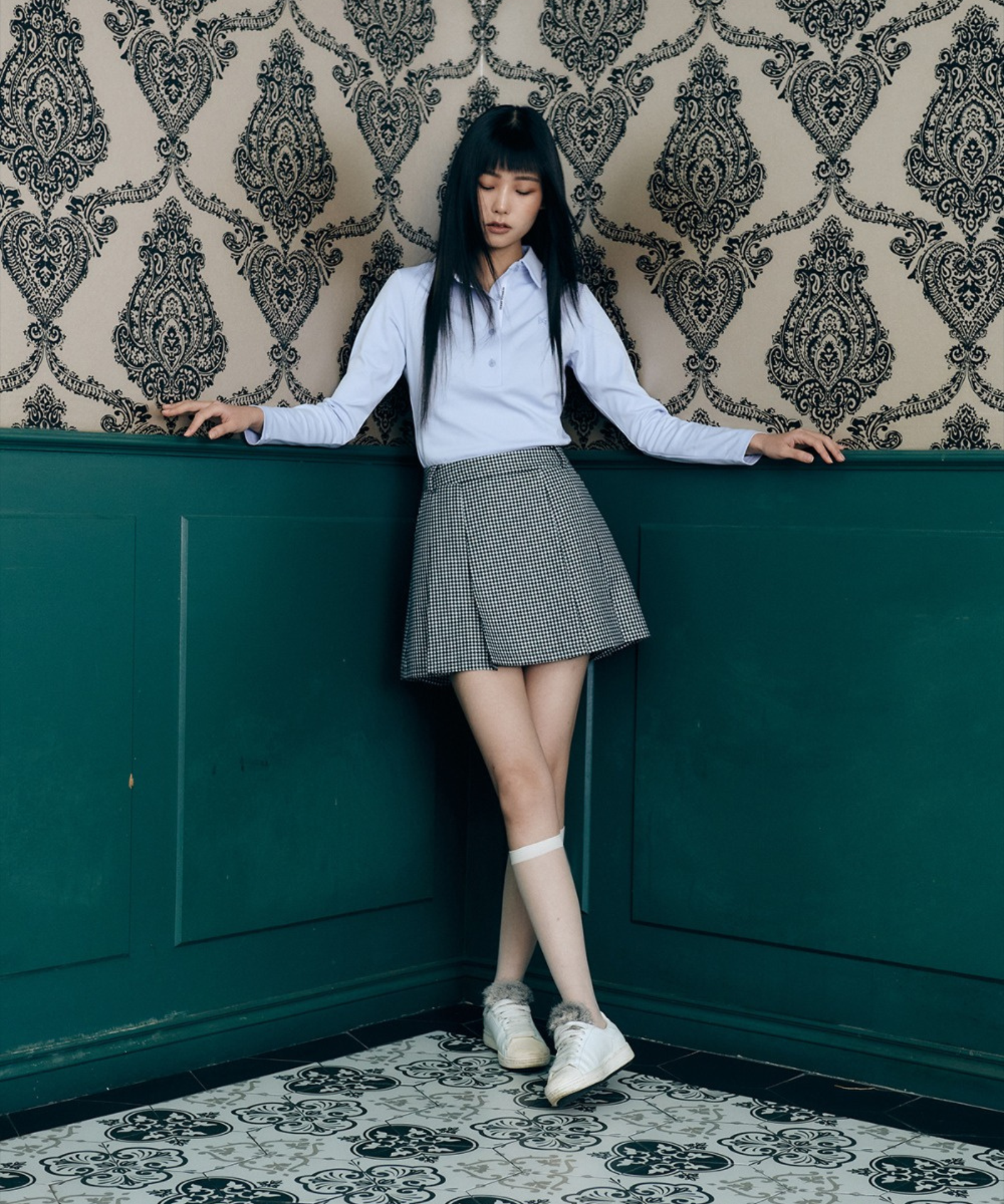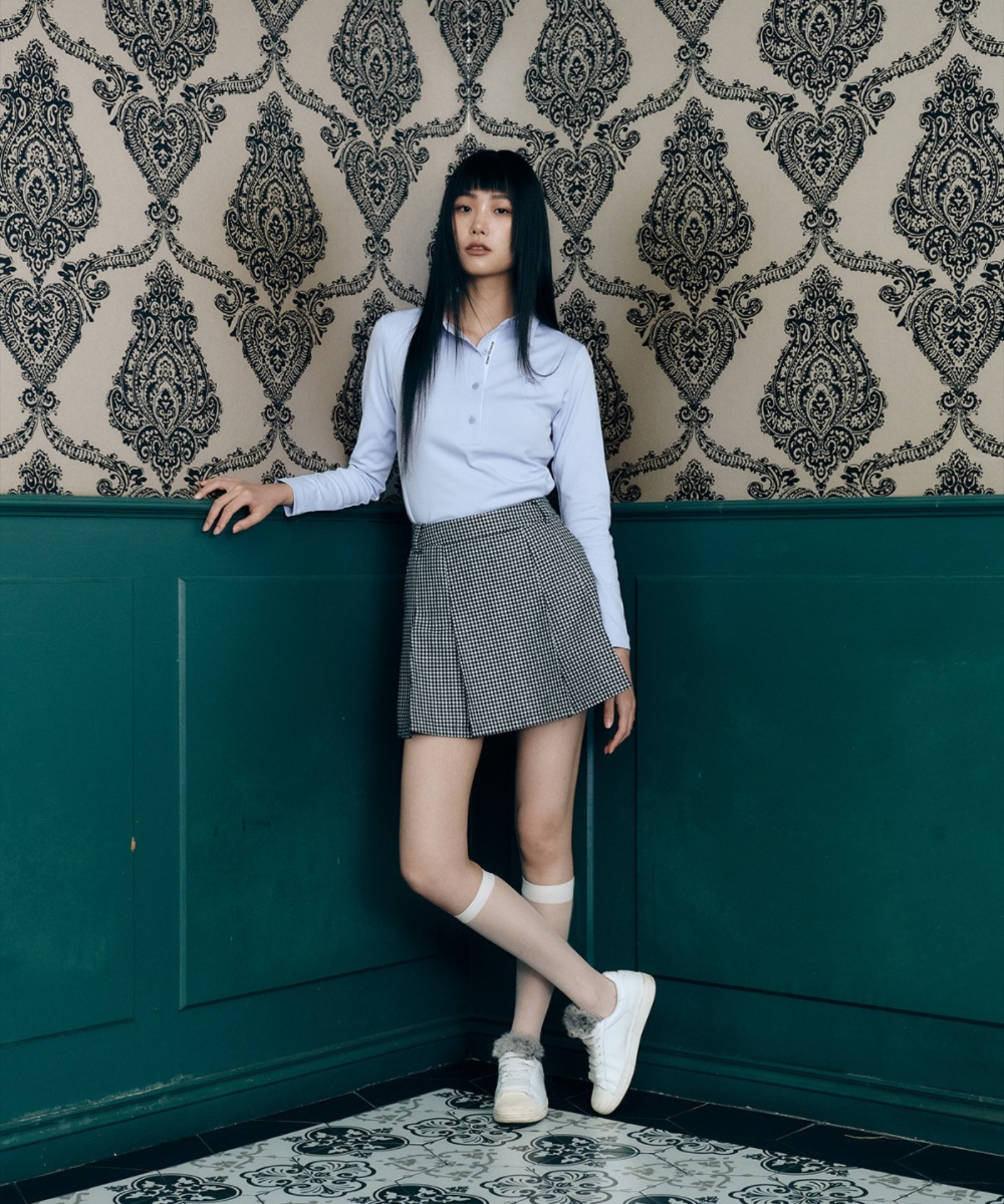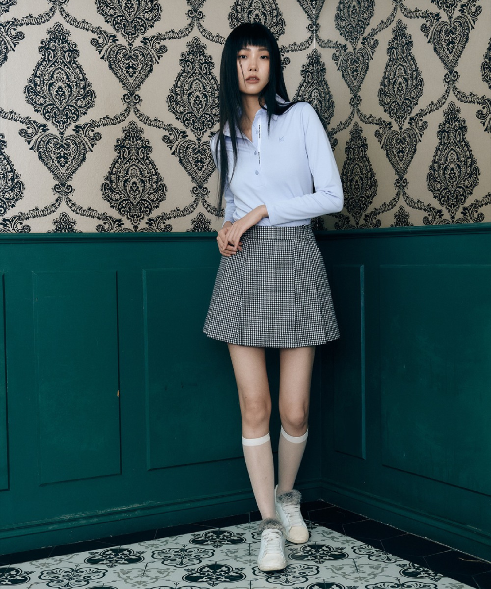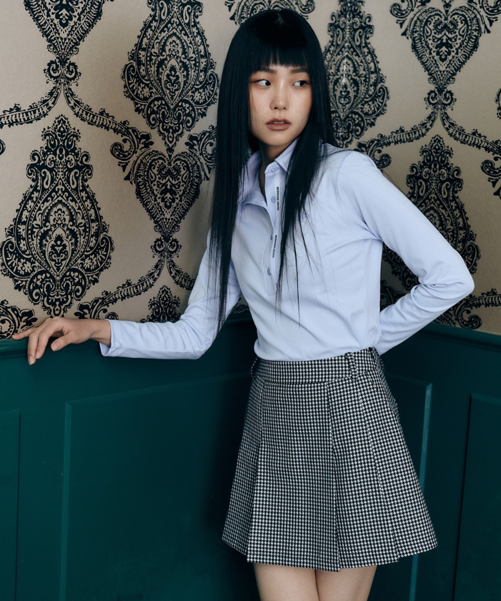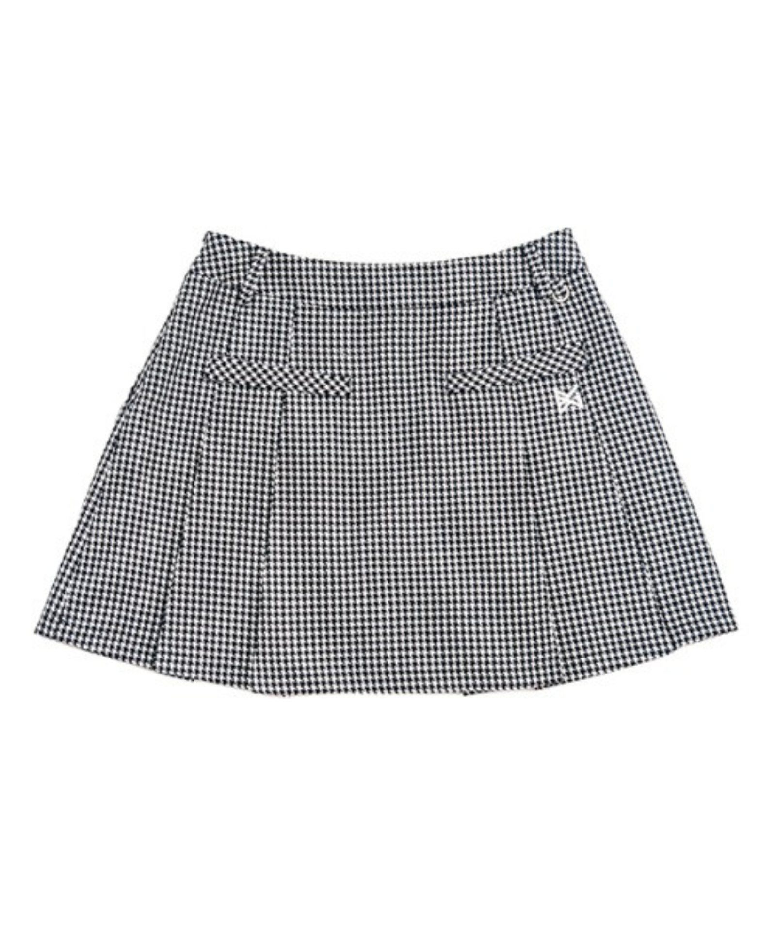 BERMUDA GRASS Houndstooth Pleated Skirt Black