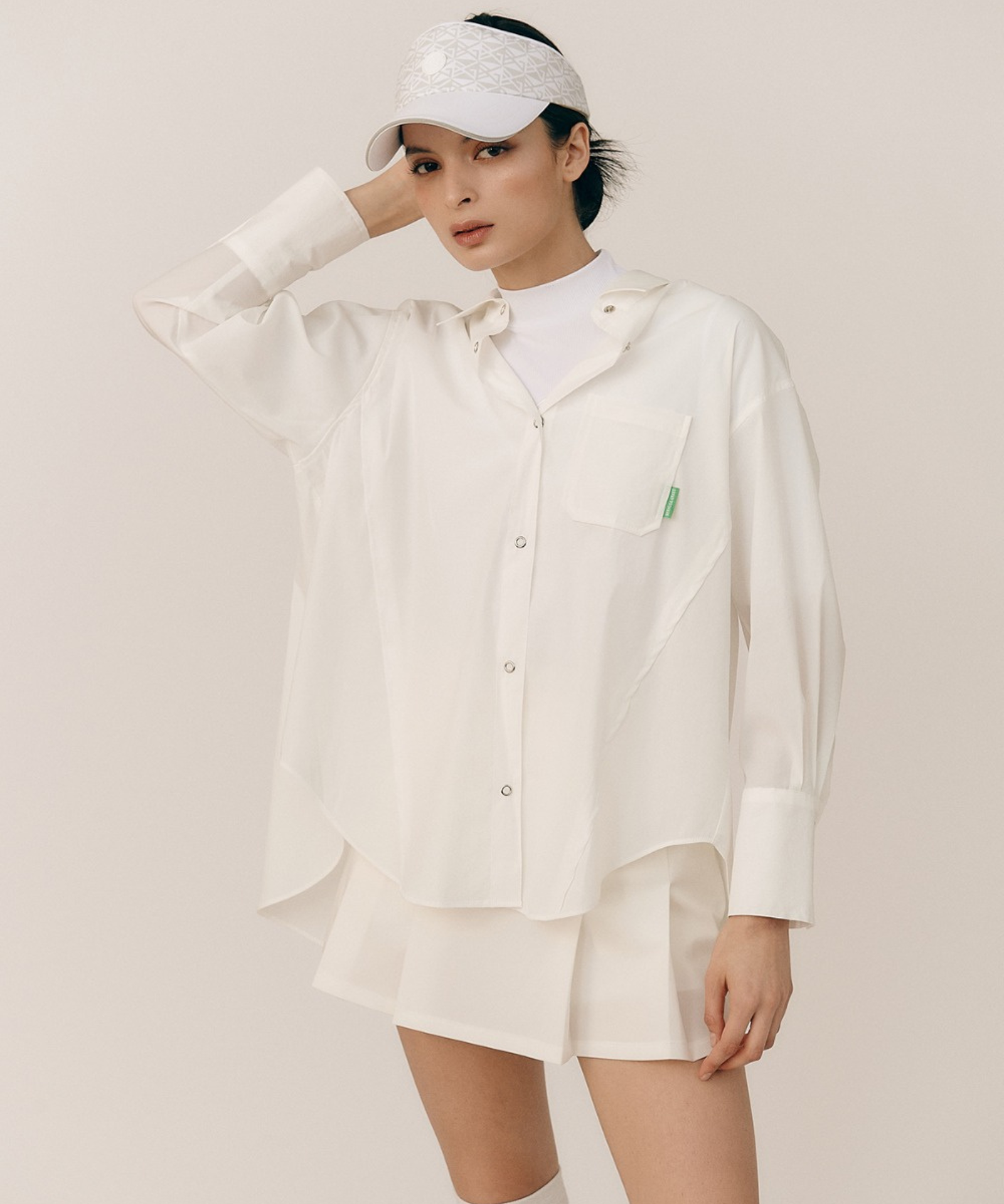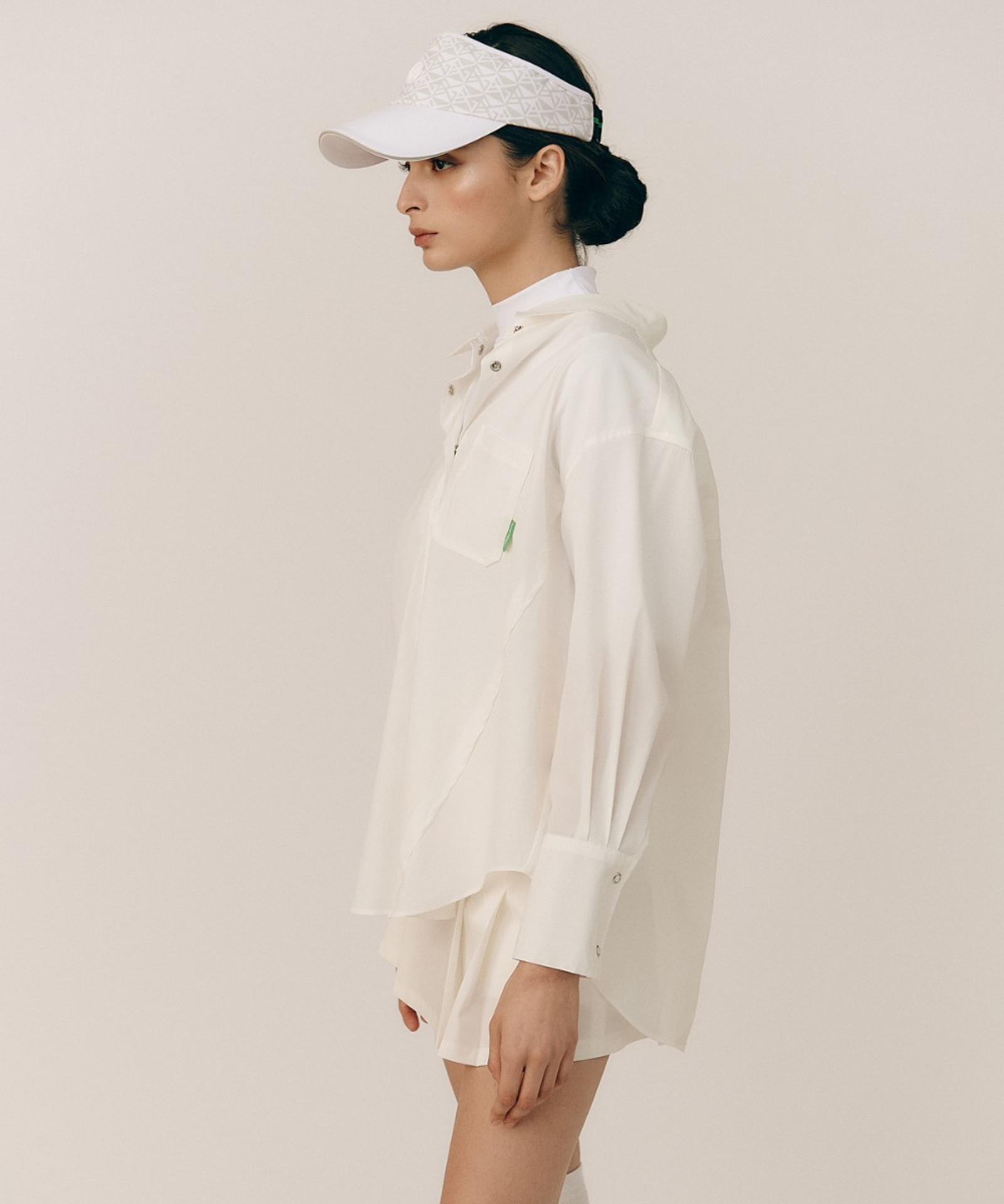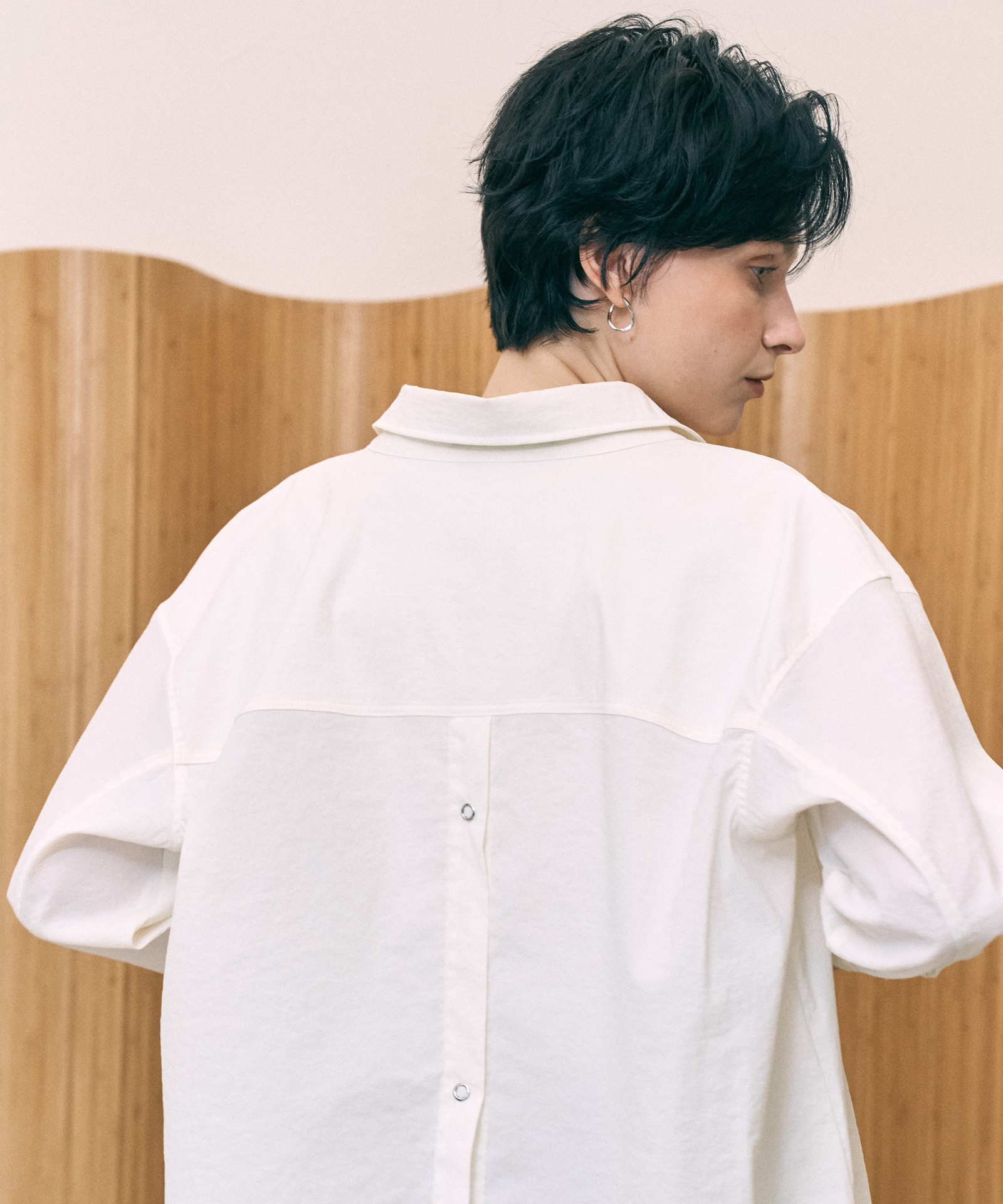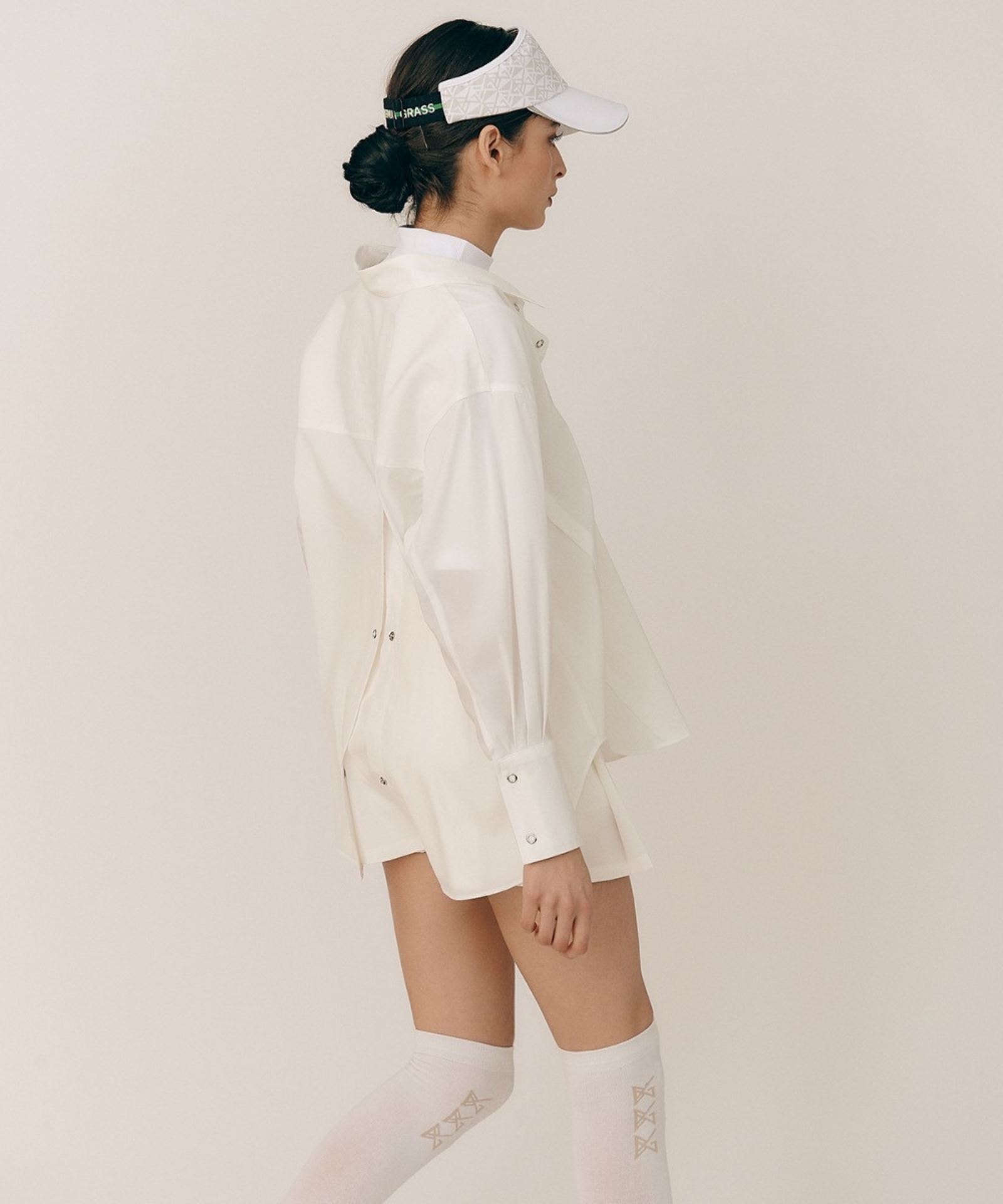 BERMUDA GRASS Overfit Back-Slit Windbreaker Shirt White