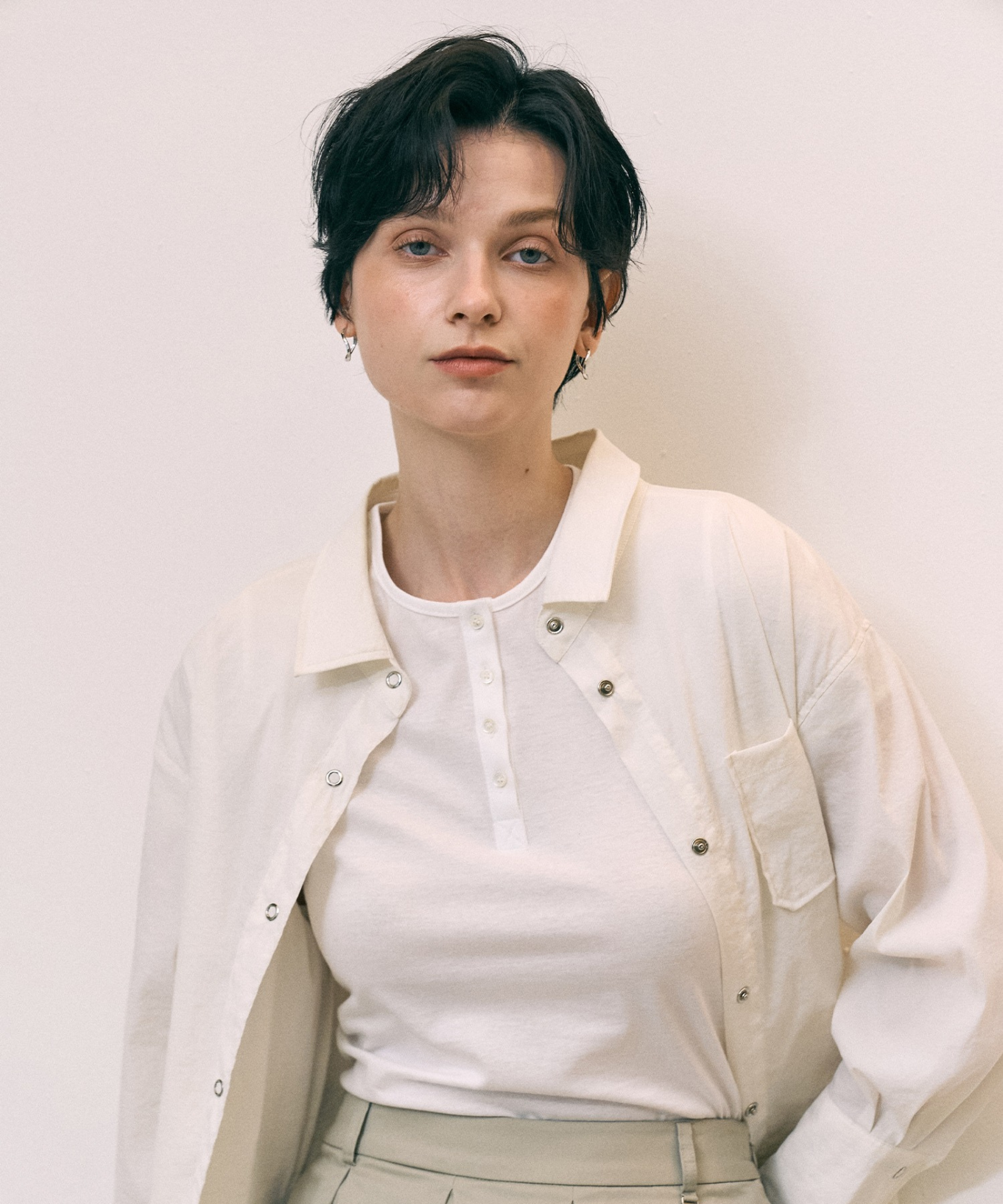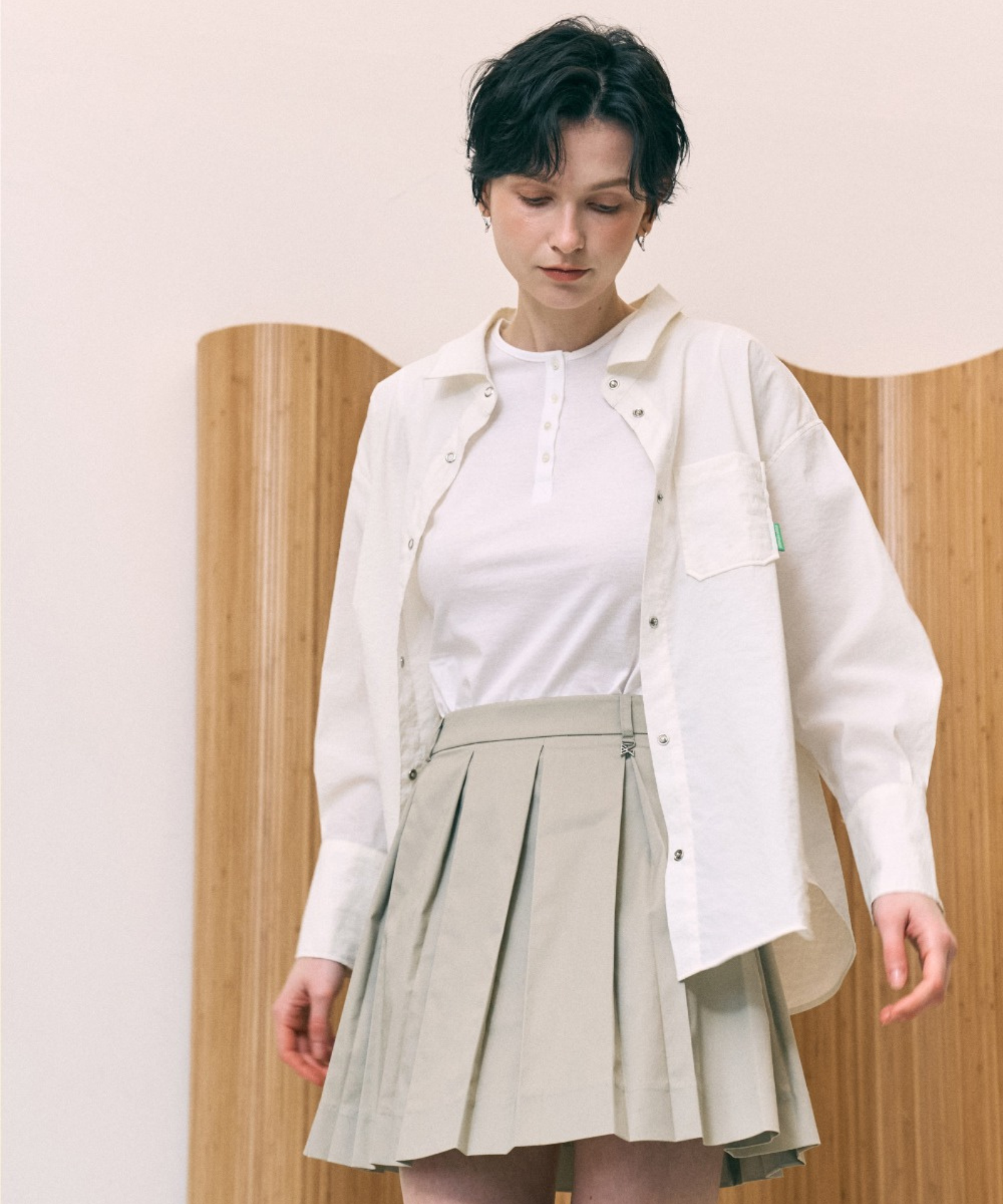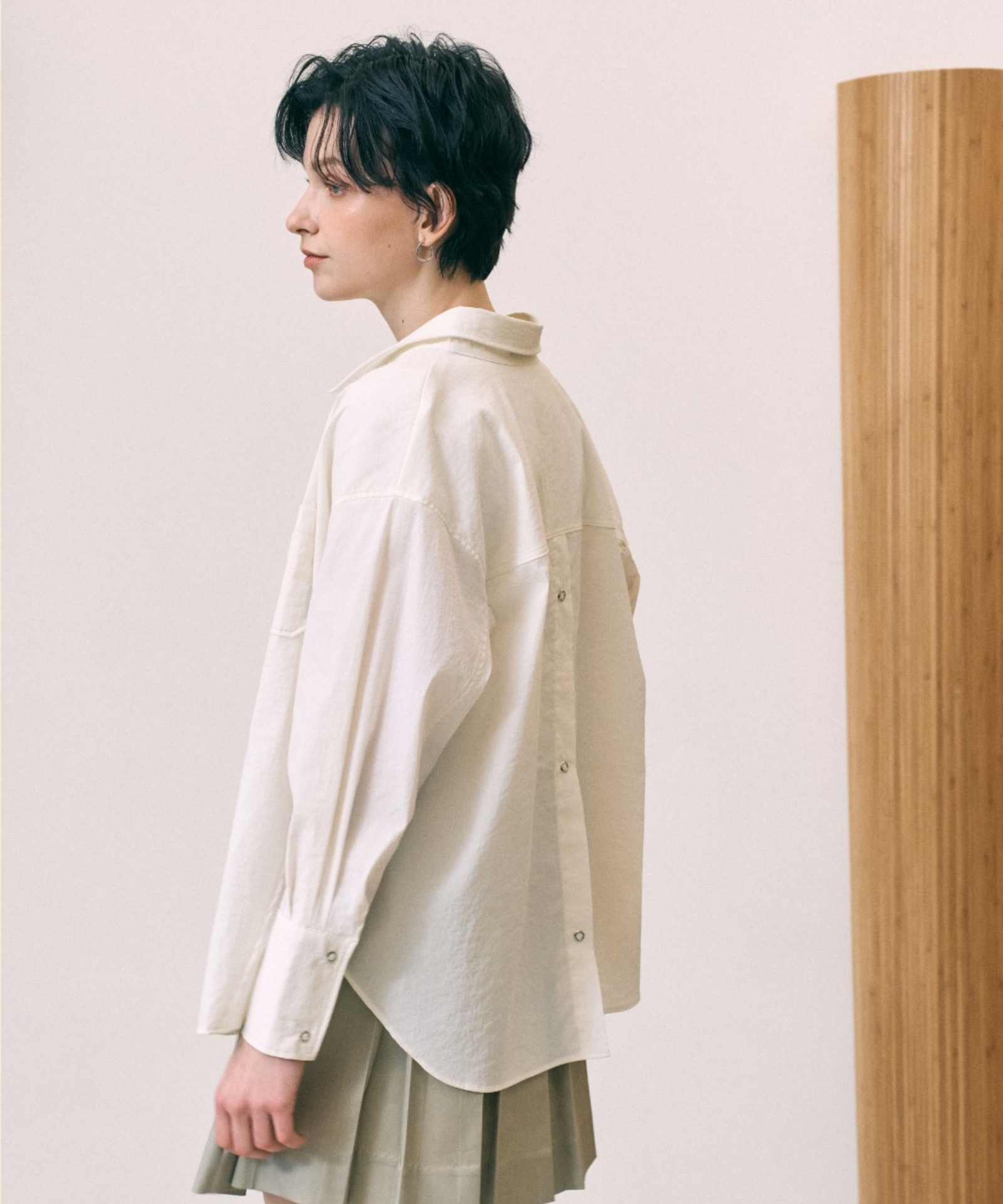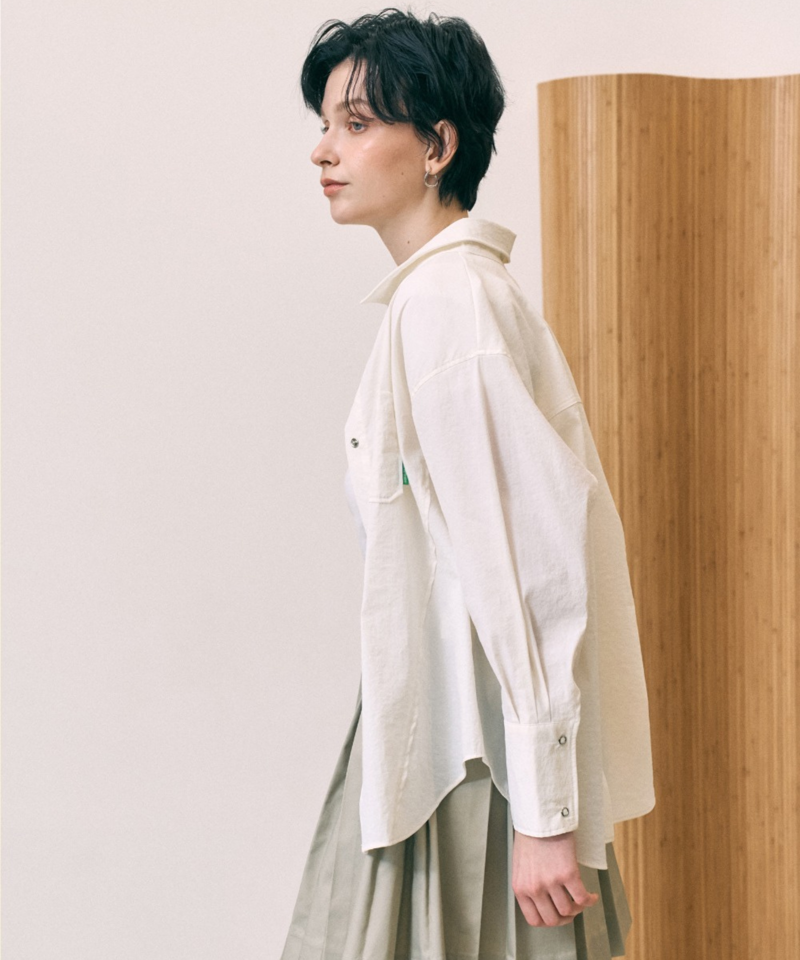 BERMUDA GRASS Overfit Back-Slit Windbreaker Shirt White