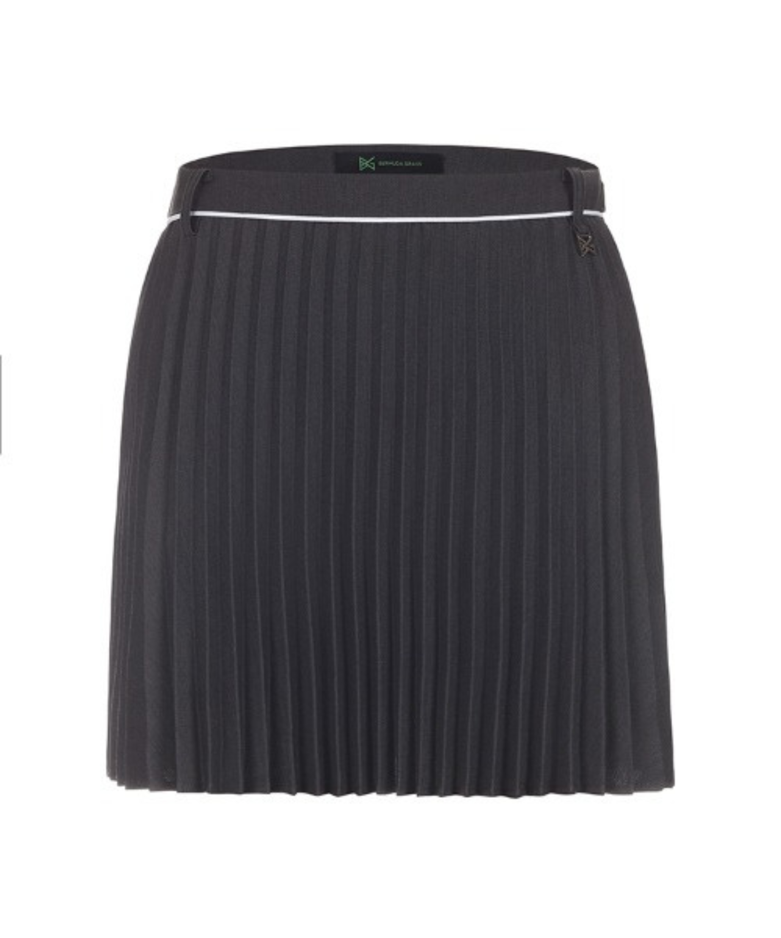 BERMUDA GRASS Pirated Accordion Pleated Skirt in a luxurious Tencel and rayon blend. Features precision-engineered light pleats for graceful movement, signature piping detailing, and functional side pockets. Integrated Coolmax underwear ensures all-day comfort and breathability. A rear D-ring loop adds styling versatility, while a subtle metal logo accent completes the refined design.