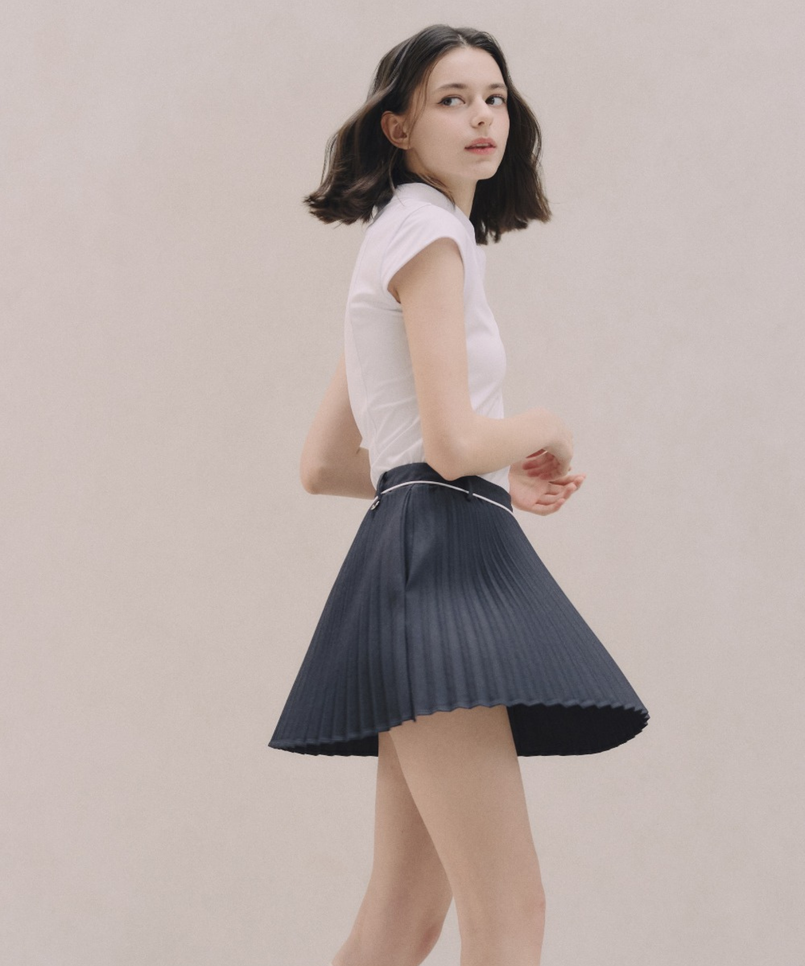 BERMUDA GRASS Piping Accordion Pleated Skirt
