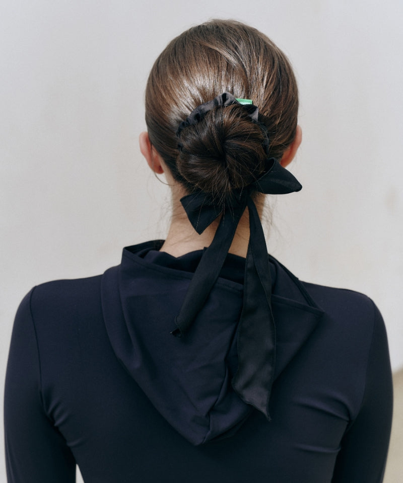 BERMUDA GRASS Satin Scarf Scrunchie Black