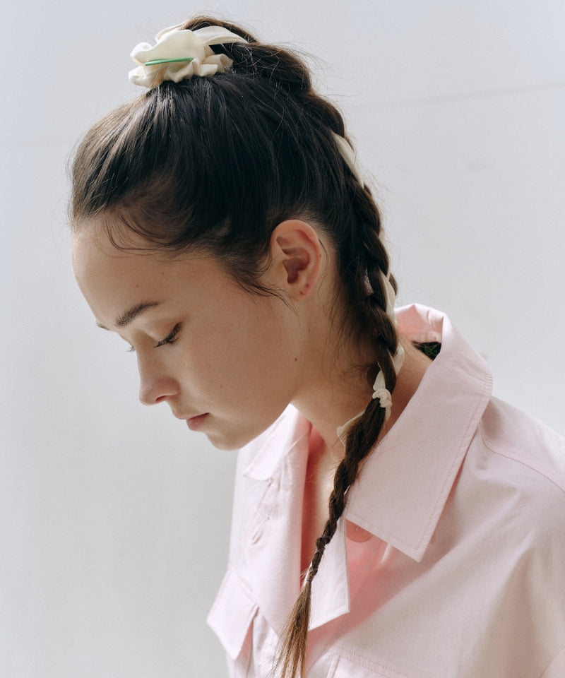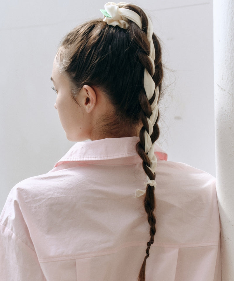 BERMUDA GRASS Satin Scarf Scrunchie Ivory