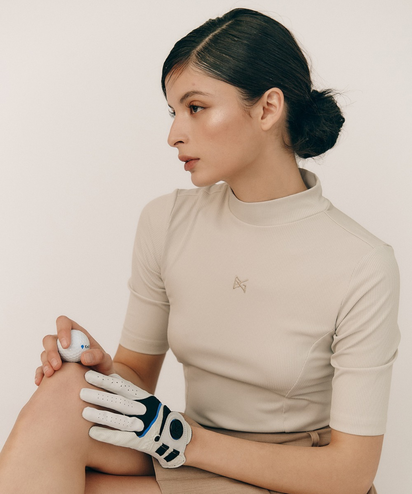 Elevate your activewear with this refined short-sleeved bodysuit, designed for both style and performance. The princess seaming flatters your silhouette while the functional ribbed fabric offers superior stretch and moisture-wicking properties. Thoughtfully engineered with snap closures for convenience and shape-retention tape at the shoulders and hips, this piece maintains its polished fit through every movement. A subtle front logo and half-neck design complete this sophisticated essential.