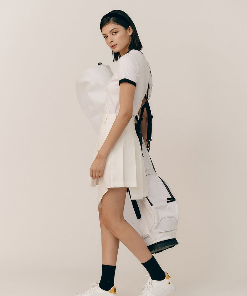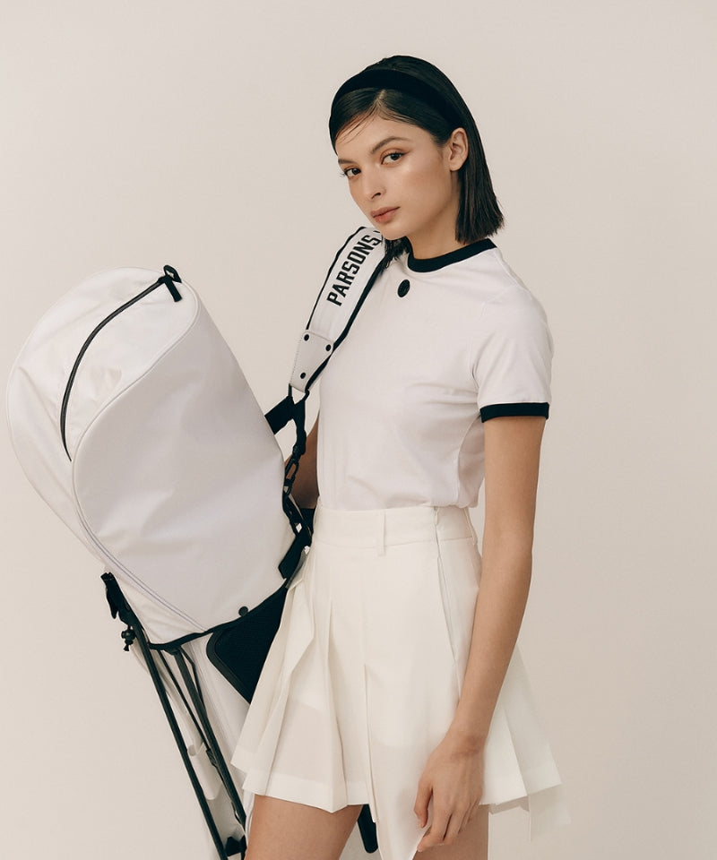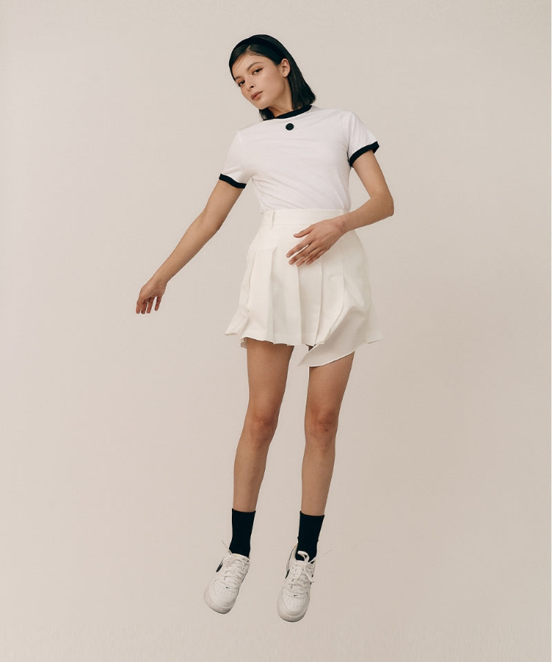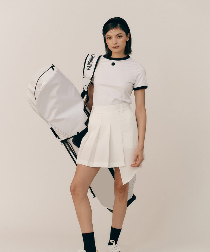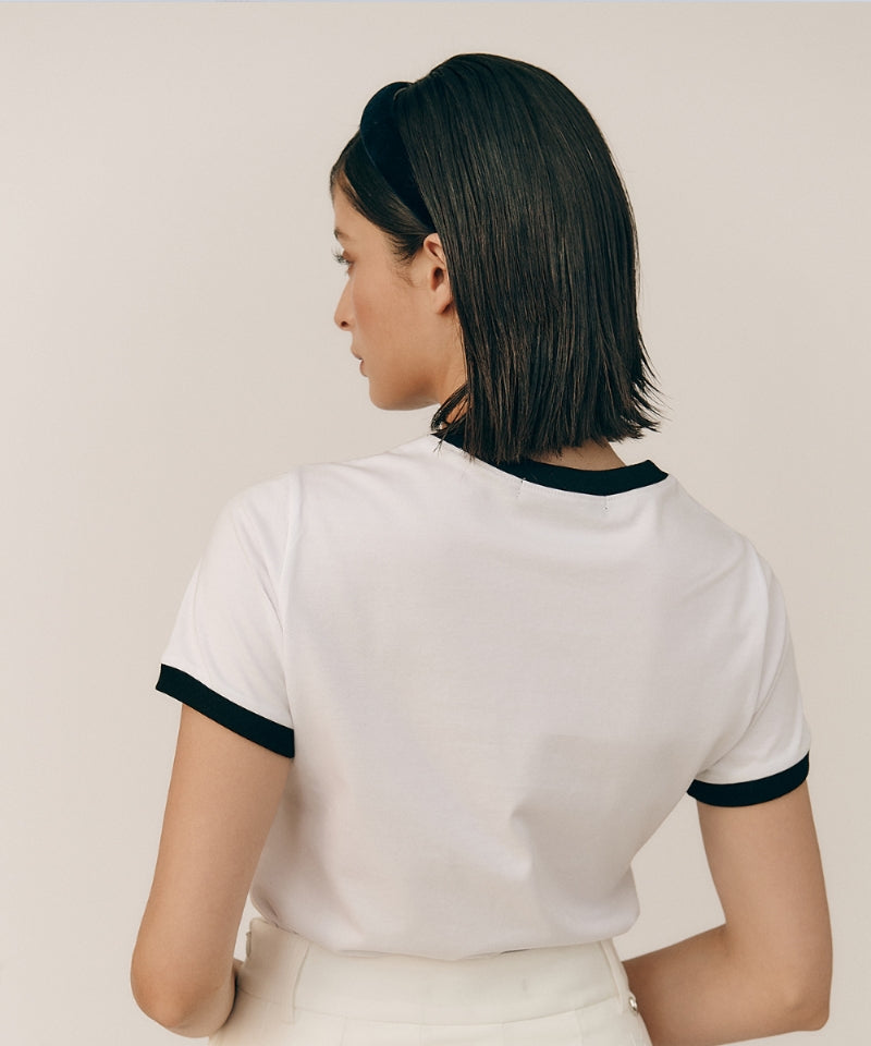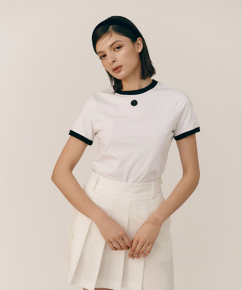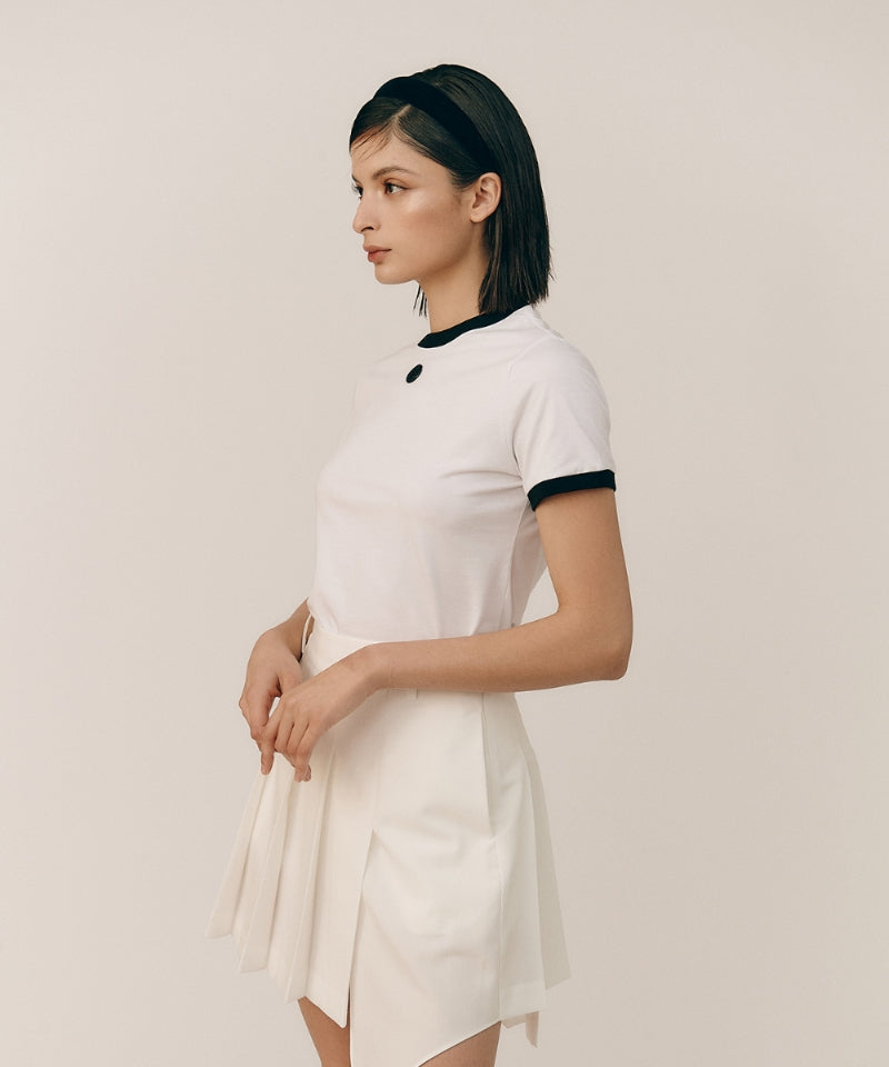BERMUDA GRASS Short Sleeved Color Block Silk T-shirt White