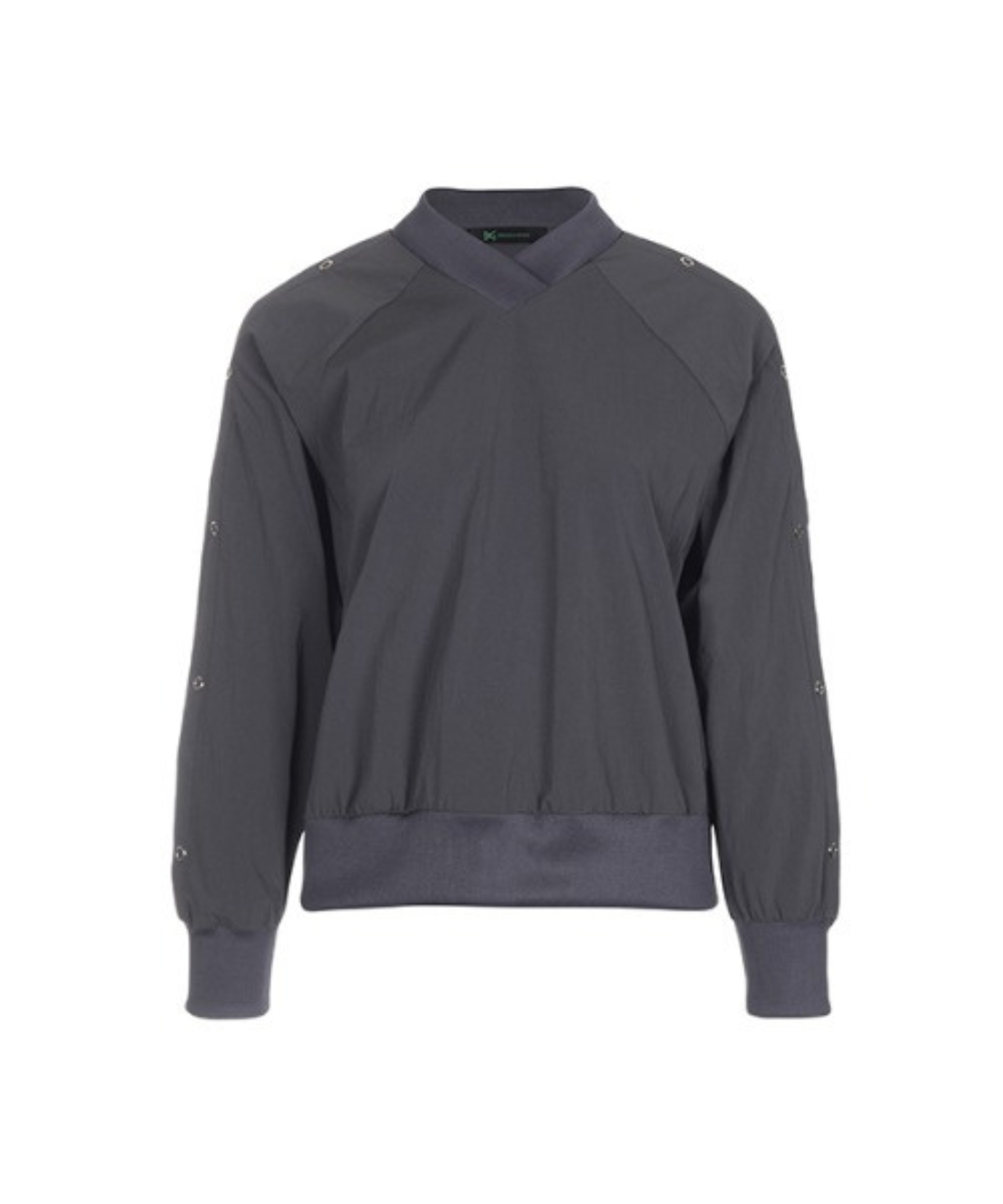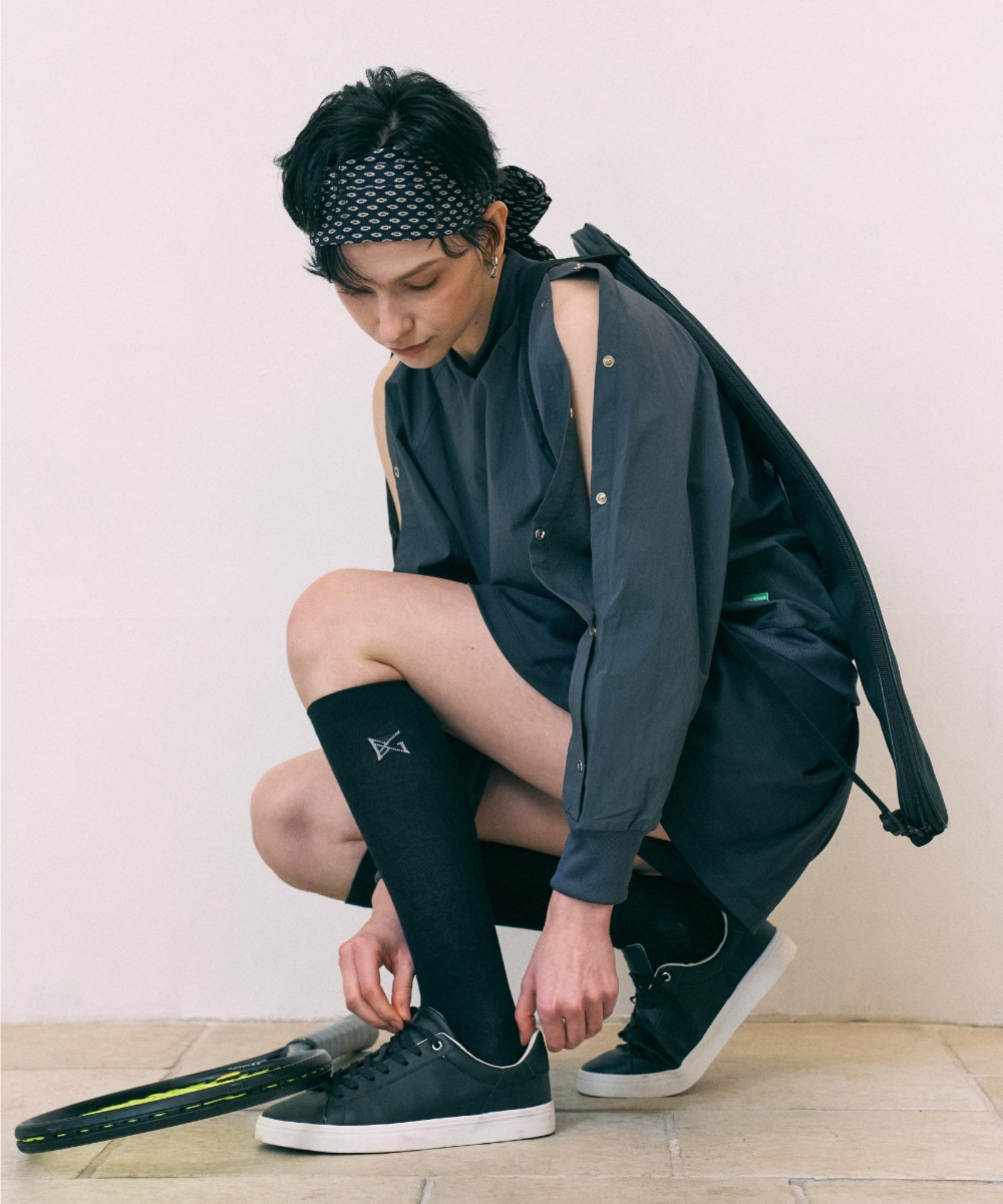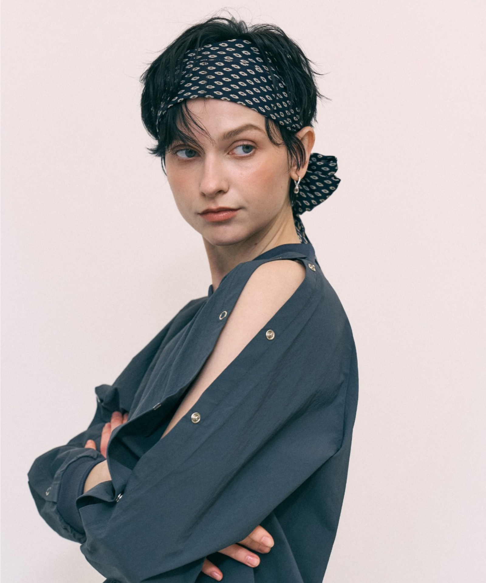 Lightweight, functional windbreaker material with water-repellent treatment. Openable snap button detail. Functional Shibori finish. Logo label with color point. Lightweight, stretchy windbreaker material. Water-repellent treatment for a water-resistant effect. Shoulder team detail adds ventilation effect. Real snap button that can be opened and displayed. Logo label with color point.