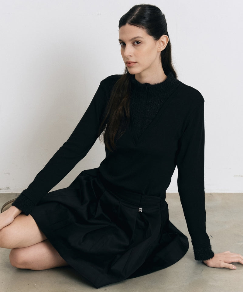 This refined knit tee features luxurious fur accents adorning the collar and cuffs, paired with a convenient center zip for effortless styling. Crafted from supremely elastic knit fabric, it delivers exceptional warmth and comfort while the extended sleeves provide additional insulation. The innovative reversible construction offers dual aesthetic possibilities, allowing you to transition between two distinct looks with a single versatile piece.