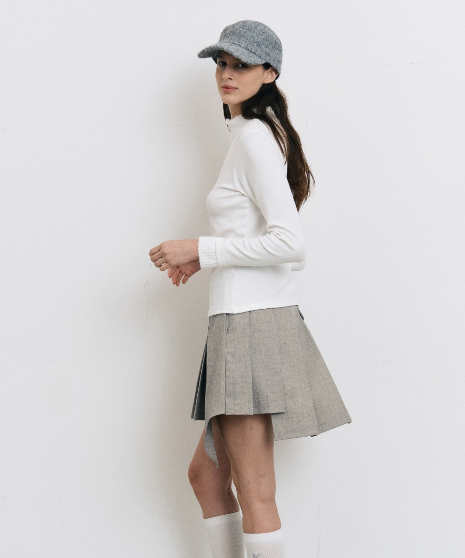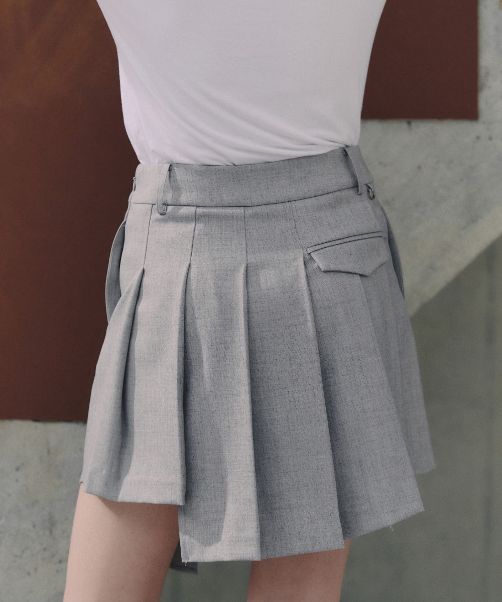 BERMUDA GRASS Unbalanced Wool Pleated Skirt