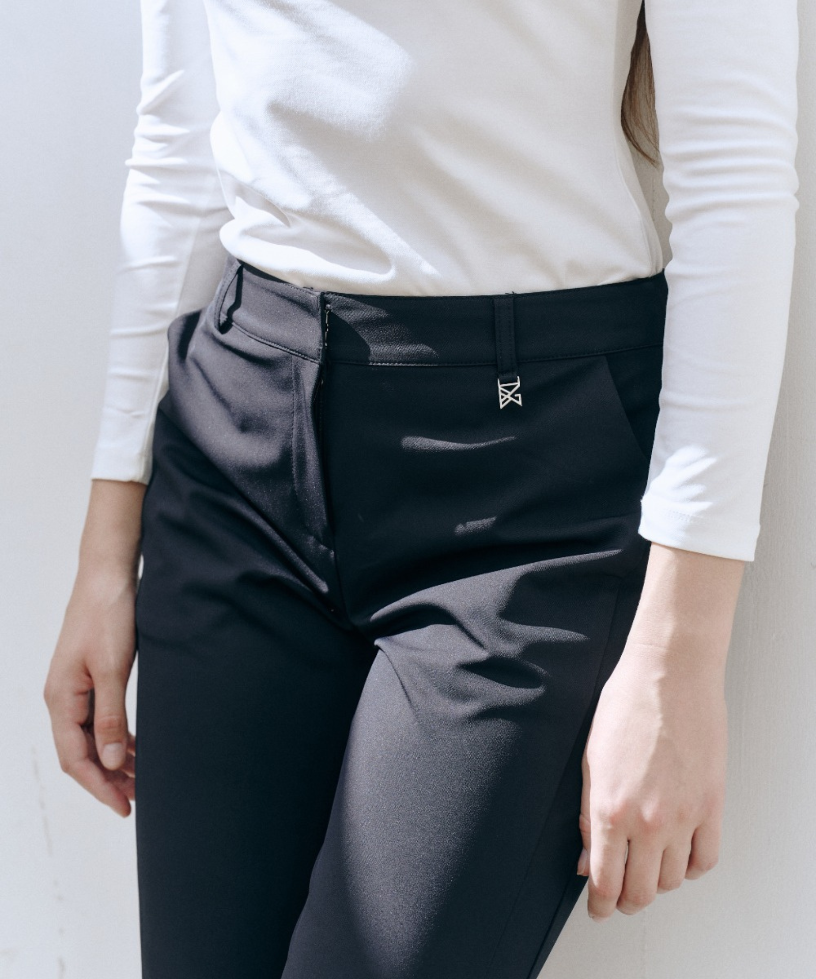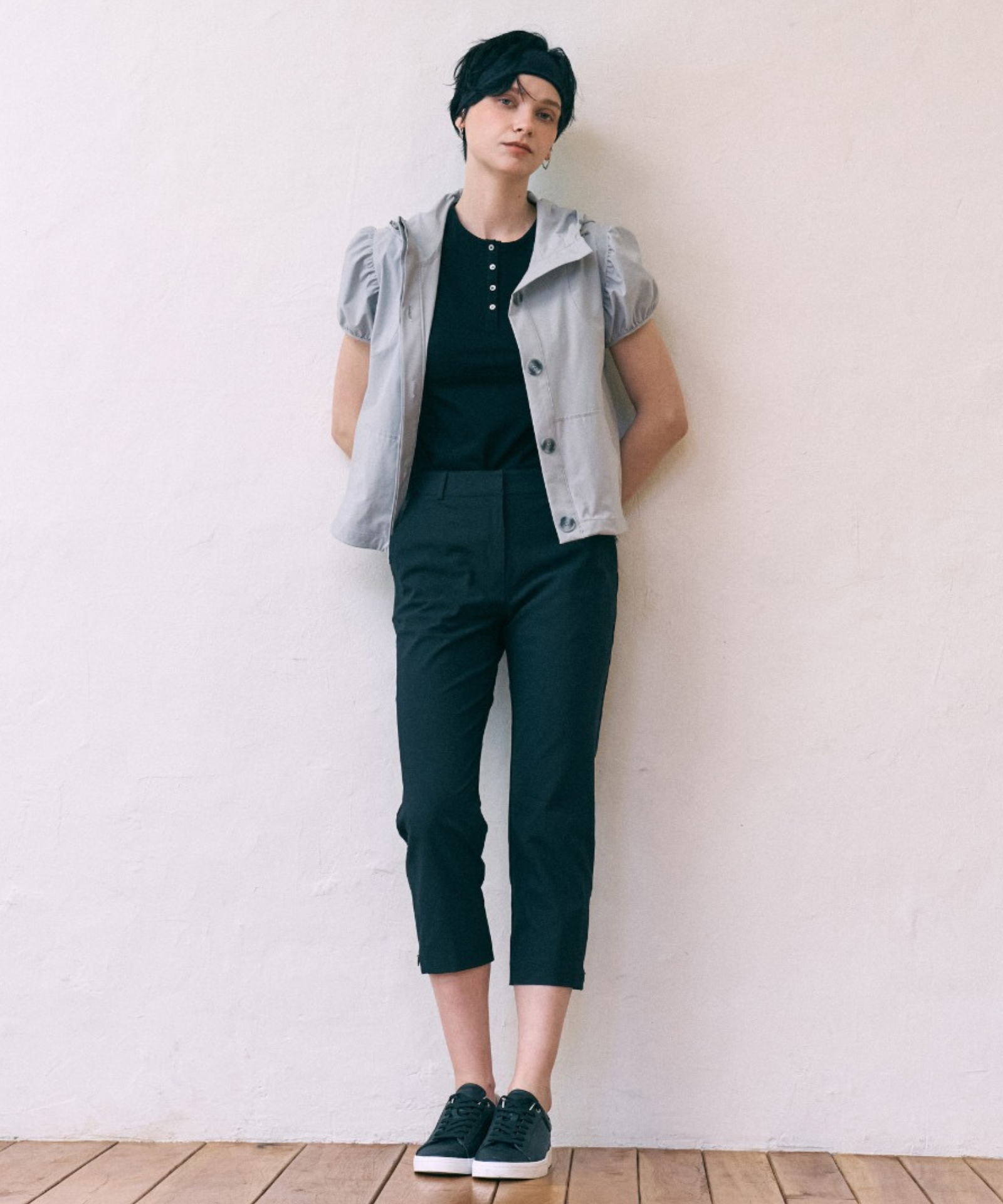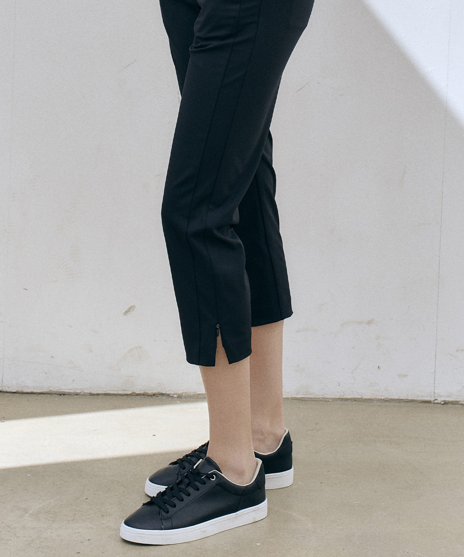 BERMUDA GRASS Waist Banding Crop Slacks Black