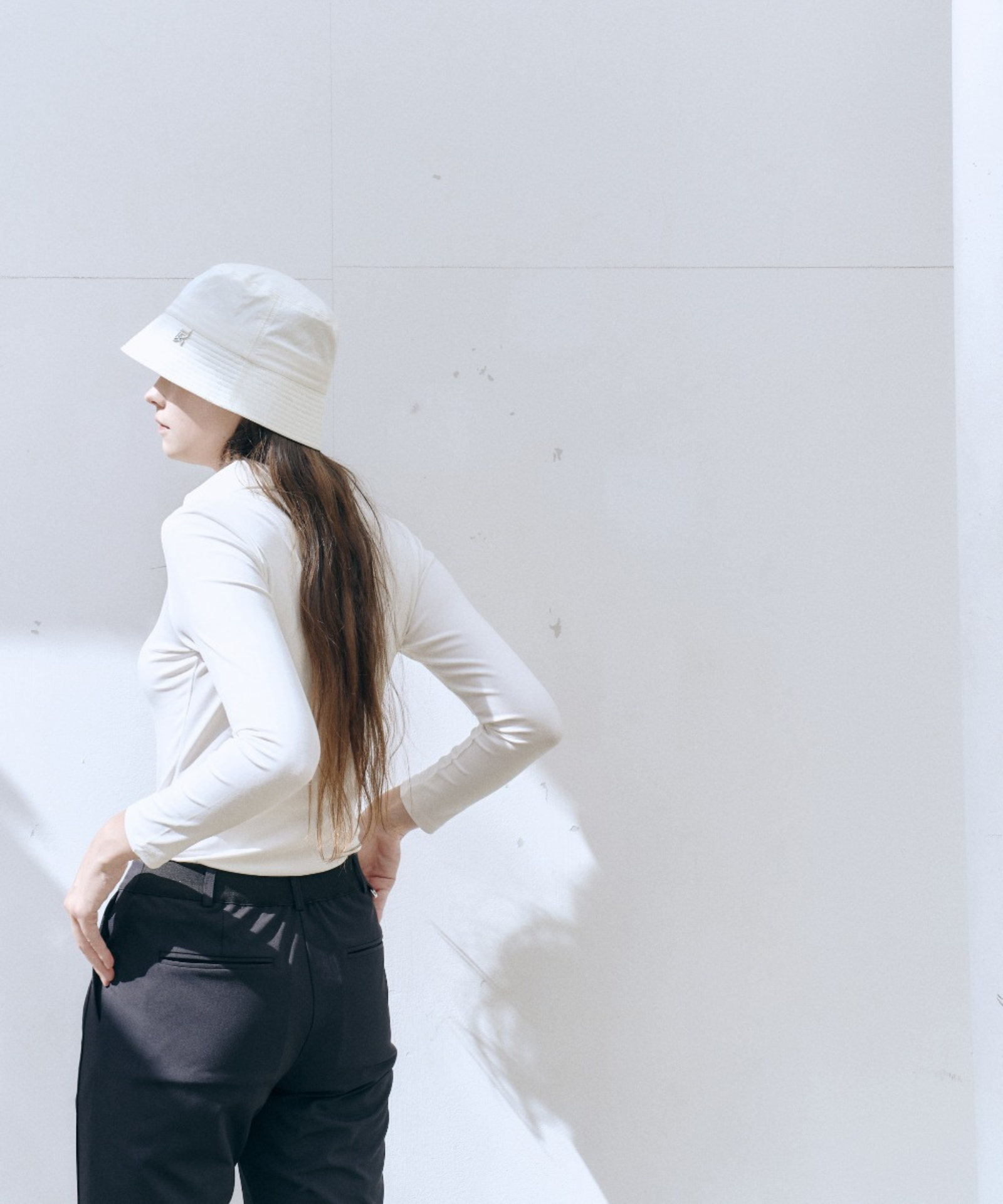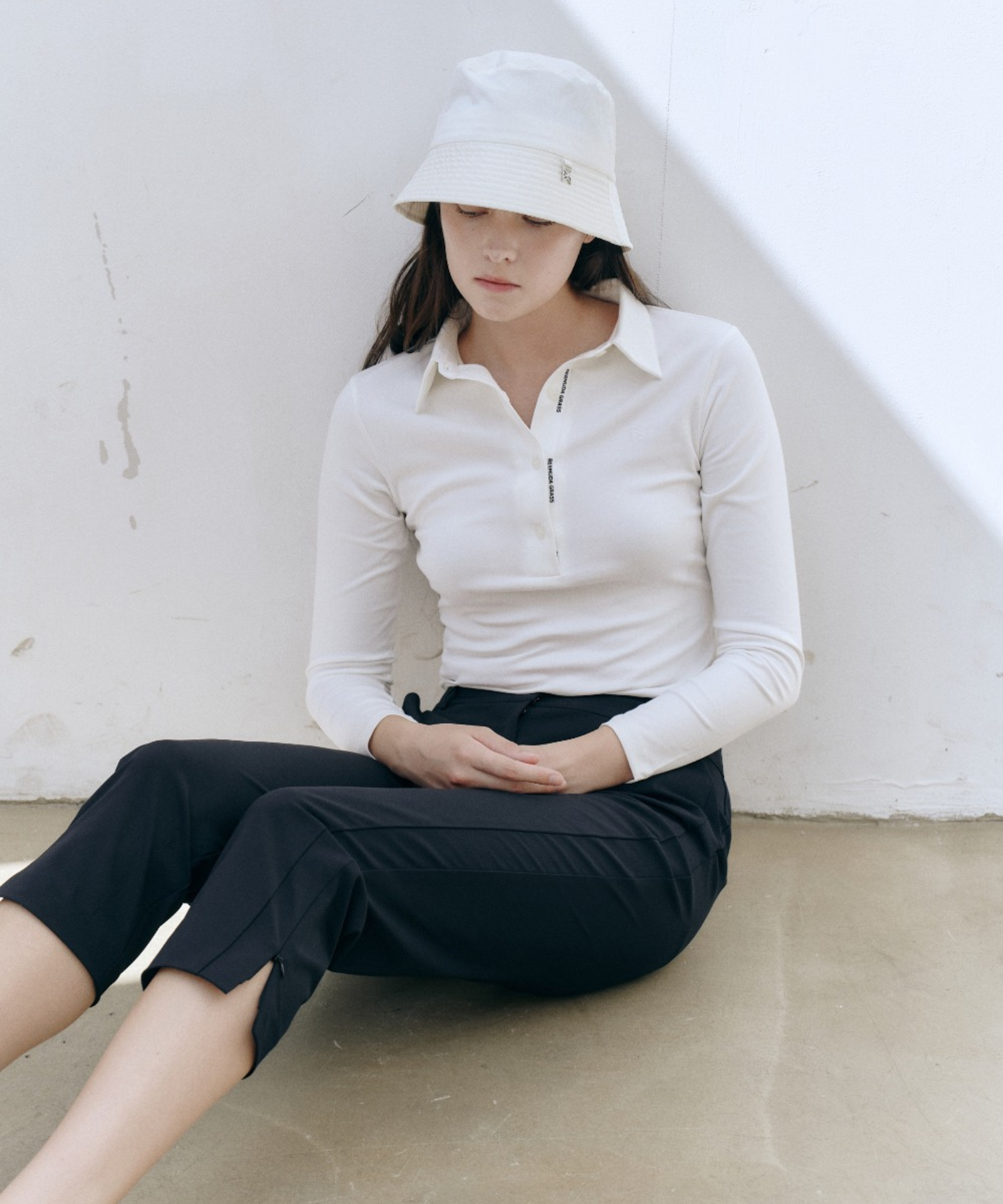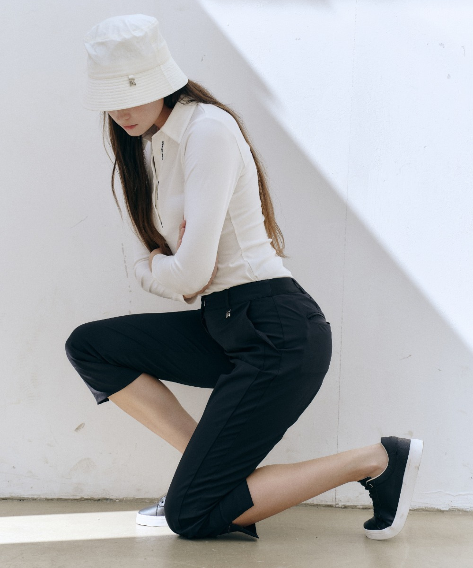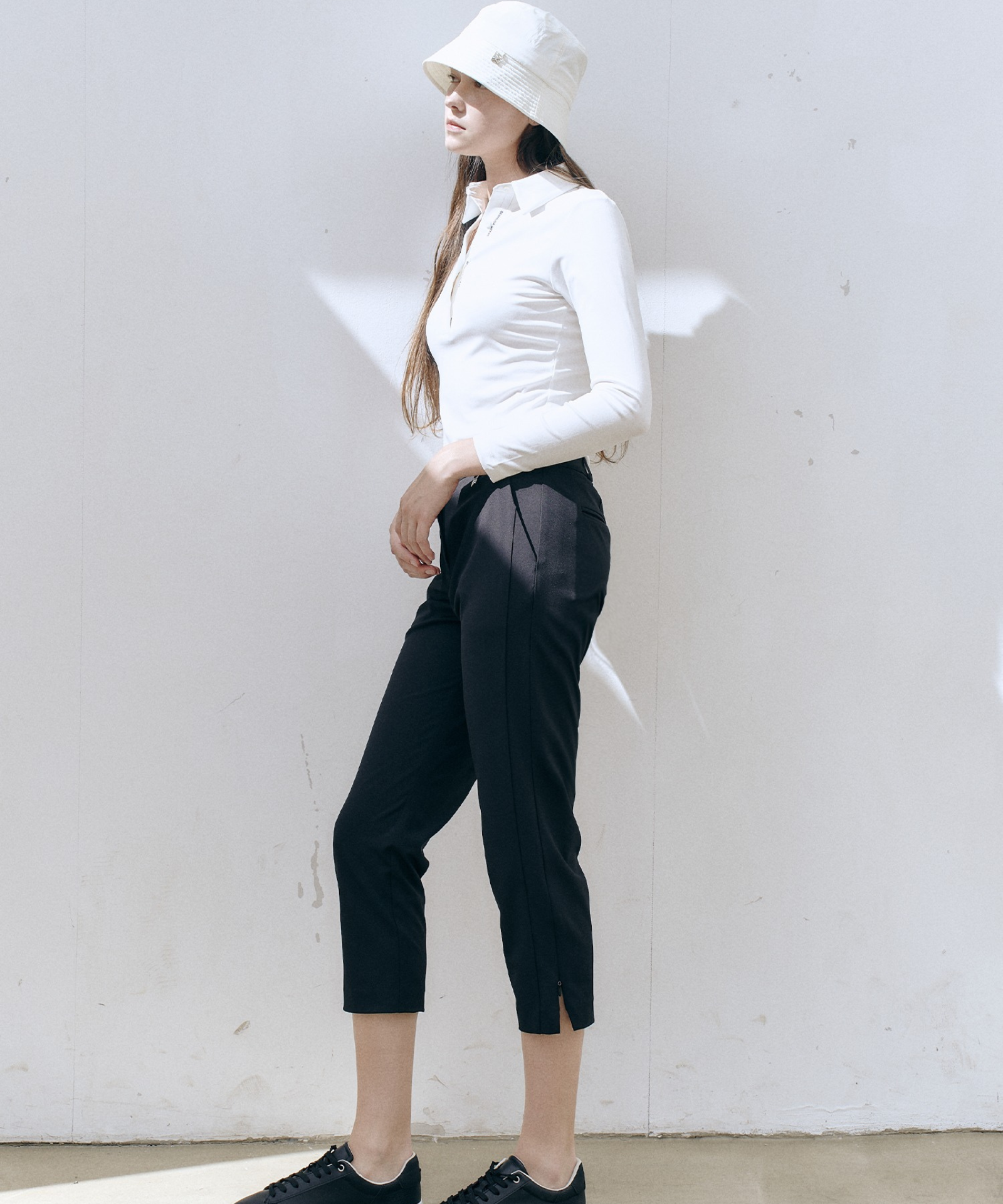 BERMUDA GRASS Waist Banding Crop Slacks Black