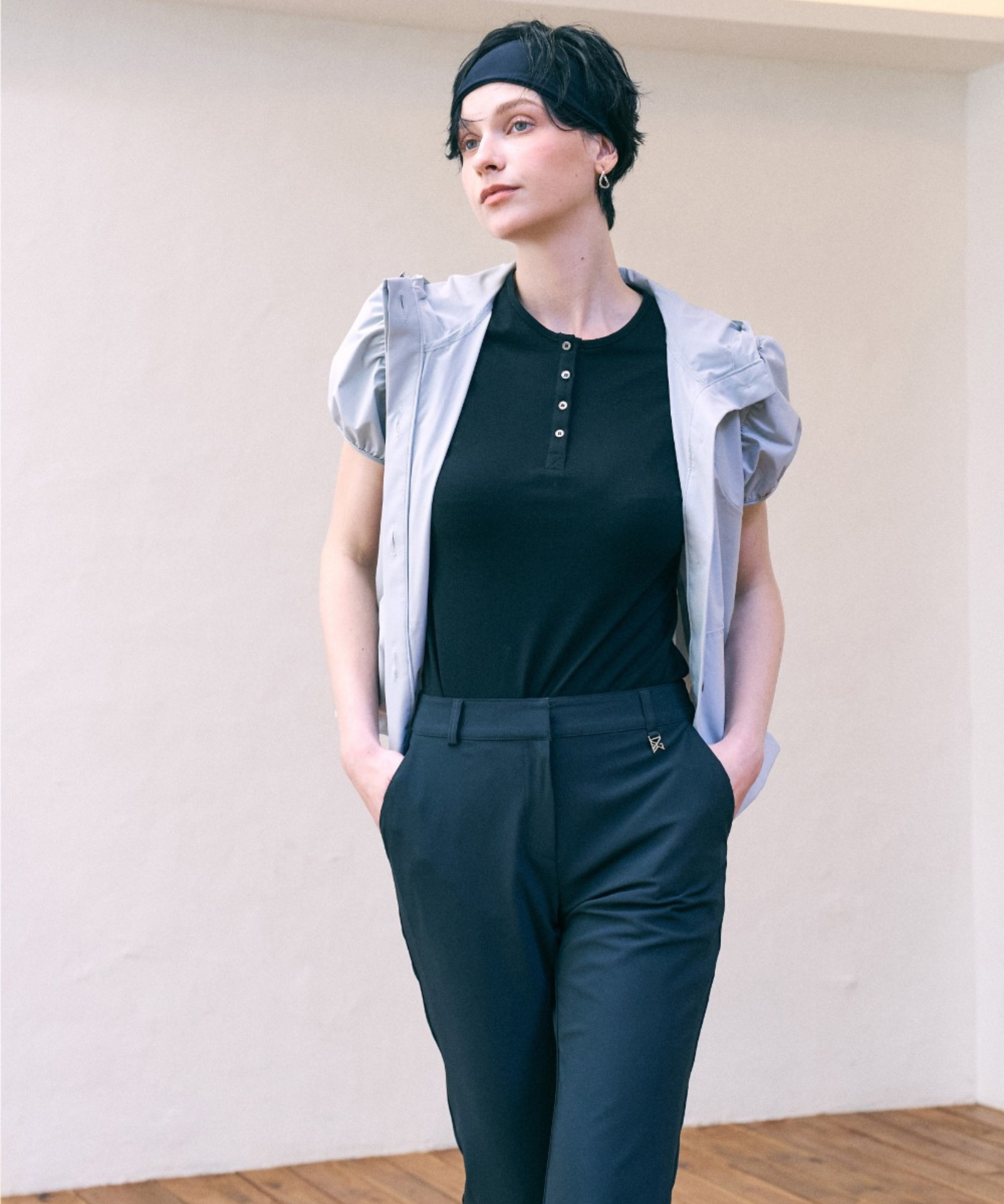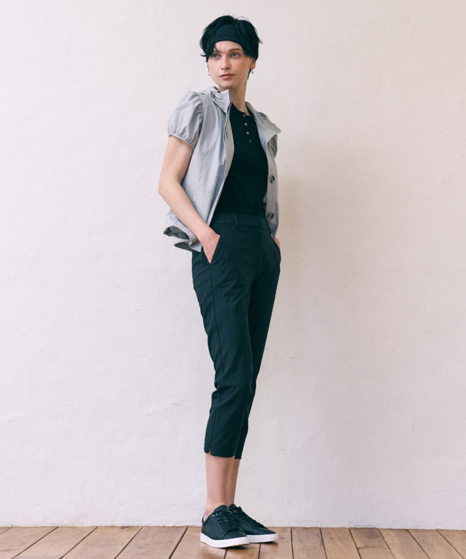 Elevate your wardrobe with these sophisticated cropped slacks, engineered with advanced functional fabric that resists wrinkles and maintains opacity. The water-repellent material shields you from rain, wind, and harmful UV rays, making them ideal for unpredictable weather. A contemporary cropped silhouette pairs beautifully with the rear waistband detail and adjustable side hem zippers for a customized fit. Practical side pockets and back lip pockets keep essentials within reach,