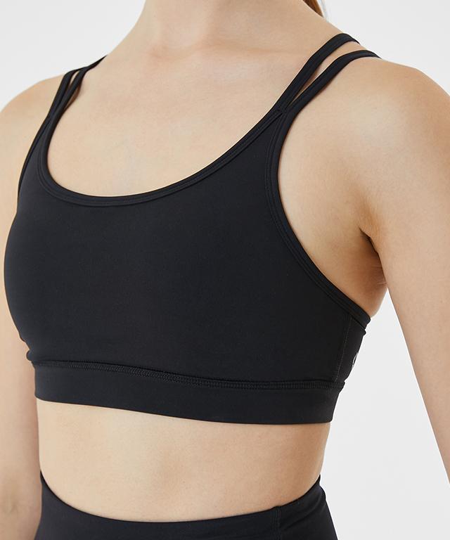 The binding strap design provides a lighter wearing feeling. The double-binding straps for the neck and armhole lines provide a stable support for the chest and a beautiful silhouette. Create an elegant backline with the double-strap back design.