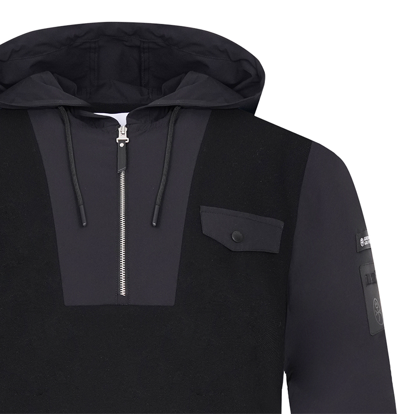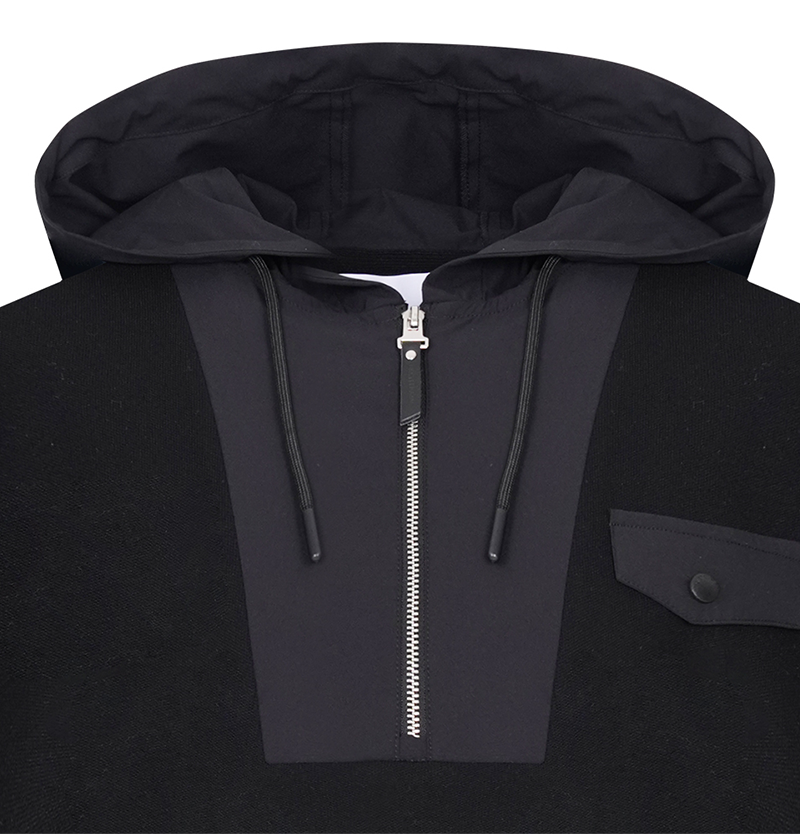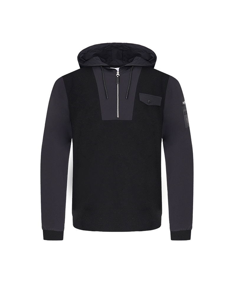Engineered for versatile layering, this men's hooded hybrid half-zip knit seamlessly blends comfort with contemporary style. The strategic combination of knit and hybrid construction delivers optimal breathability and flexibility for both casual wear and active pursuits. The half-zip design allows easy temperature adjustment, while the integrated hood adds functional coverage. Available in two sophisticated colorways, this piece transitions effortlessly from weekend outings to layered workwear. Premium craftsmanship ensures durability through repeated wear and washing, making it a reliable addition to any modern wardrobe.