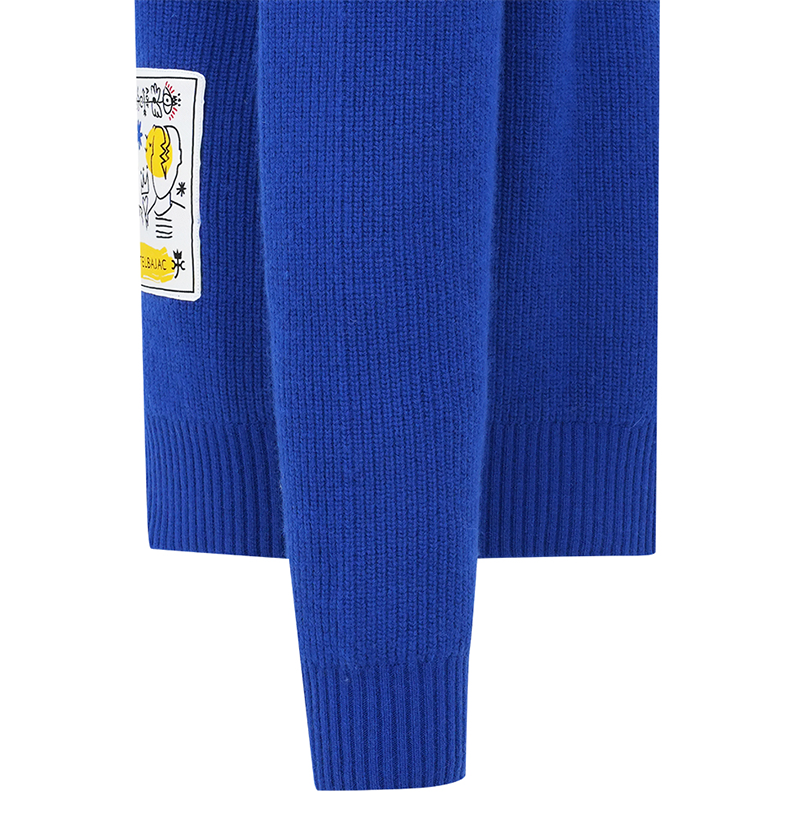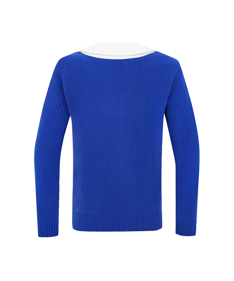 Castelbajac Men's Logo Collar Two-tone Half-zip Knit - Blue