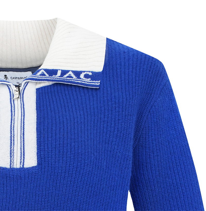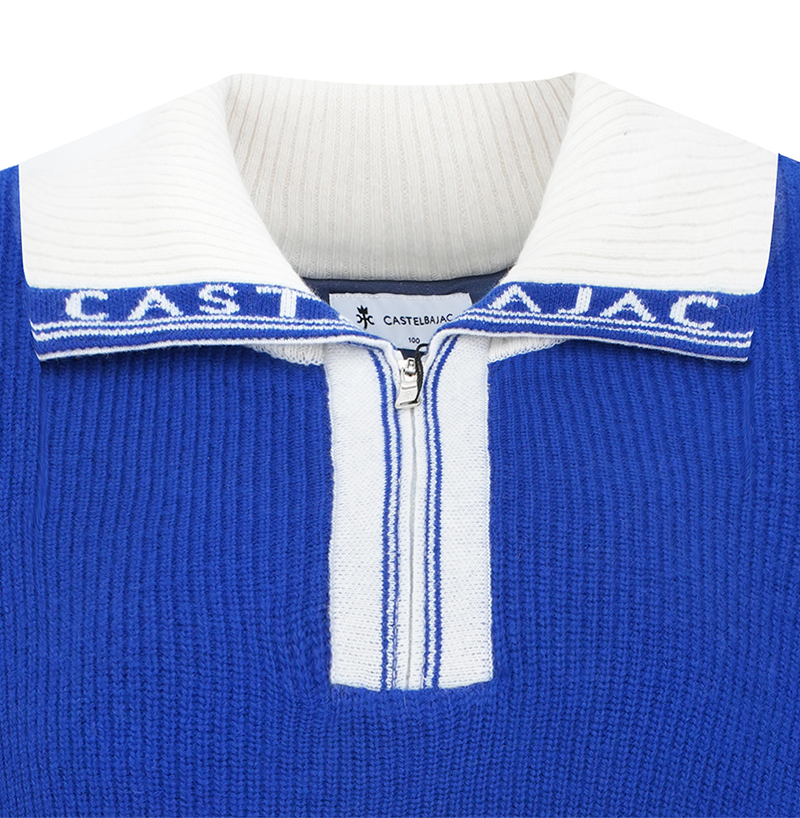 Elevate your wardrobe with the Castelbajac Men's half-zip knit in a sleek, two-tone design. The luxurious logo collar adds a touch of sophistication to this premium piece, making it perfect for any occasion. Stay stylish and warm in this must-have knit.