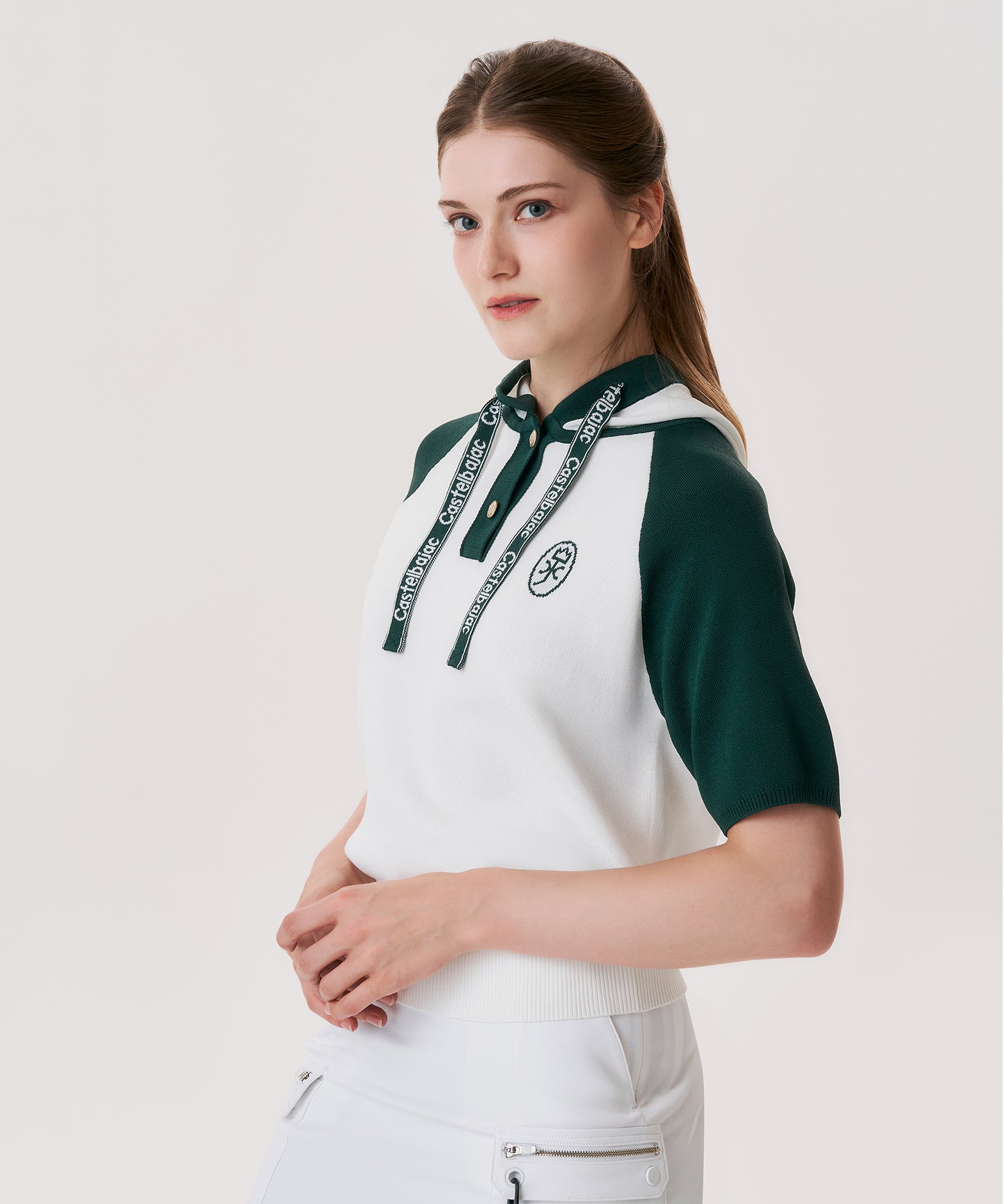 Elevate your casual wardrobe with this refined women's short-sleeve hoodie, featuring the distinctive Logo Point raglan design. Crafted in a warm tone, this piece seamlessly blends comfort with understated elegance. The short-sleeve silhouette offers versatility for layering or wearing solo during mild weather, while the hoodie provides a polished touch to everyday styling. Perfect for those who appreciate quality basics with character, this hoodie transitions effortlessly from relaxed weekends to casual outings.