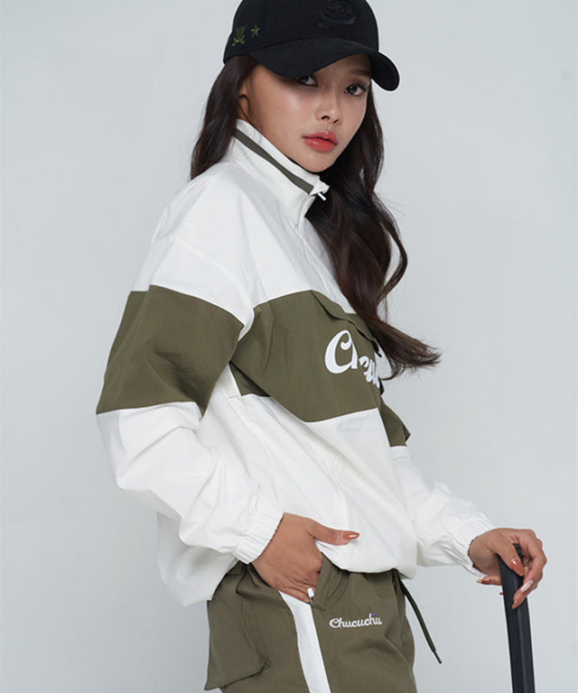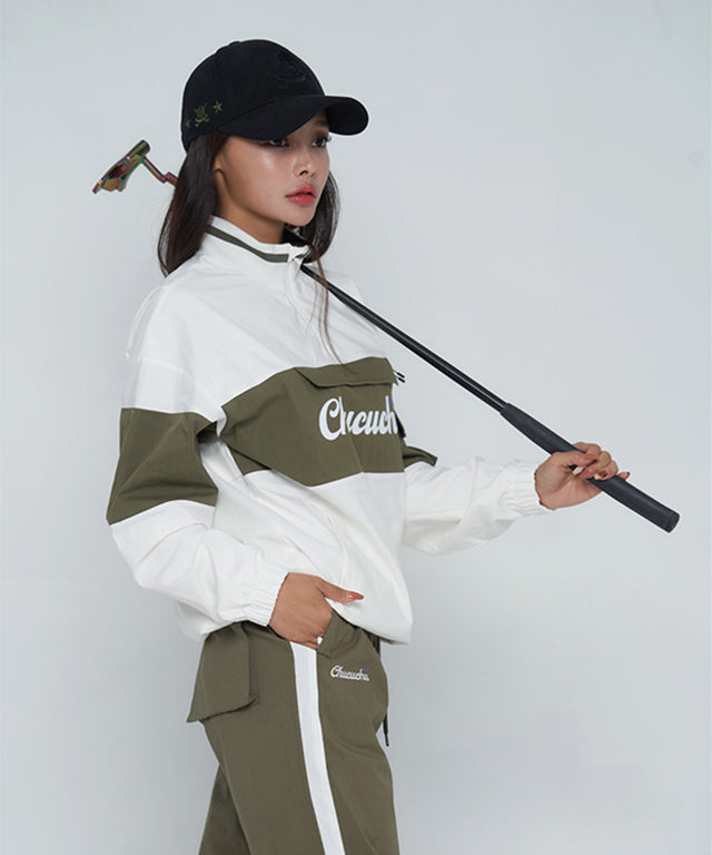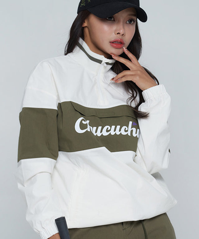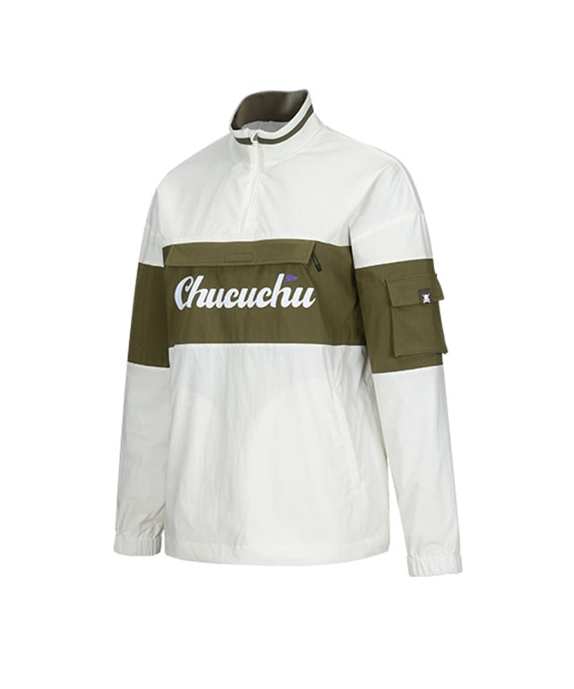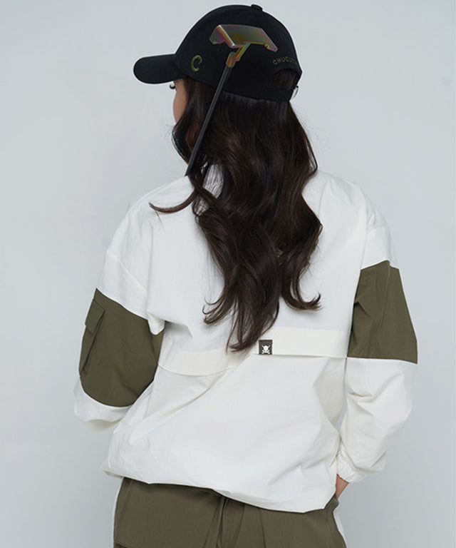 CHUCUCHU Color Point Anorak Jumper - Khaki/White