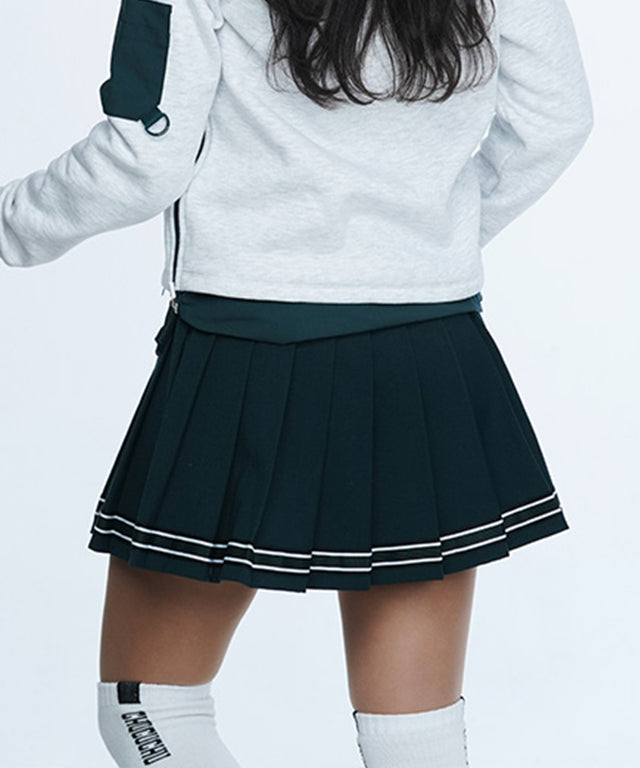 CHUCUCHU Half Pleated Skirt - Dark Green