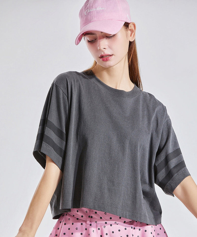 CHUCUCHU Line Overfit Short Sleeve Top - Charcoal