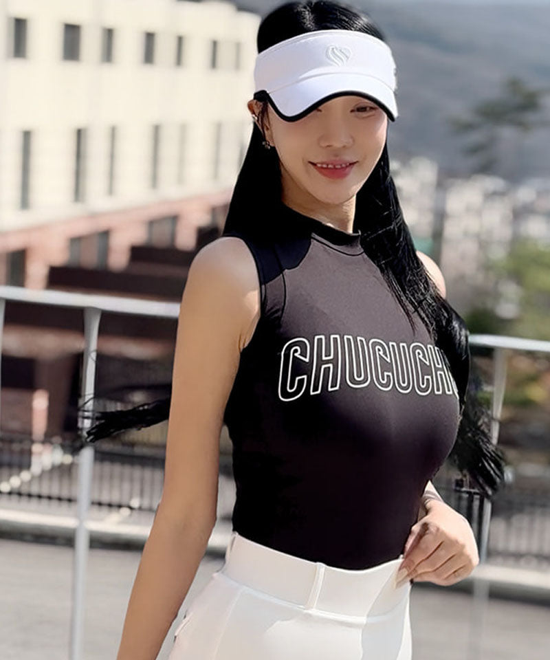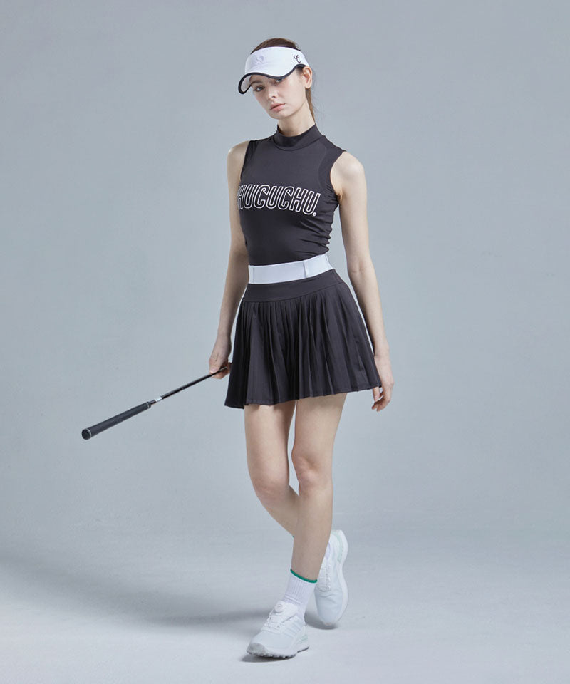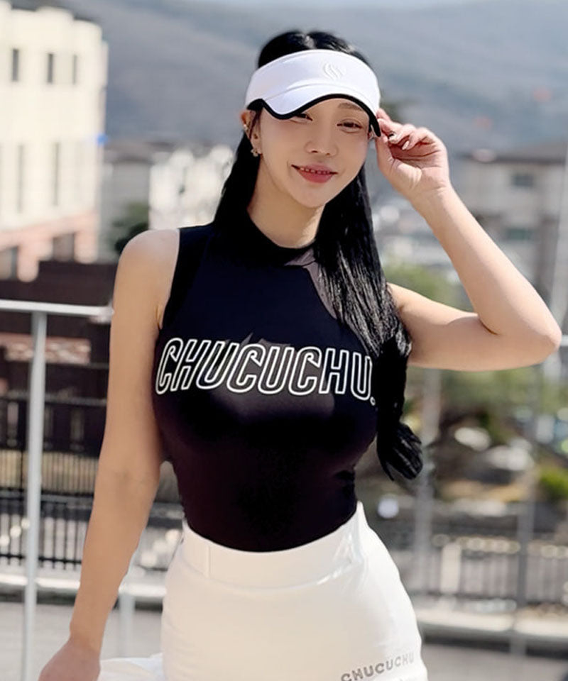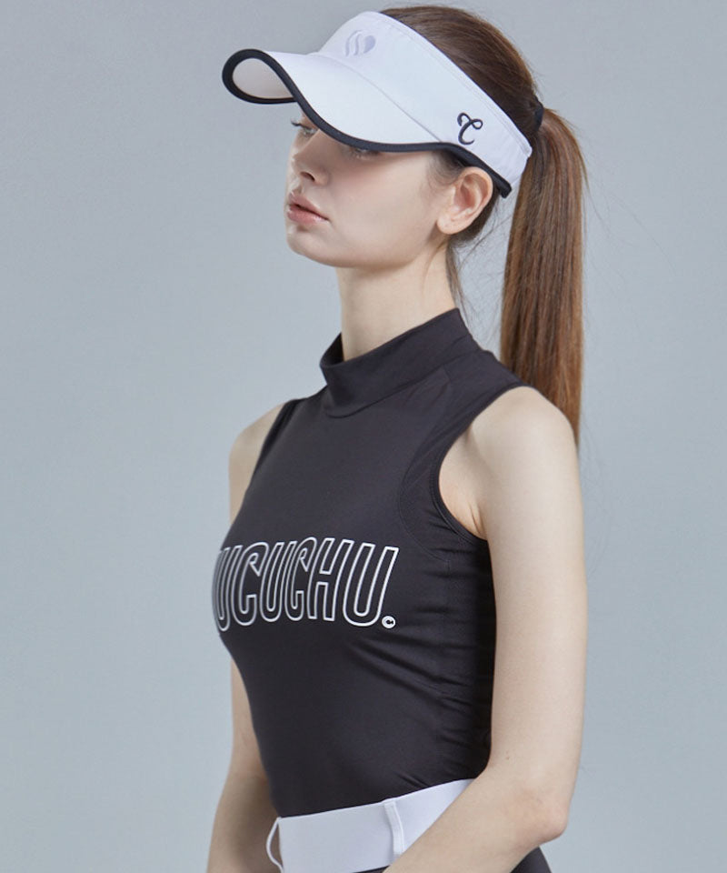 Logo Mock Neck Mesh Sleeveless Top - Black