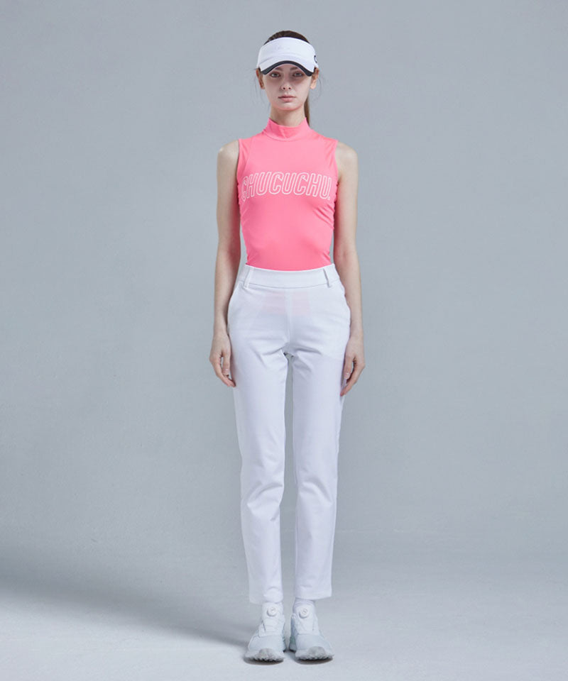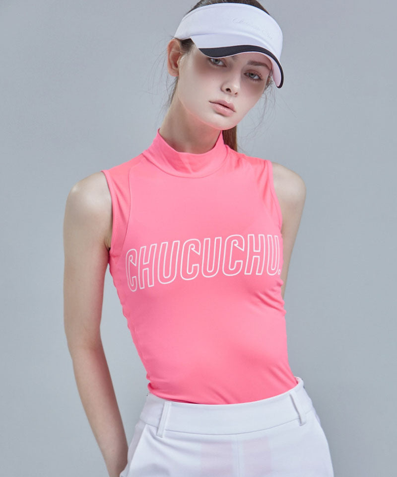 Logo Mock Neck Mesh Sleeveless Top - Hot Pink
