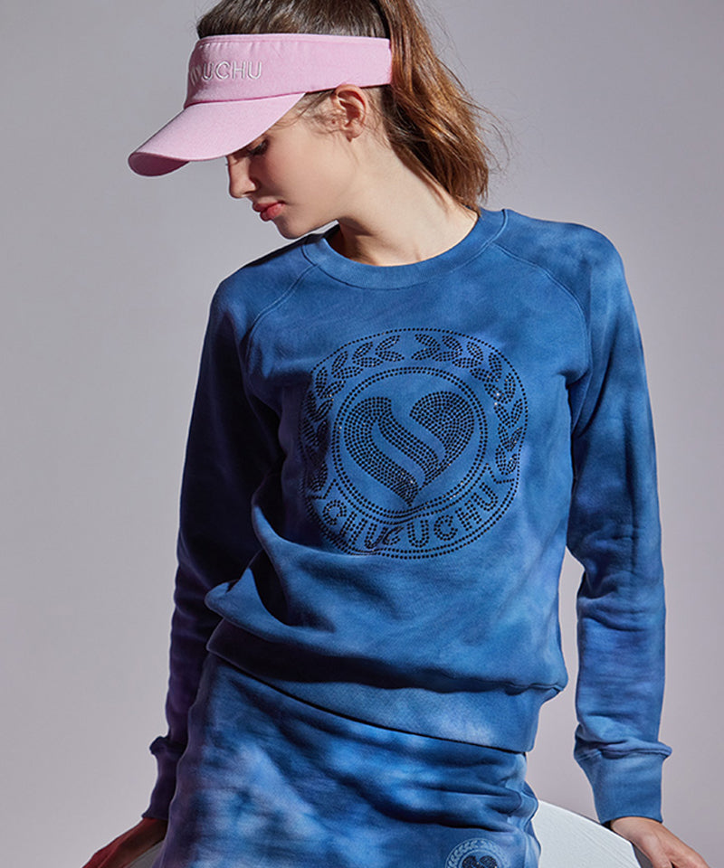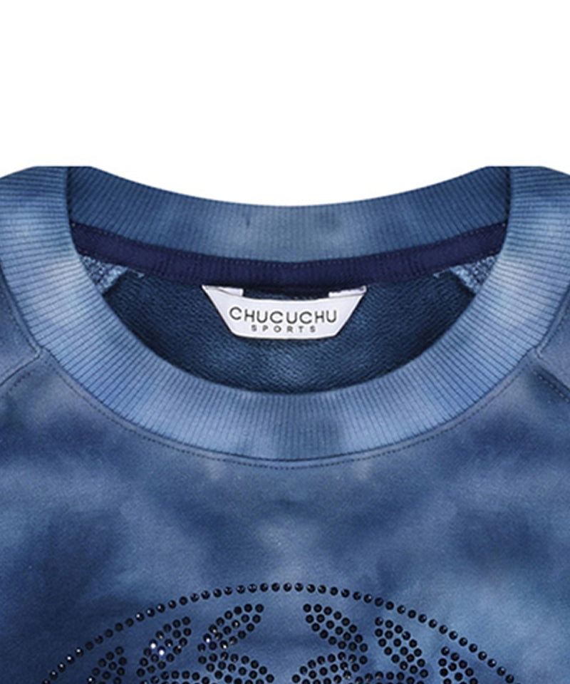 Crew neck with tone-on-tone printed pattern and tone-on-tone hotfix logo decoration point (worked solidly to prevent the hotfix from falling off and maintained for a long time). The raglan design allows free movement and a comfortable fit when swinging. Shibori hem prevent sagging. It can be worn as a set with a skirt of the same material