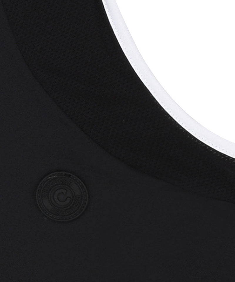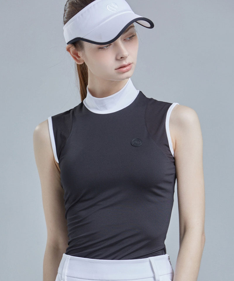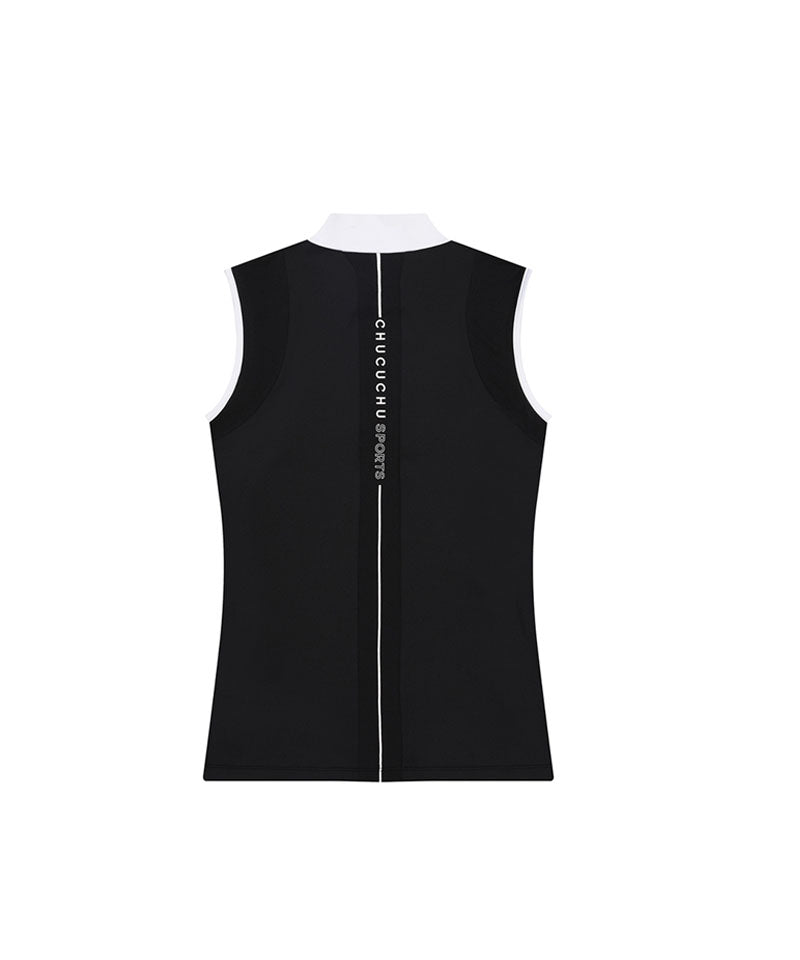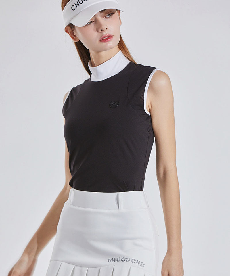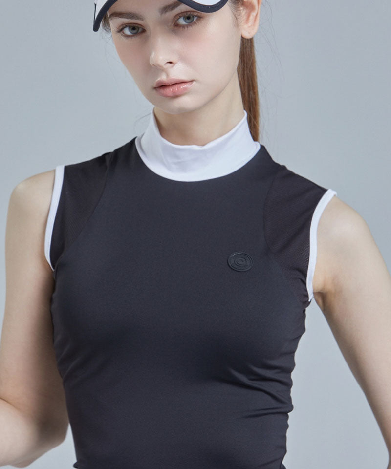 Mono Mock Neck Mesh Sleeveless Top - Black