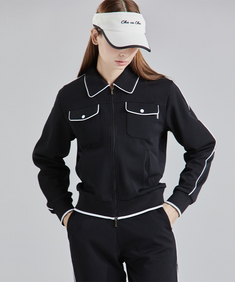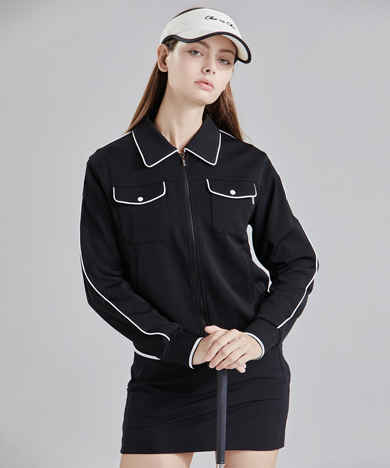 Elevate your outerwear with the CHUCUCHU Piping Two-Way Zip-Up Jacket in Black. Designed for versatility and style, this jacket features a sleek two-way zipper for customizable wear and refined piping details that add subtle sophistication. Crafted to complement both casual and polished looks, it seamlessly blends comfort with modern design. Perfect for layering, it offers effortless transition between seasons while maintaining a sharp, tailored appearance.