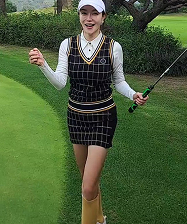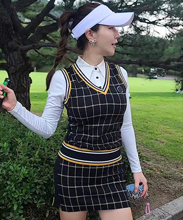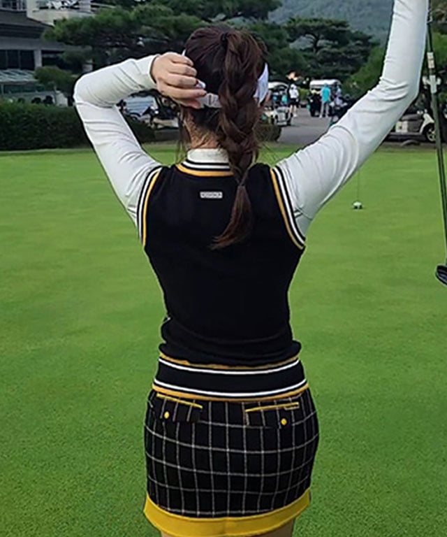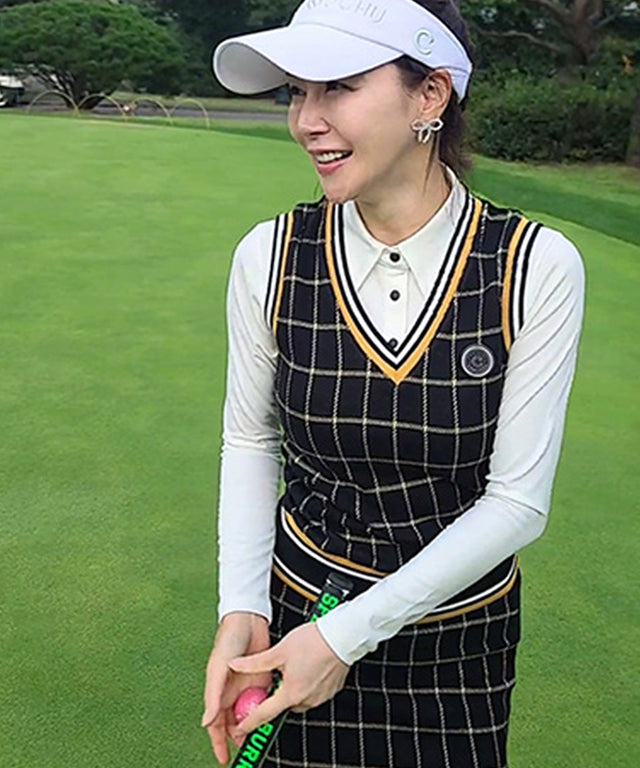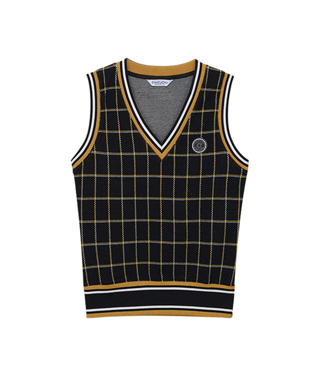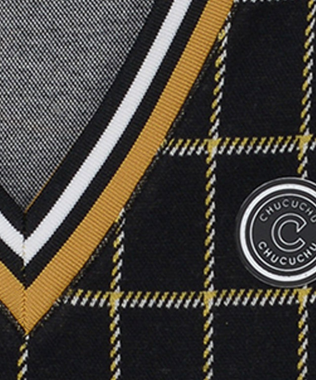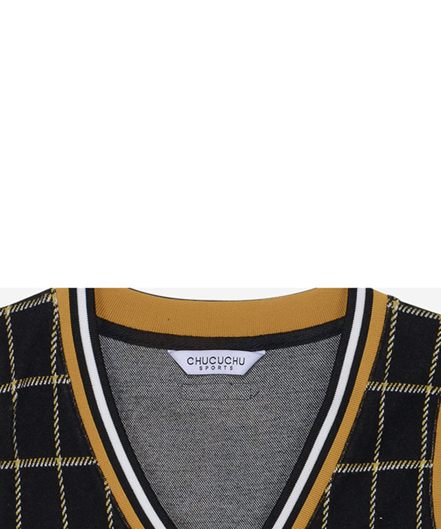 CHUCUCHU Pole Check V-Neck Vest - Mustard