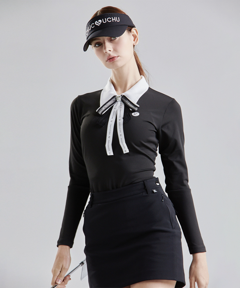 The CHUCUCHU Ribbon Zip-Up Collar T-Shirt blends refined design with modern ease. Featuring a sleek zip-up collar, it allows for adjustable style and comfort, while the delicate ribbon detail adds a subtle touch of elegance. Crafted for those who appreciate understated sophistication, this t-shirt offers a versatile piece perfect for layering or wearing solo with a polished look.