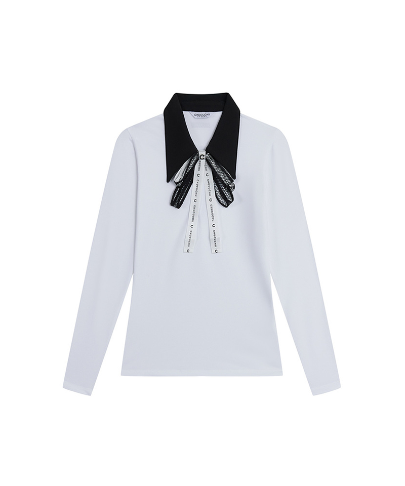 Ribbon Zip-Up Collar T-Shirt - 2 Colors