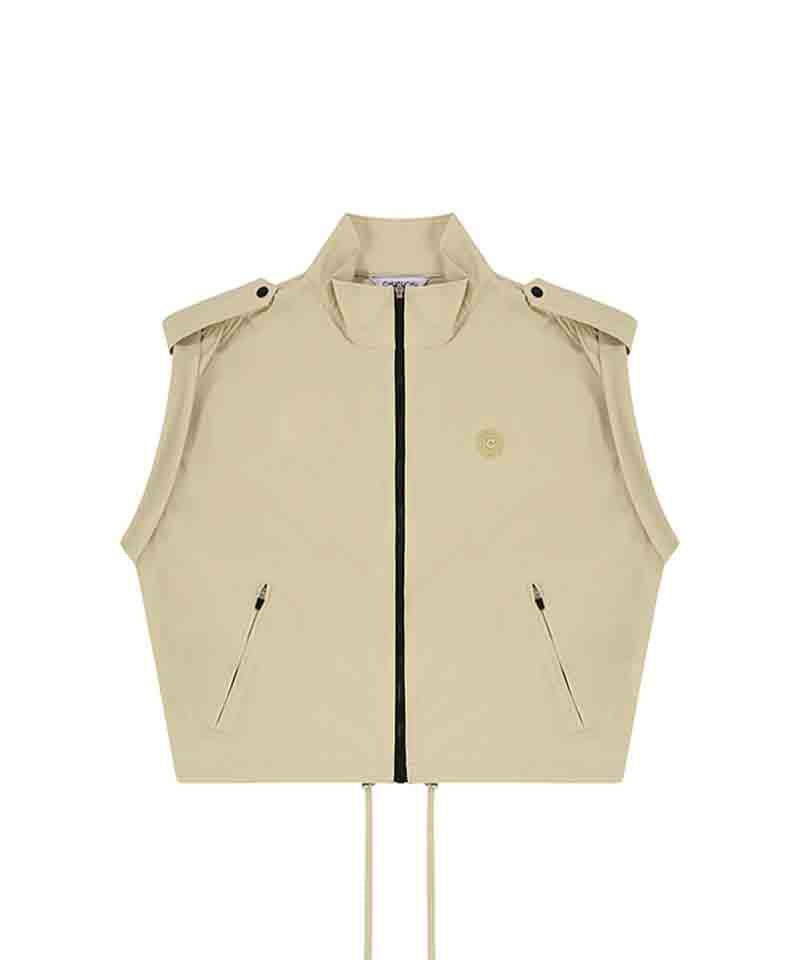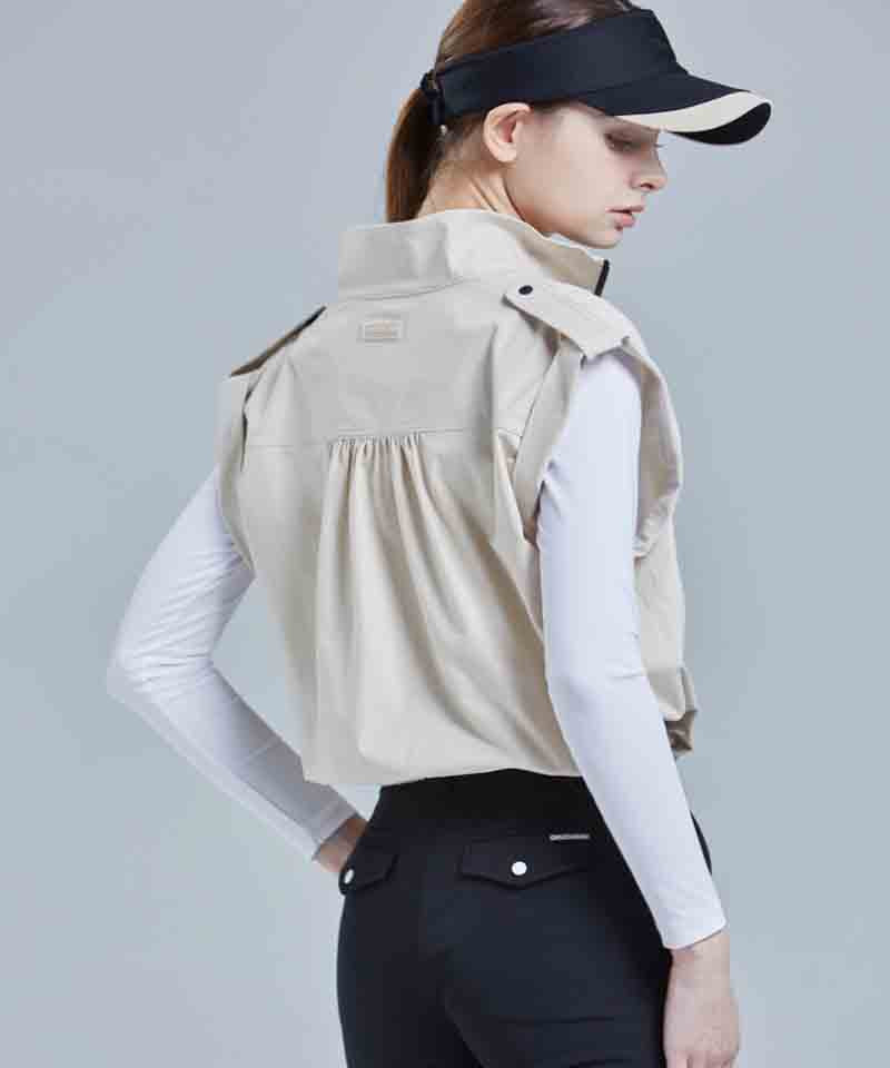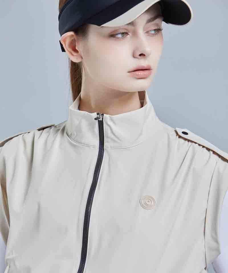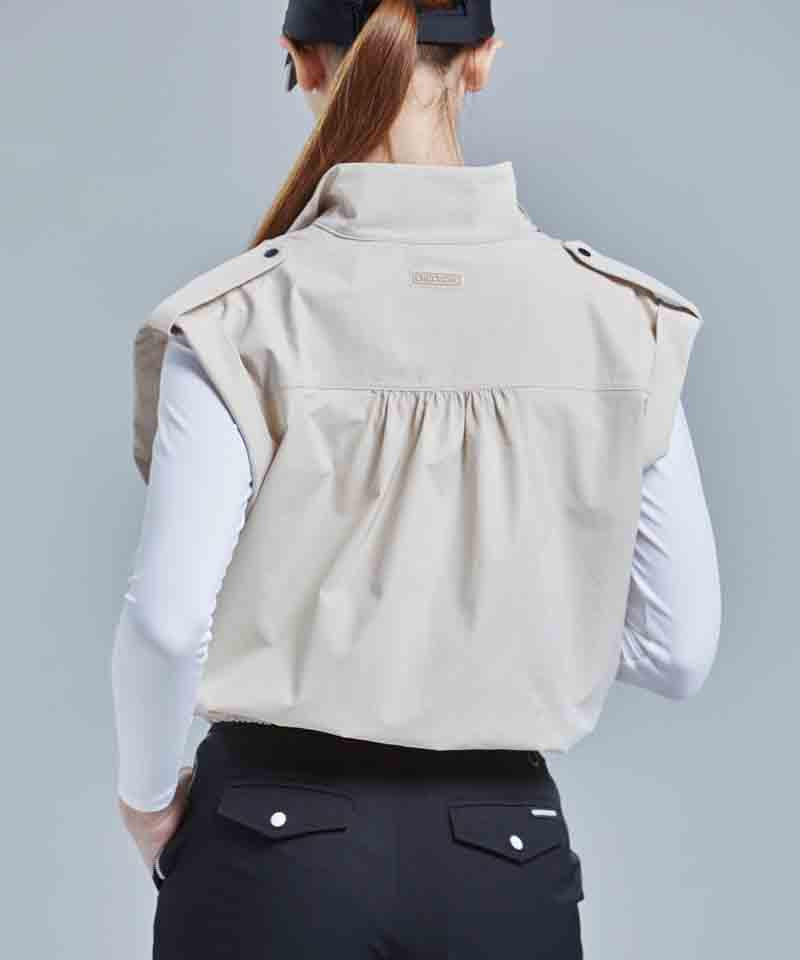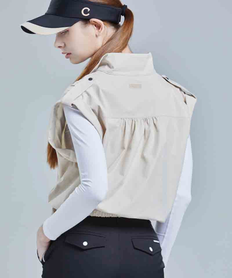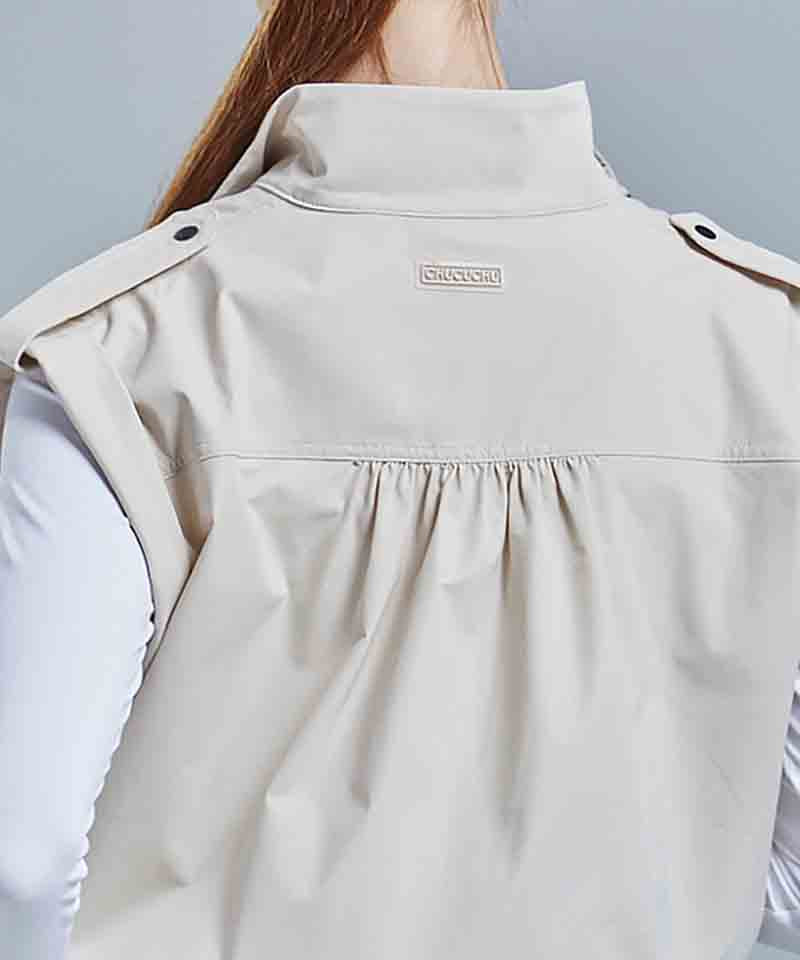 CHUCUCHU Shirring Zip-up Vest Jumper - Beige