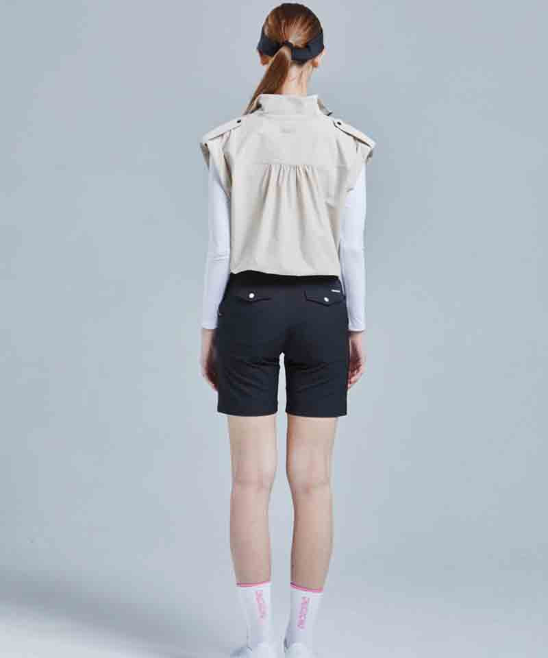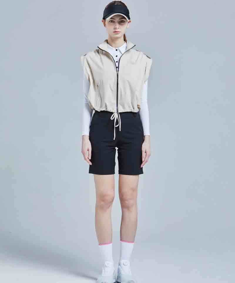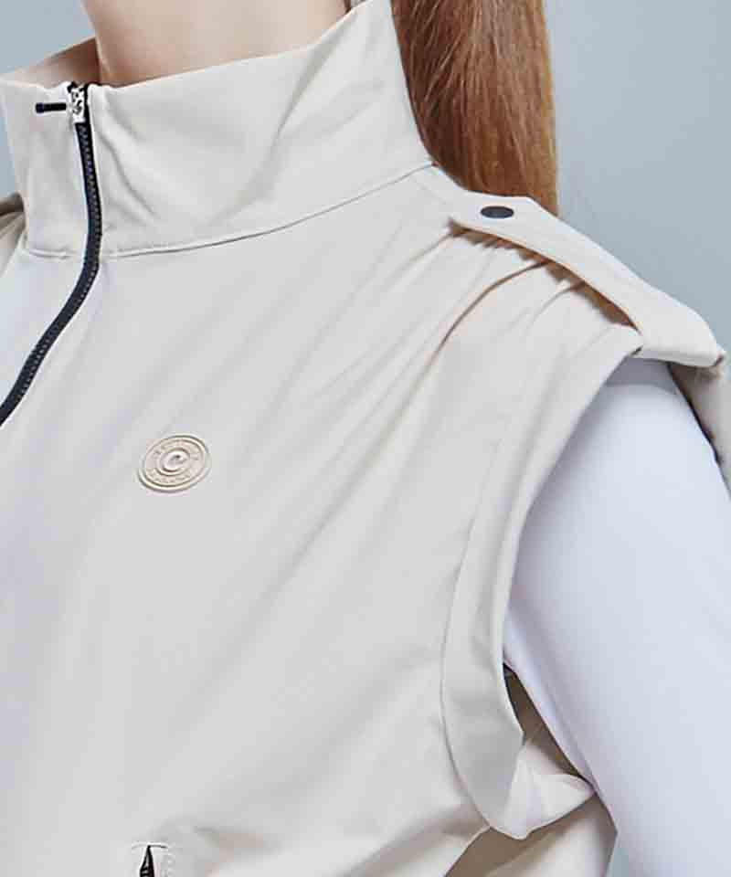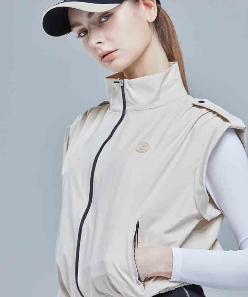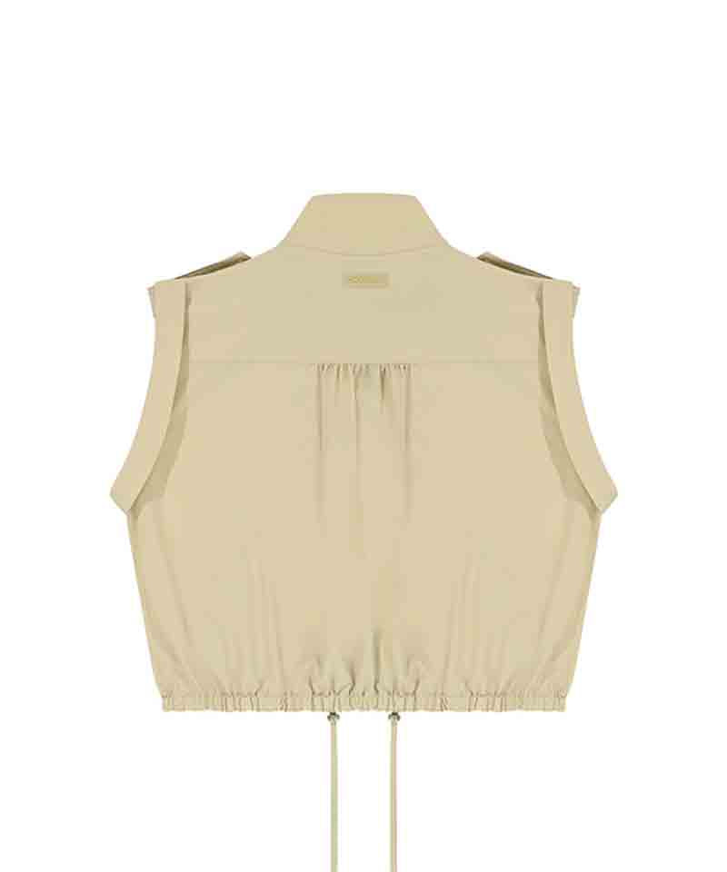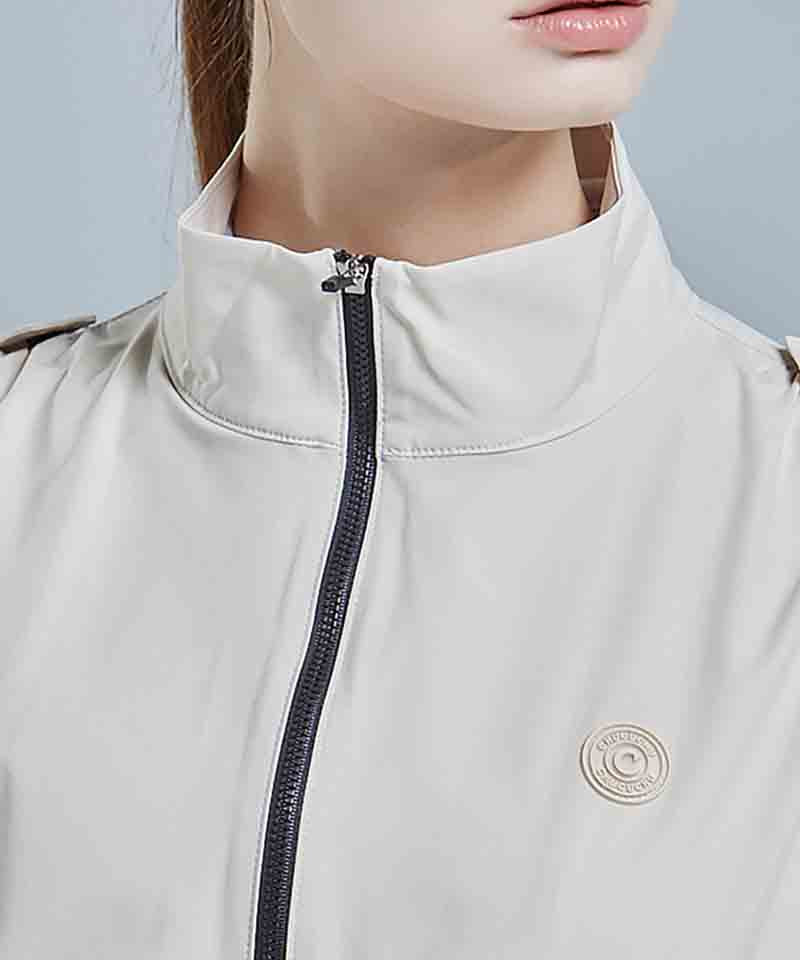 CHUCUCHU Shirring Zip-up Vest Jumper - Beige
