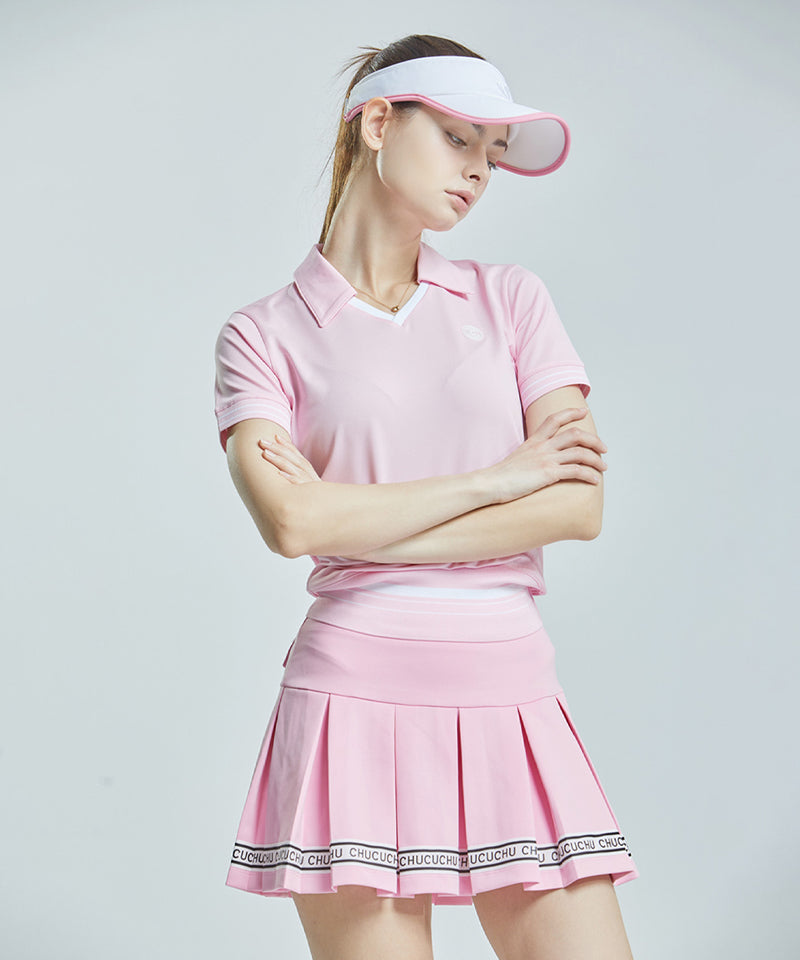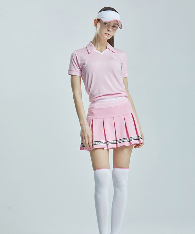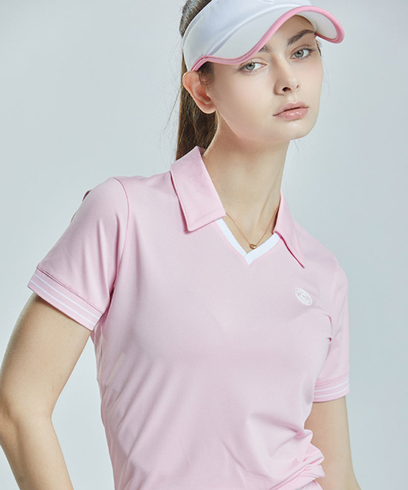 CHUCUCHU V-neck Short Sleeve Top - Light Pink