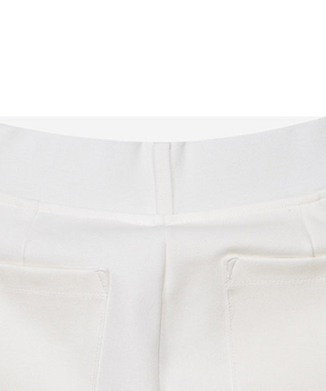 Straight fit pants Comfortable fit thanks to excellent elasticity and waist banding style. Convenient as only the front zipper cover is detailed and the zipper is omitted. The leg line stands out with the color contrast on the side. O-ring decoration with pocket on the back for storage.