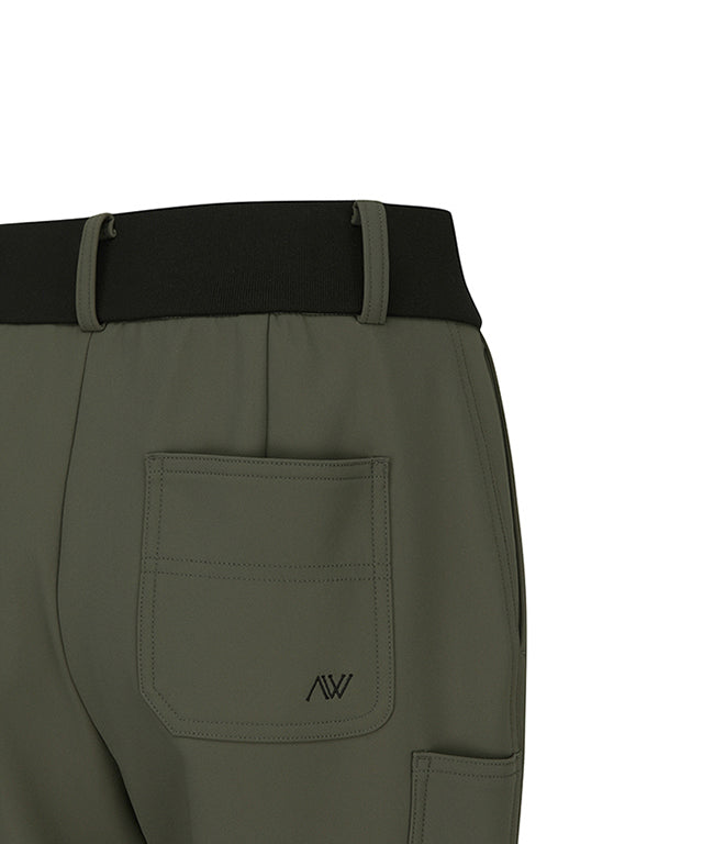 Insert a band from the starting point of the belt loop at the waist to wear not only a basic t-shirt but also a knit. It can be worn comfortably. We designed it to look a little slimmer by adding a mini pocket on the thigh and a stitch line along the end. When wearing, there is a mini pocket on the back thigh on the right side, making it easy to store simple items such as tees.