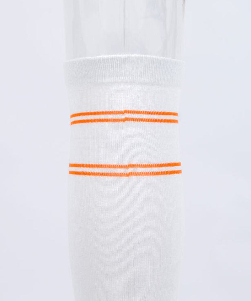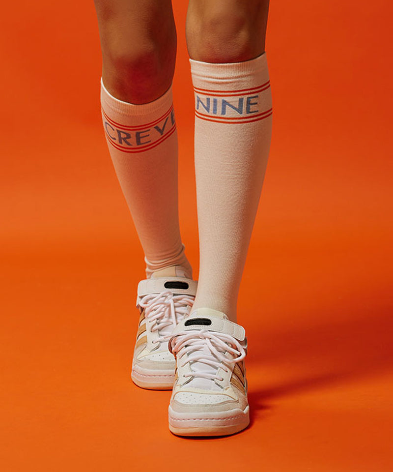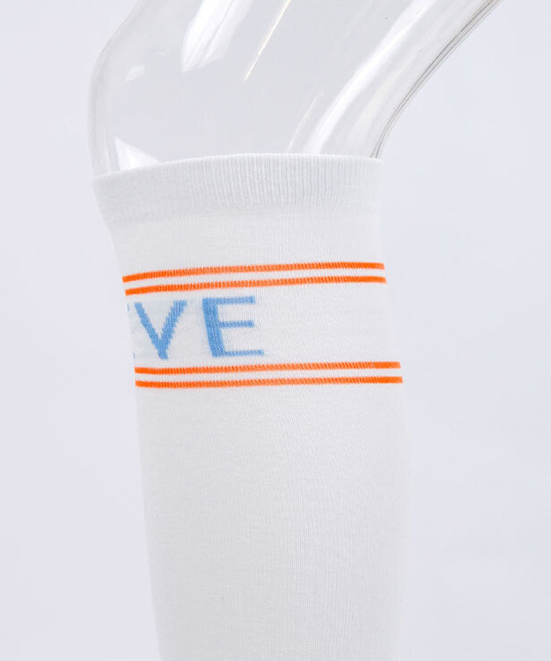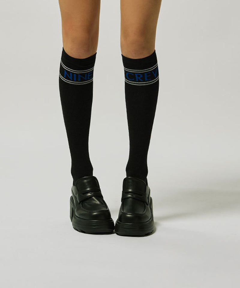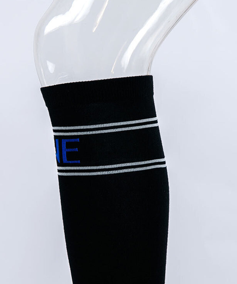 Knee socks with double stripes and a big logo as highlights. The entrance rib structure prevents the knee socks from slipping off. An item that is easy to wear in all seasons due to its appropriate thickness. An item with a casual design that is recommended for everyday use.