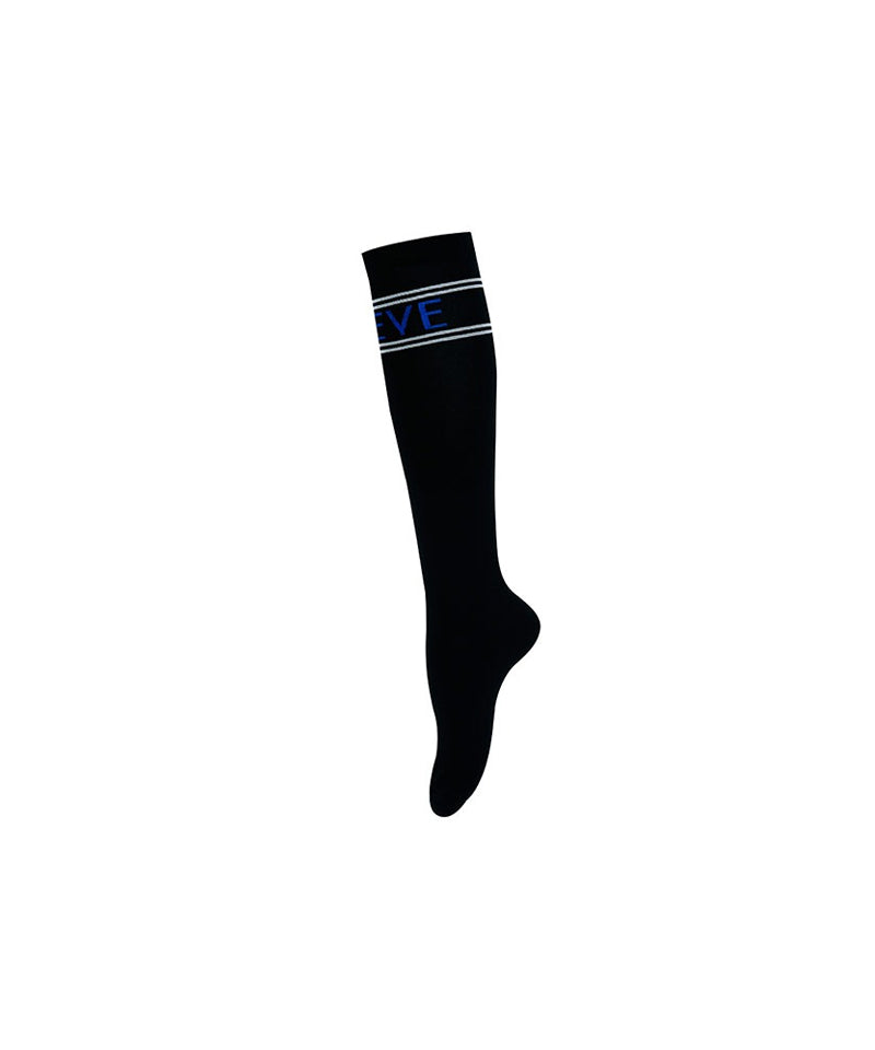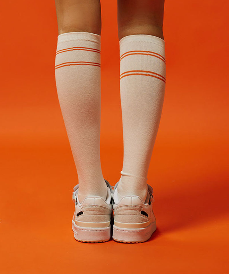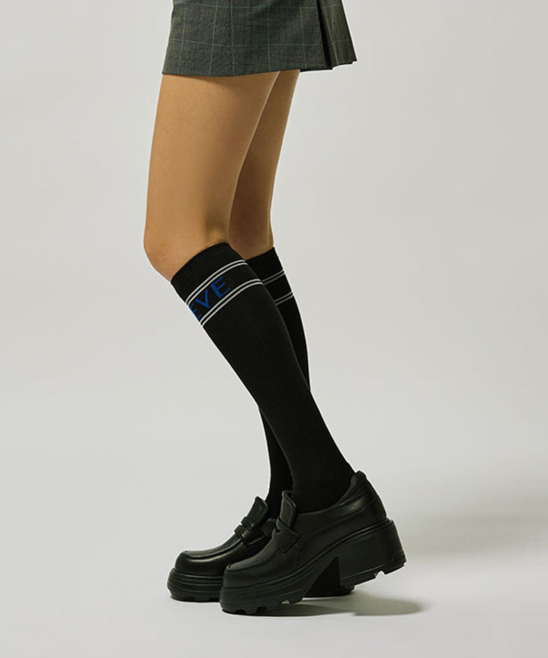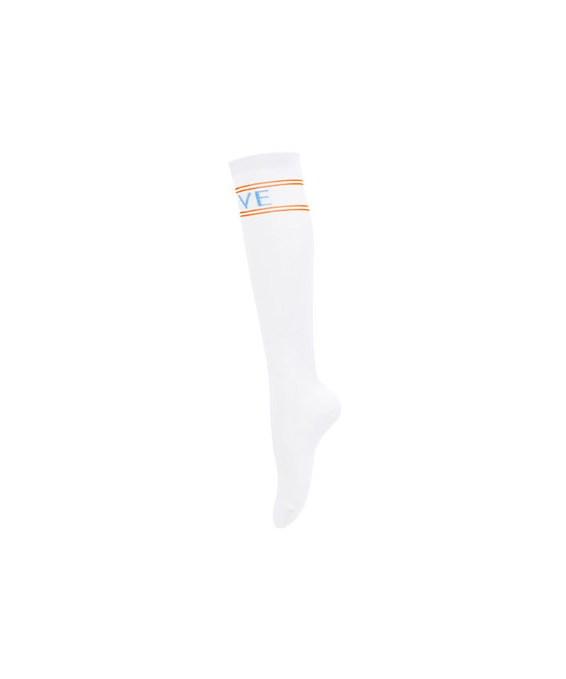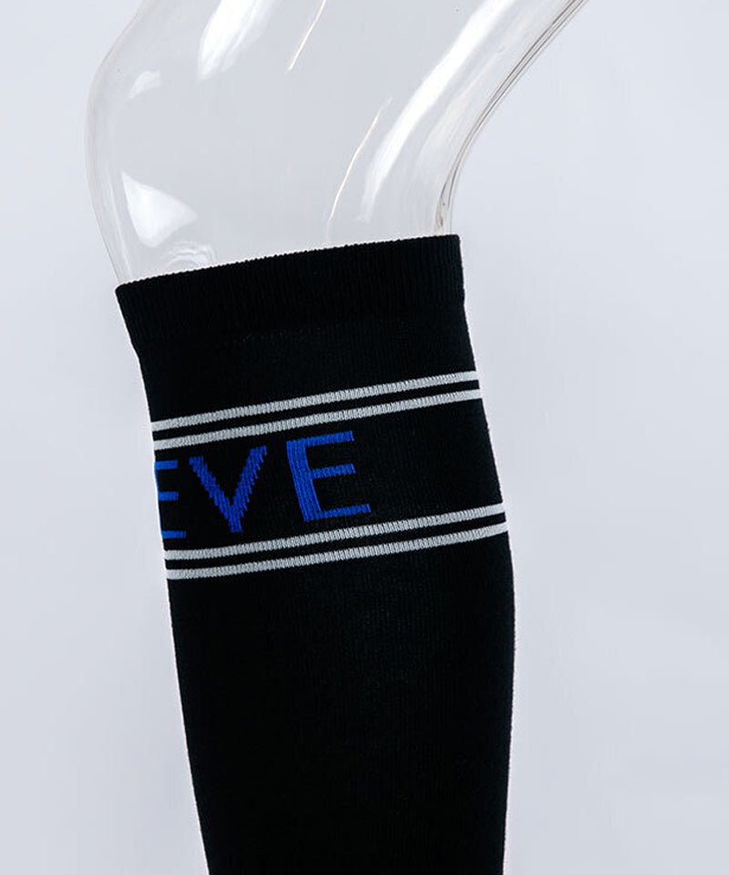 Knee socks with double stripes and a big logo as highlights. The entrance rib structure prevents the knee socks from slipping off. An item that is easy to wear in all seasons due to its appropriate thickness. An item with a casual design that is recommended for everyday use.