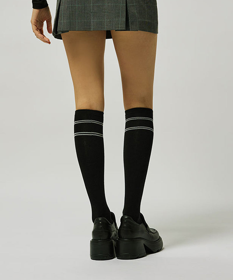 CREVE NINE: Double Stripe Knee Socks - 2 Colors